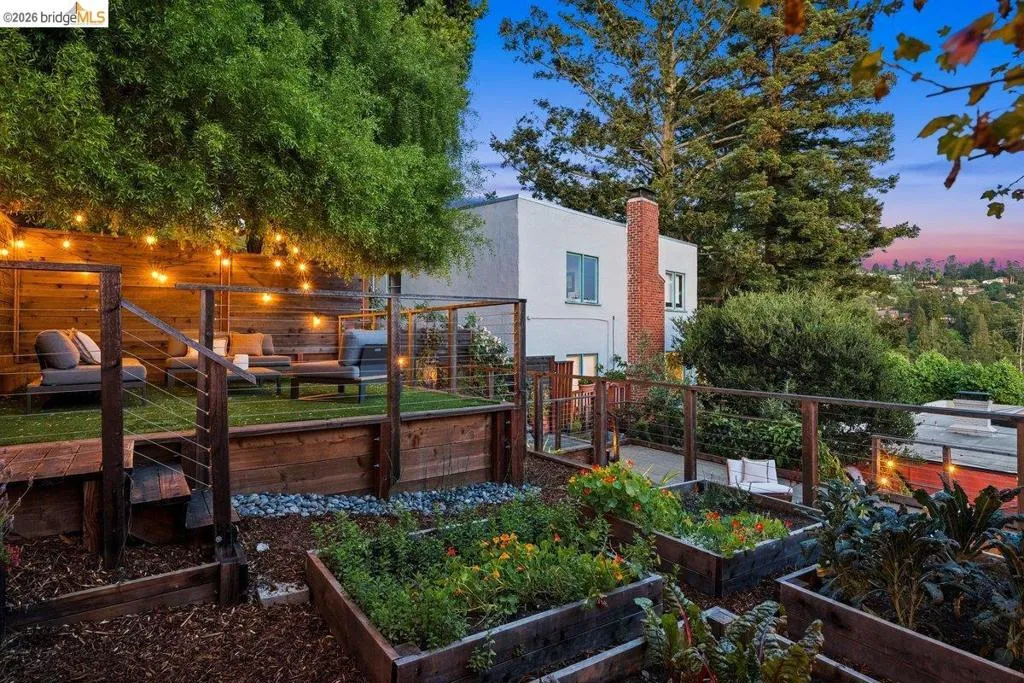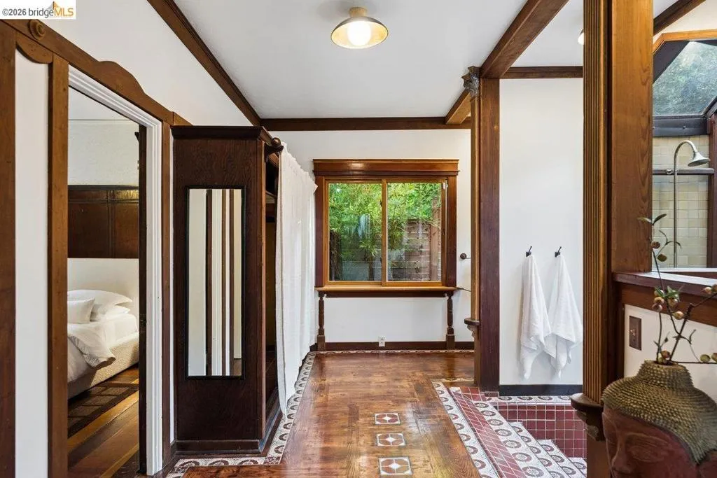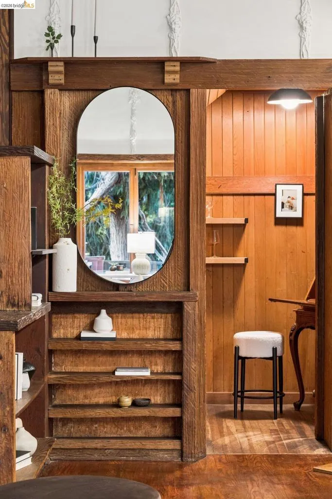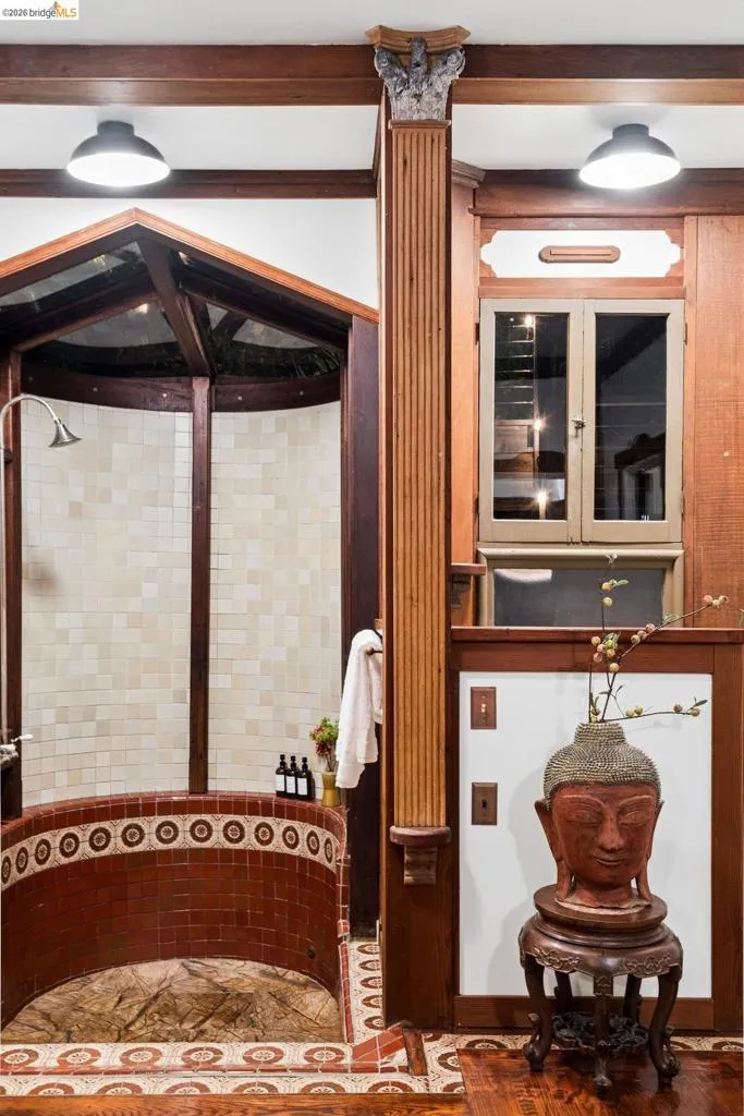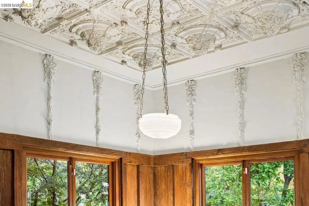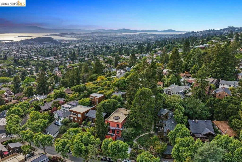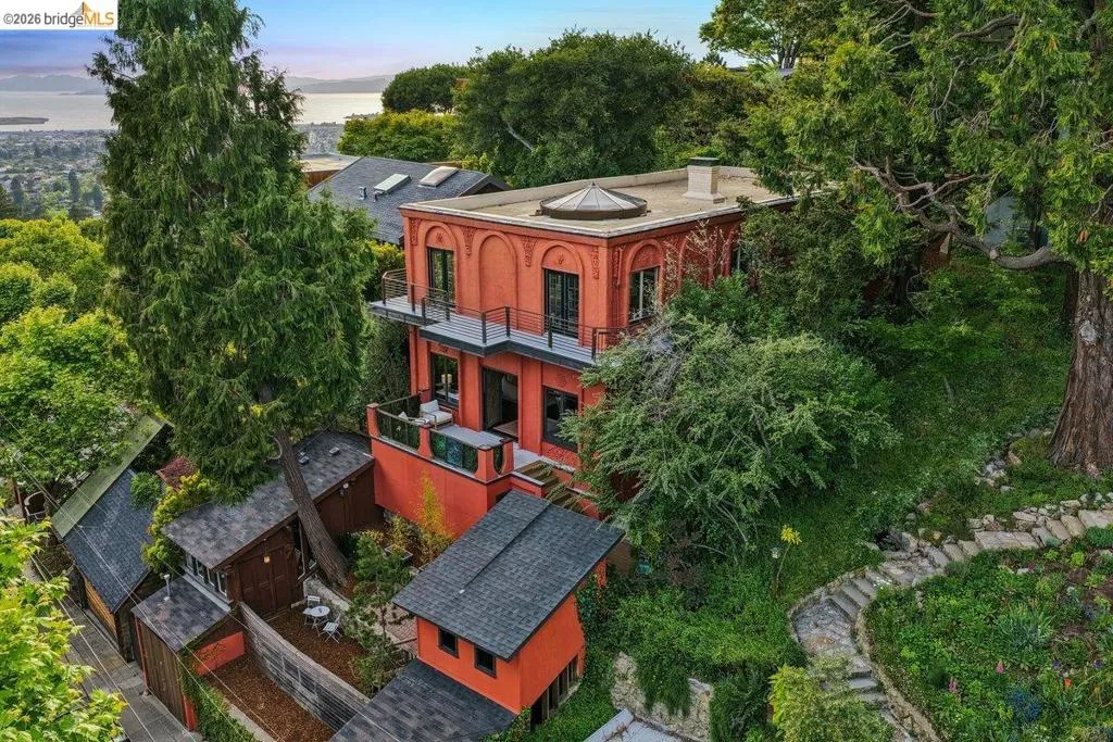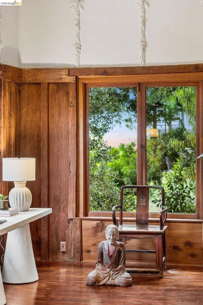 Some homes are built. Others are composed. In the early 1920s, artist-architect Paul Beygrau and his wife, Marie Rosalie Schaff, a gifted woodcarver from Alsace, arrived in Berkeley after distinguished work abroad. Trained in both fine arts and architecture, Beygrau had designed interiors for royal commissions in England and public buildings in Winnipeg. Together, they turned to a deeply personal project in the Berkeley hills, creating neighboring homes that would express their shared artistic vision. At 1049 and 1051 Keith Avenue, they produced what many regard as their collaborative masterwork - a rare expression of European artistry translated into California architecture. Featured on the front page of the San Francisco Chronicle in 1928, the home was described as “the most remarkable expression of domestic art and architecture in the Bay Region.” At 1049 Keith, artistry is present in nearly every surface. Massive hand-carved doors, reportedly shaped by Marie herself, open to interiors rich in material and craft. Inlaid hardwood floors run throughout, while the living and dining rooms unfold with grand scale, clad in solid redwood wainscoting. Overhead, decorative ceilings reflect European fresco traditions, reimagined in sculptural plaster and painted finishes. The main level is anchored by these dramatic spaces, along with a period-inspired kitchen and marble-appointed bath. Upstairs, the primary suite feels expansive - defined by a columned atrium ceiling and French doors opening to a sweeping view deck. Two additional bedrooms offer distinct character: one wrapped in warm wood for a more intimate feel, the other a larger, double-sized room with fireplace, garden access, and an ornate ceiling. Outside, the grounds cascade in a series of terraces - an upper level for dining and gathering, a middle expanse for recreation, and lower gardens with raised beds for planting. A detached apartment, tucked privately on the property, includes a lofted sleeping area and its own terrace, ideal for guests or creative use. At once architectural artifact and living home, 1049 Keith Avenue offers something rare: a place where history, artistry, and daily life meet in enduring form