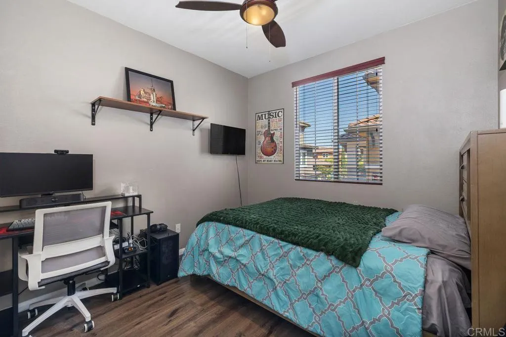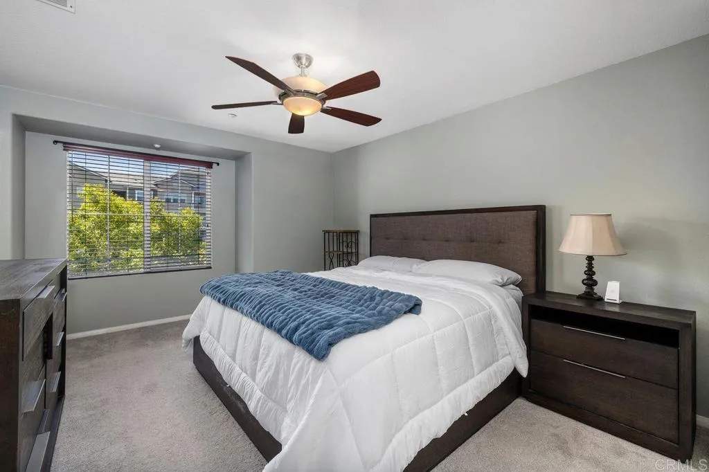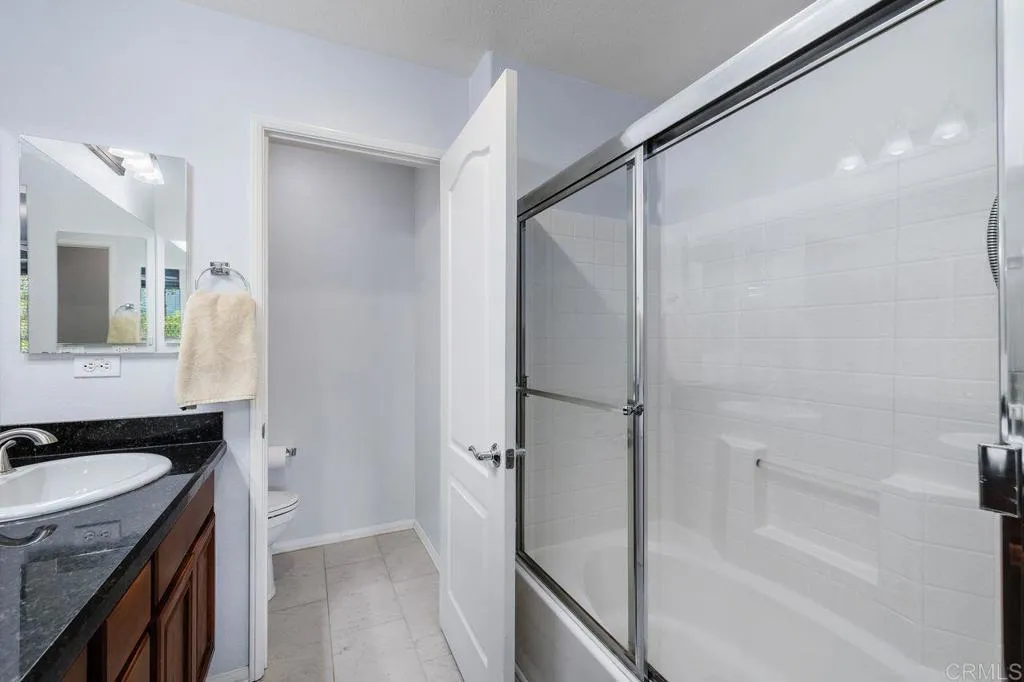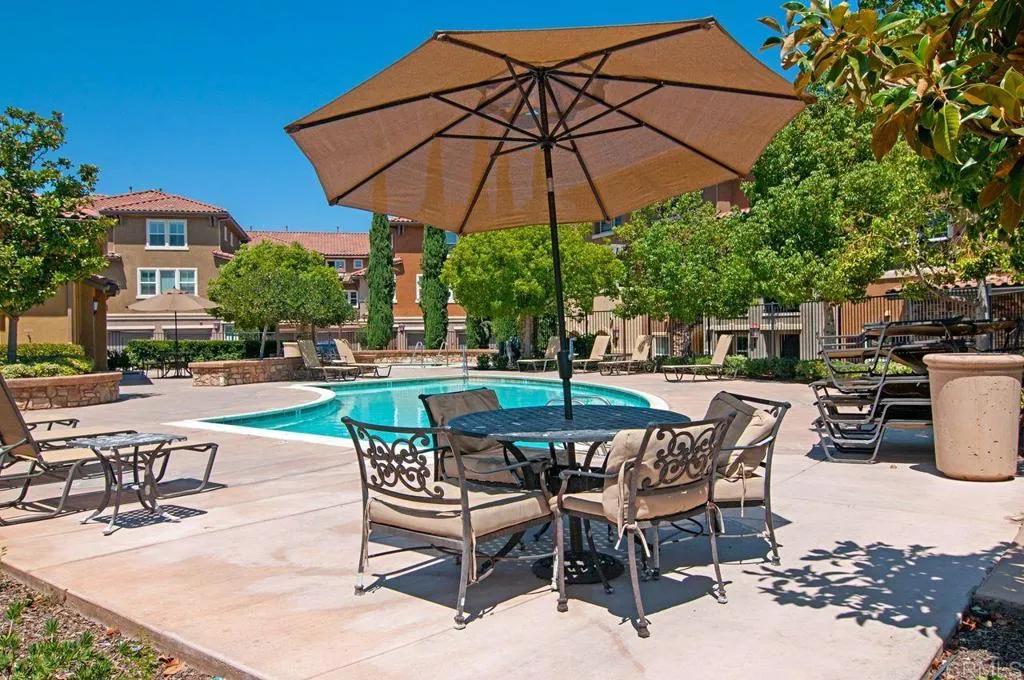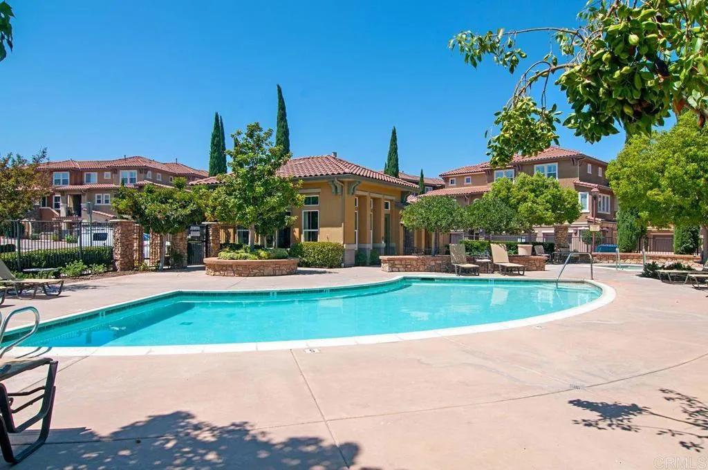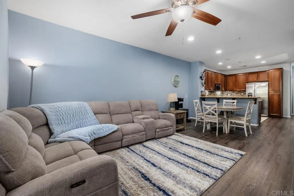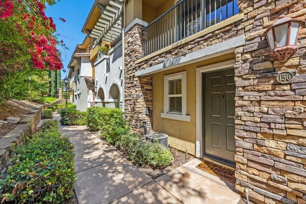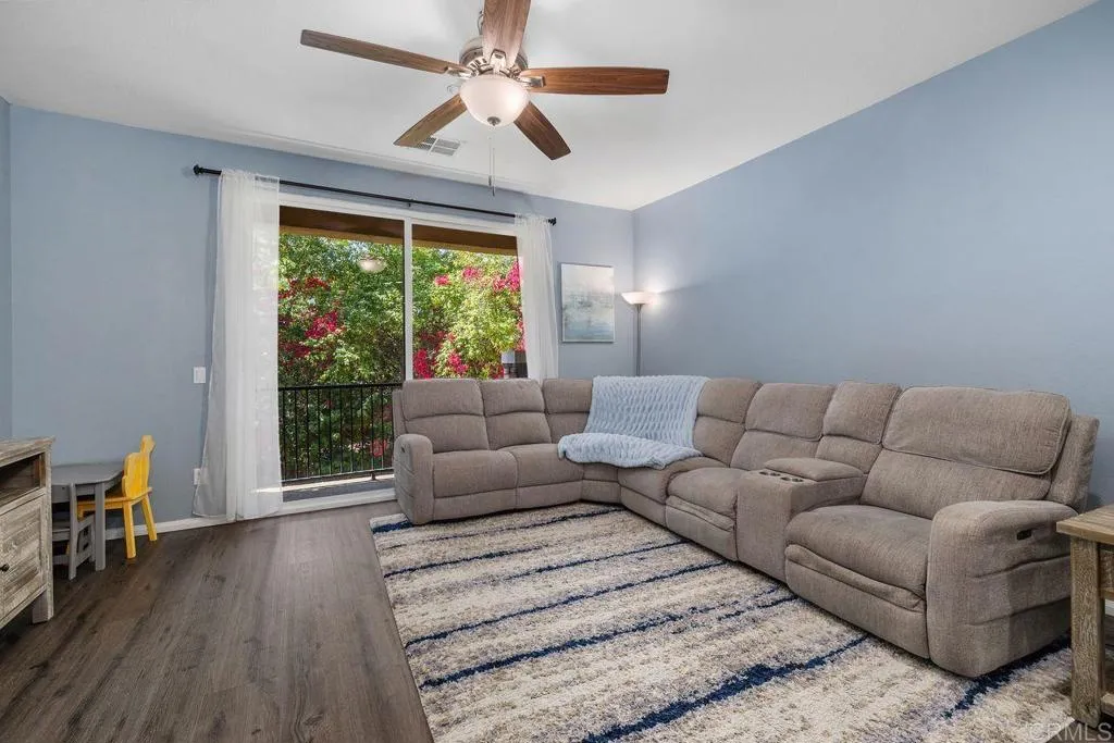 Beautiful townhome located in the highly sought-after community of Treviso in west Santee. This stunning 3-bedroom, 3-bath residence offers 1,342 sq ft of well-designed living space with a highly desirable layout, including a full bedroom and bathroom on the main level—perfect for guests or multi-generational living. The kitchen features granite countertops, a new 5-burner cooktop, generous cabinetry, and a modern backsplash, opening to the living area with direct access to a private balcony—ideal for relaxing or entertaining. Each bedroom offers its own bathroom, providing comfort and privacy throughout. Additional highlights include a full-size laundry room, ceiling fans, a spacious primary suite with dual closets, and an en-suite bath with dual sinks. The attached 2-car garage adds convenience and extra storage. Enjoy resort-style amenities including a sparkling pool, clubhouse, and BBQ area. Ideally located near parks, recreation, and Mission Trails Regional Park, with easy freeway access and close proximity to Santee Lakes.