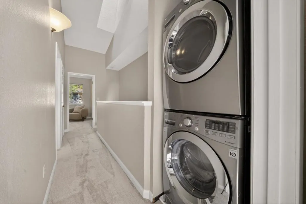 Welcome to this beautiful townhouse-style home in a prime Walnut Creek location. The open floor plan features a gorgeous kitchen with stainless steel appliances, granite countertops, and shaker-style cabinets, flowing into a dining area and living room with a wood-burning fireplace. A spacious half bath completes the main level. Step out to a peaceful private deck overlooking mature trees and lush landscaping. Upstairs, the primary suite offers high ceilings and generous closet space, while a second bedroom with its own en-suite bathroom sits at the opposite end of the hall for added privacy. A full-size front-loading washer and dryer is conveniently located on the bedroom level. Freshly painted interiors and brand new carpets throughout make this home move-in ready. Additional features include central heat and air, recessed lighting, and covered parking. The community offers a clubhouse, pool, and beautifully landscaped grounds, with Walden Park just across the street. Walk to BART, shops, and the Iron Horse Trail; minutes to Highway 680 and downtown Walnut Creek; top-rated schools. And one of the lowest HOA dues in Walnut Creek.