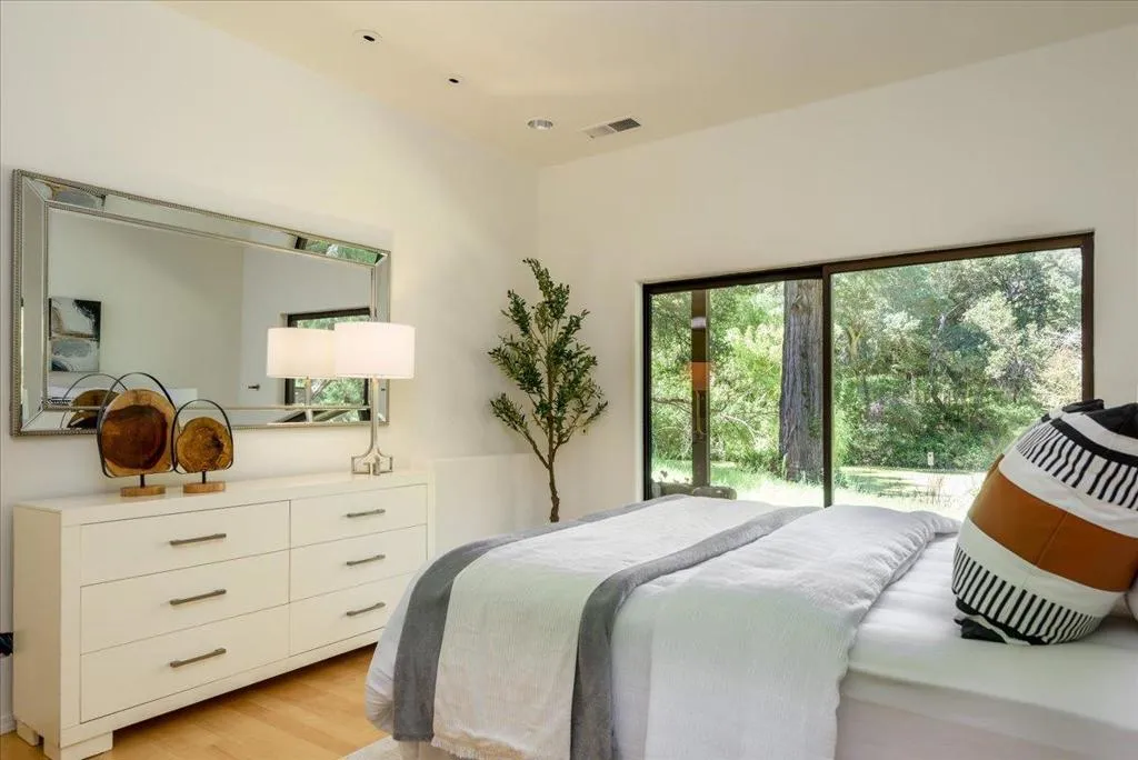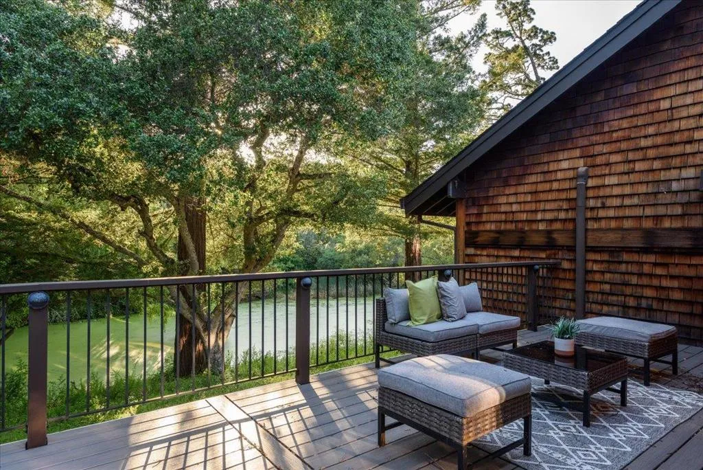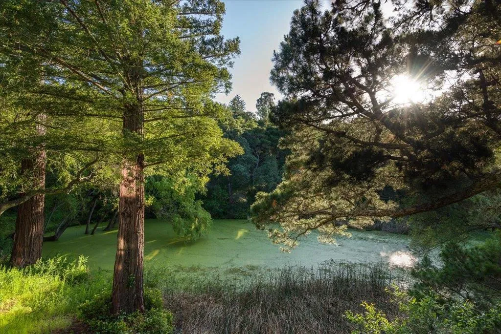 This home personifies tranquility. Nestled in a serene country setting just minutes from I-280 and top-rated Portola Valley schools, this beautifully updated 6-bedroom, 2- Office 3+-bathroom custom designed home perfectly balances rural privacy with modern convenience. The interior boasts an expansive, light-filled atmosphere defined by cathedral ceilings and large windows that frame the surrounding natural beauty. High-end functional upgrades include a spacious center island kitchen with adjacent family area & fireplace. A formal dining room overlooking the pond and into the Redwoods. A spacious living room with soaring ceilings and fireplace. A large primary bedroom with a spacious walk in master bathroom and a nice private deck with a hot tub. 2 artist studios / offices. One was used a pottery studio the other was a photographic studio. Outside, the property serves as a private retreat with direct access to local hiking and biking trails. An additional magical feature is the adjacent pond. This provides a magical setting and helps the home create an oasis of peace and tranquility.