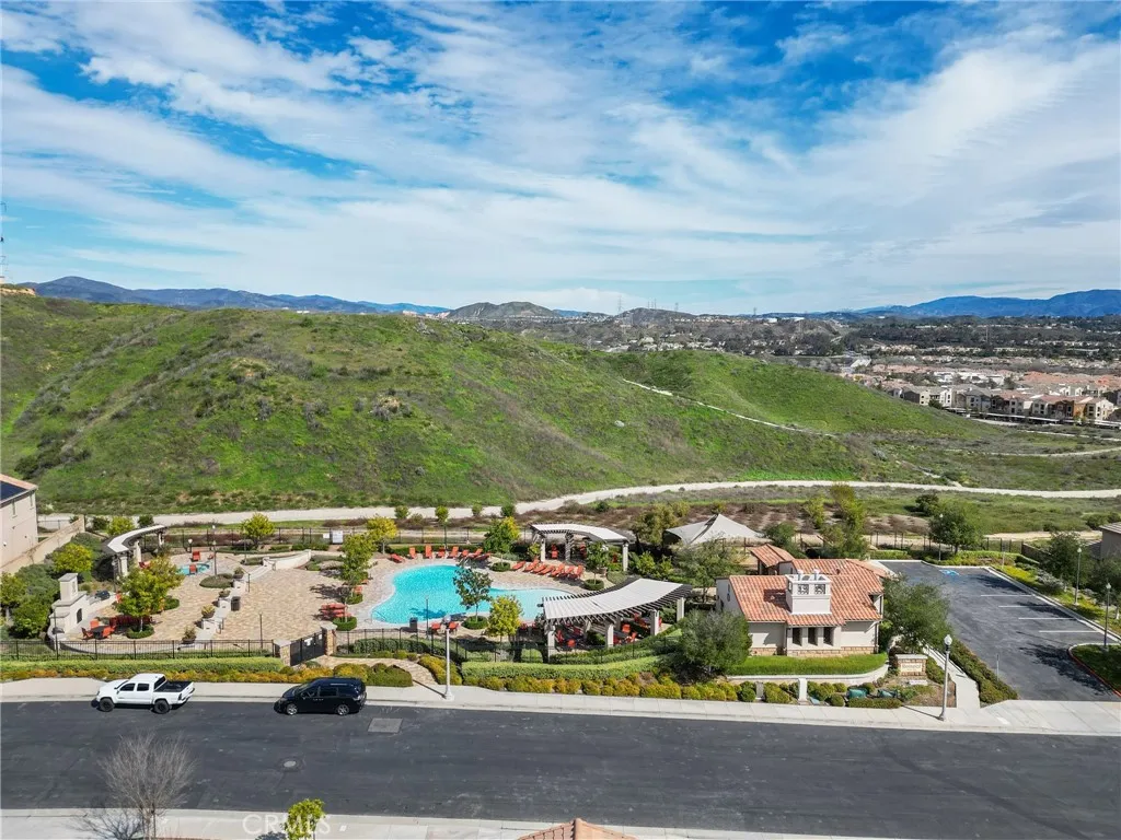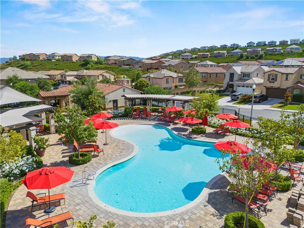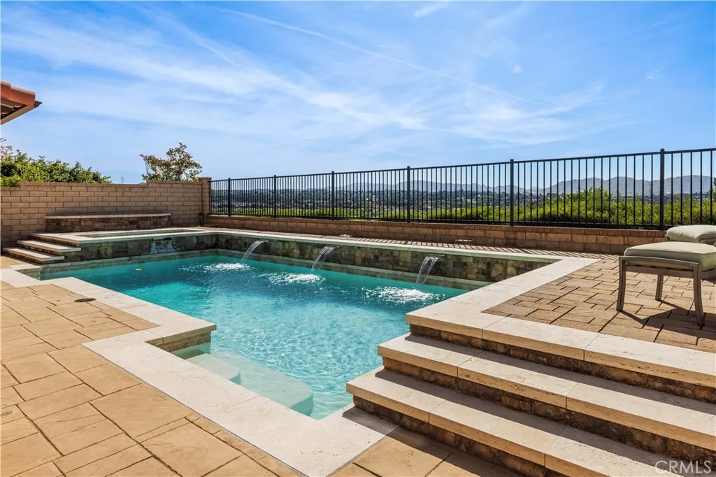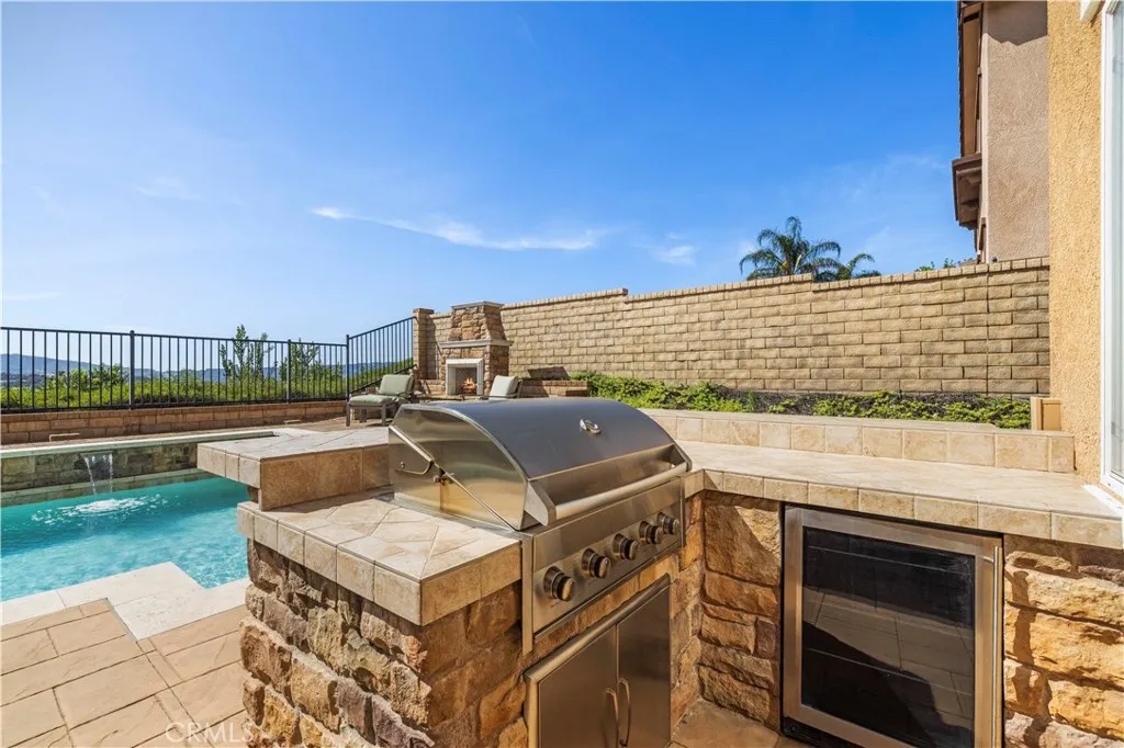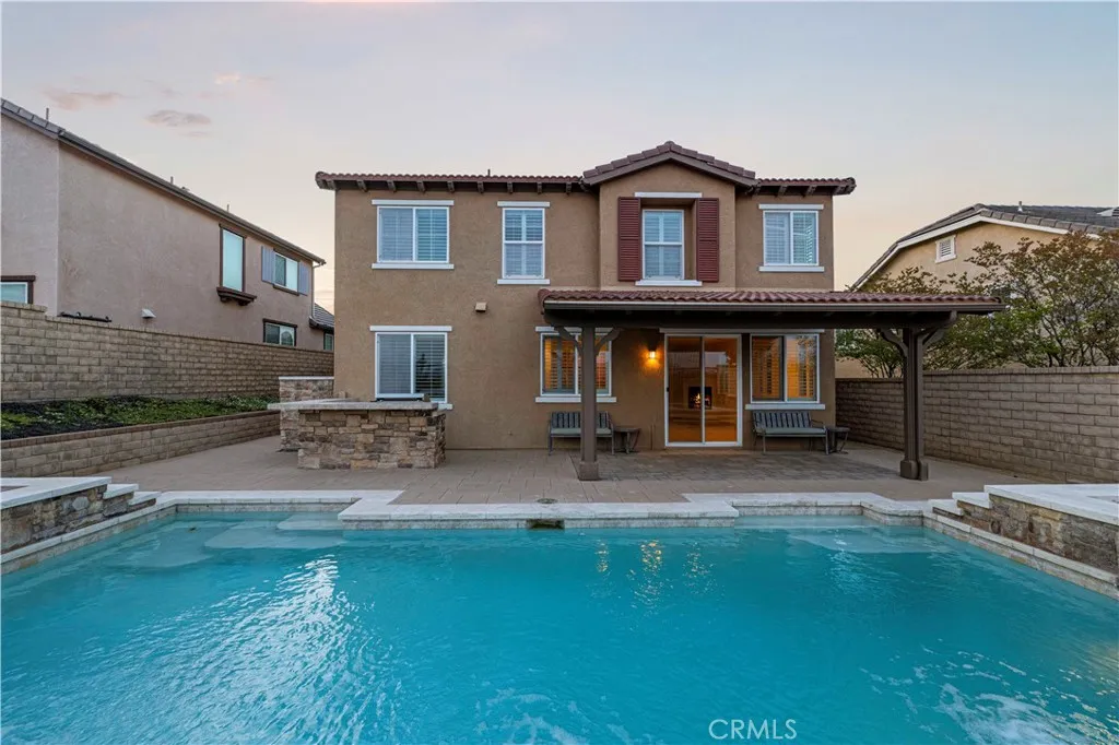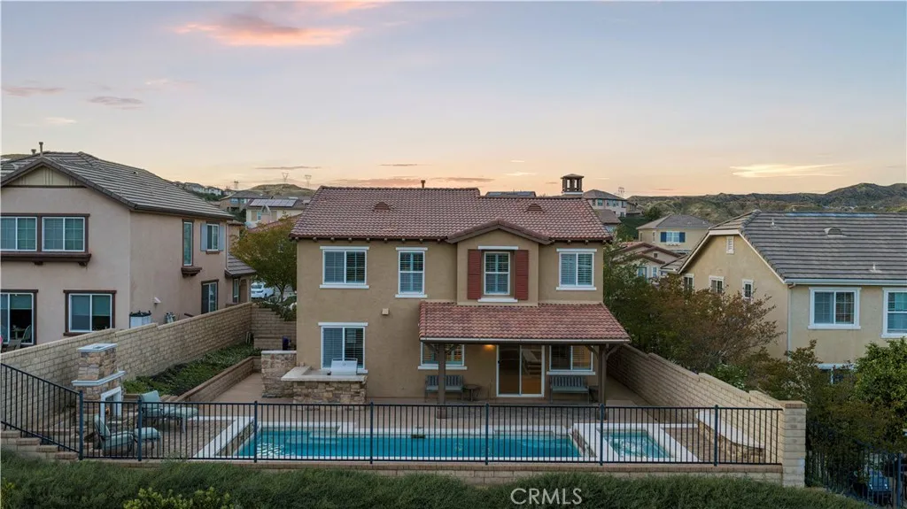 Stunning views and sparkling pool ....perfect for Valencia summers. Experience resort living in this 4-bedroom, 3-bathroom pool home. Nestled within the exclusive West Hills gated community, this home offers rare "no rear neighbor" privacy and sweeping, unobstructed views from the moment you step through the door. A natural lit entry leads to a versatile flex space and an open living area leading to your backyard resort. The cook’s kitchen featuring granite counters, a center island, and stainless appliances including refrigerator—flows effortlessly into the family room and outdoor entertaining area. A coveted downstairs bedroom and full bath with a walk-in shower provide perfect accommodations for guests or multi-generational living. Head up to the second level to find the loft, 3 secondary bedrooms and laundry including washer & dryer. The primary suite includes a large retreat ideal for a nursery, gym, or office—and a spa-like ensuite with a soaking tub. An Entertainer’s Dream…Your private backyard oasis with stunning views features a sparkling pool and spa with cascading waterfalls, a custom BBQ station, and a cozy outdoor fireplace positioned perfectly for golden hour sunsets. Upgrades & Amenities: Freshly painted inside and out, upgraded HVAC, plantation shutters, and access to West Hills’ resort-style pools, clubhouses, and paseos. This home is conveniently located walking distance to West Creek Academy and Rio Norte Junior High, with easy access to the 5 freeway.