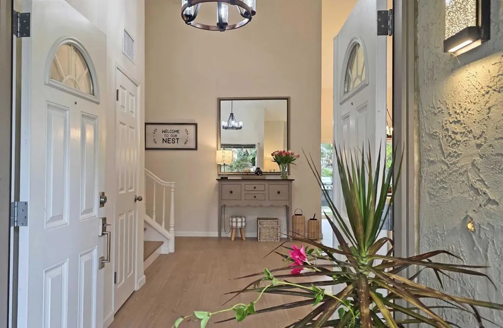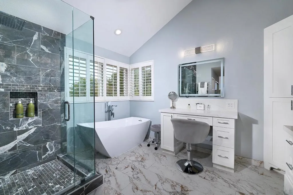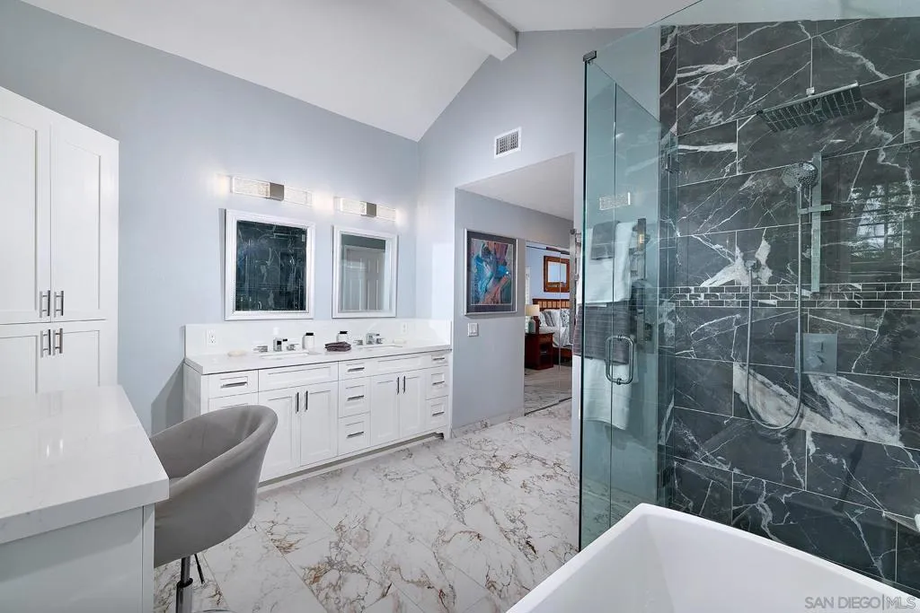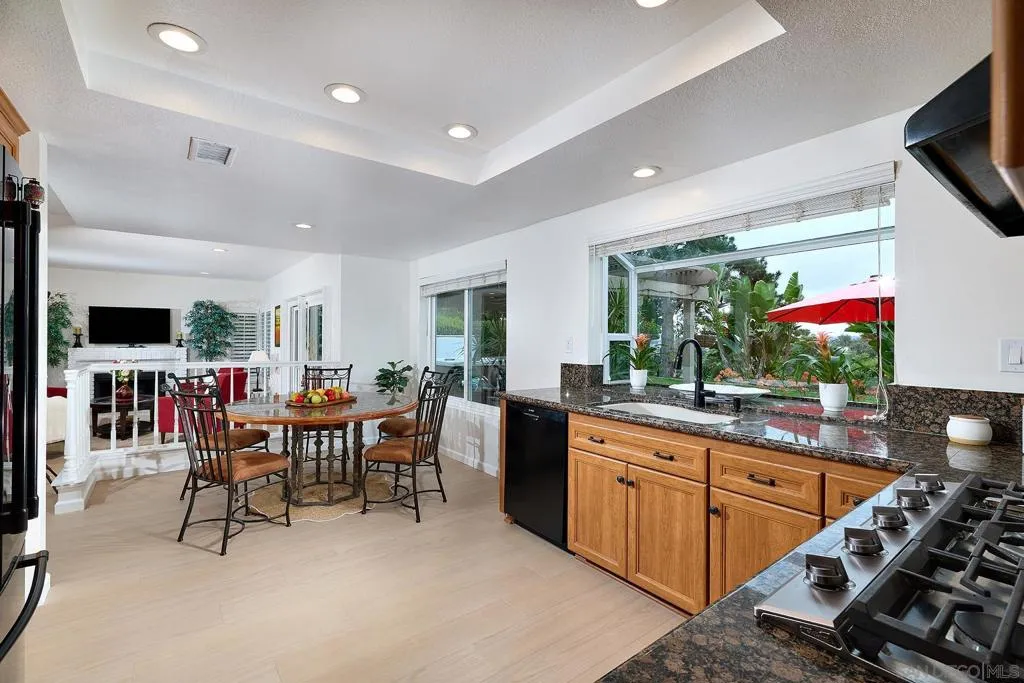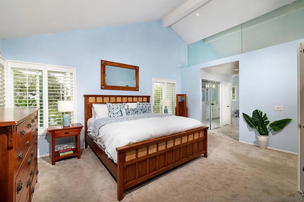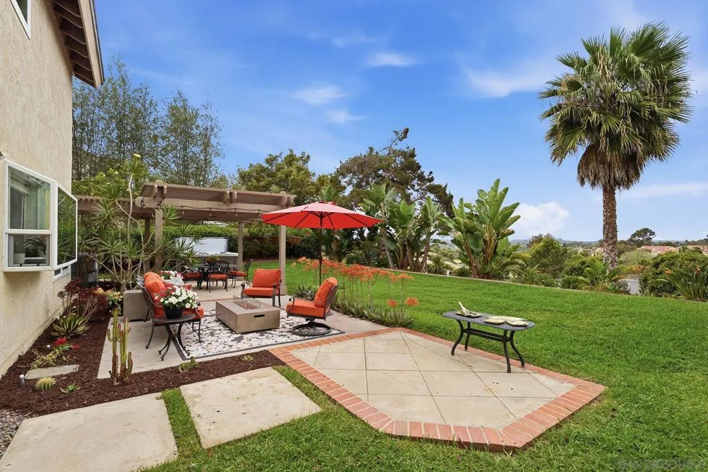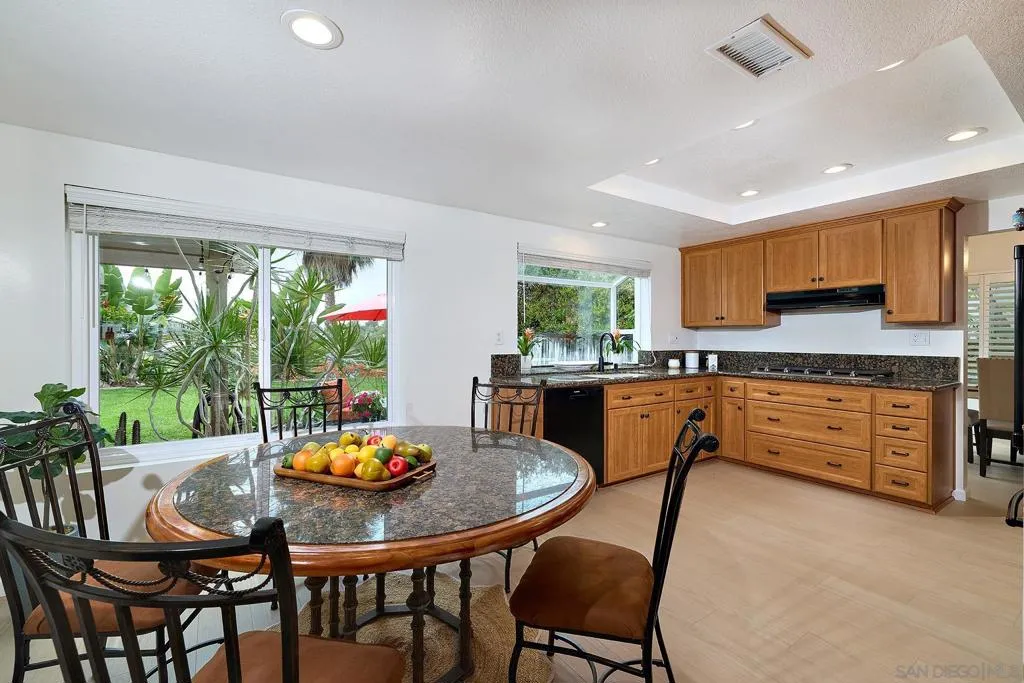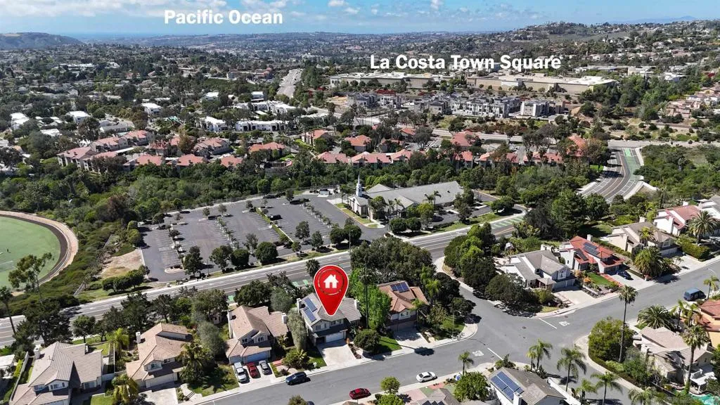 This home delivers the La Costa Tri-Factor: premier location, stylish modern upgrades, and exceptional schools. Set on an elevated lot with beautiful westerly views, this refreshed La Costa Knolls property features brand-new luxury vinyl plank flooring, fresh paint, vaulted ceilings, Milgard windows with plantation shutters, and a newer dual-zone HVAC system. The central kitchen opens to the main living areas for easy entertaining. The spacious primary suite offers two walk-in closets and a custom-tiled bath with a free-standing tub and separate shower; the connected 4th bedroom is perfect for an office, nursery, or retreat. Enjoy sunsets from the covered patio or stroll to Stagecoach Park. Minutes to La Costa Canyon High School. The location is truly exceptional. Nestled near scenic trails and open space, this home is ideal for outdoor and fitness enthusiasts. You’ll enjoy convenient access to North County’s best dining, shopping, fitness studios, and entertainment, plus world-class golf, the Del Mar Racetrack, and miles of coastline just 5 miles away. Quick access to the I-5 makes commuting and weekend adventures effortless. Practical features elevate everyday living, including a 3-car garage, dedicated laundry room, and a wet bar perfect for entertaining. Energy-efficient solar panels help keep utility costs low. Best of all, there are no HOA fees or Mello-Roos, giving you freedom and long-term value. This home blends comfort, convenience, and the quintessential North County lifestyle.