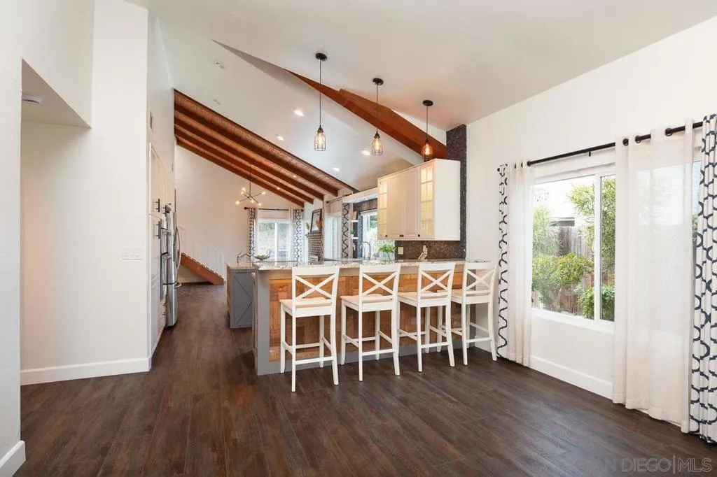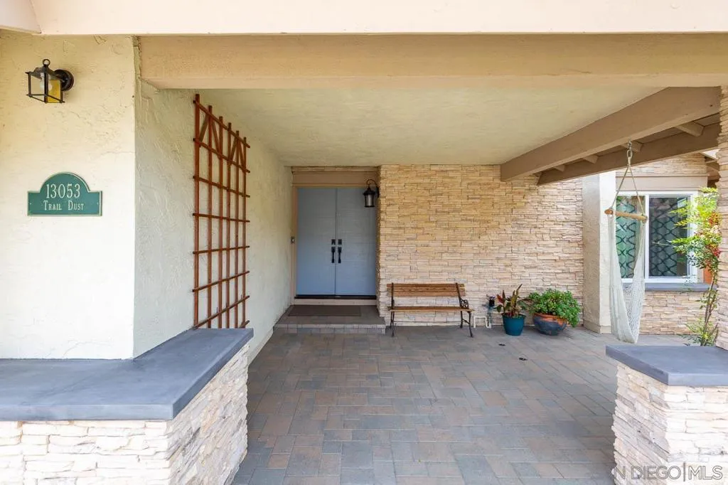 Welcome to this beautifully redesigned and tastefully updated 2,210 sq ft home offering 4 bedrooms and 3 full bathrooms, thoughtfully crafted for both comfort and flexibility. The standout feature is a highly desirable and rare 500 sq ft second-story addition, complete with its own private bedroom, full bathroom, kitchen, and living area—an ideal setup for multi-generational living, extended guests, or a quiet home office retreat. Step inside and immediately feel the openness created by soaring raised ceilings and a seamless front-to-back sightline that connects the living room, open kitchen, dining area, and backyard spaces. Natural light fills the home, enhanced by a well-placed skylight and newer vinyl windows and sliding doors. Outdoor living is just as inviting, with a quiet side patio perfect for al fresco dining, plus a spacious backyard designed for relaxation and play, featuring a spa and outdoor shower. The home’s curb appeal shines with a shaded front patio, newer pavers, and an attractive stacked stone façade. Additional upgrades include a fully paid solar system, tankless water heater, central AC, and low-maintenance artificial turf for easy living. Located within the highly regarded Poway Unified School District—serving Westview High School, Mesa Verde Middle School, and Sundance Elementary School—this home also offers close proximity to the PQ Canyon trailhead for hiking, nearby library and shopping, and convenient freeway access. No HOA and no Mello-Roos.