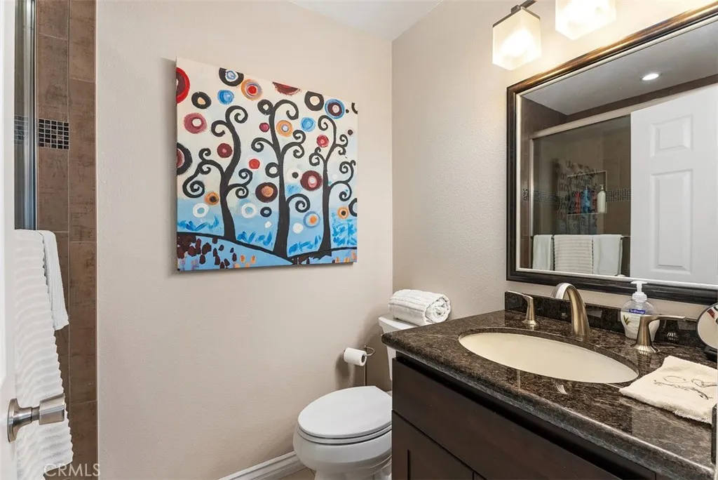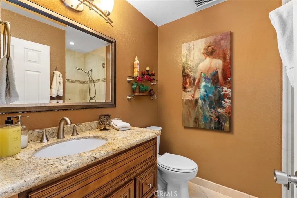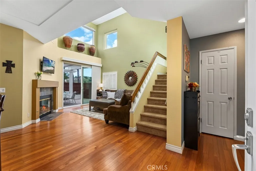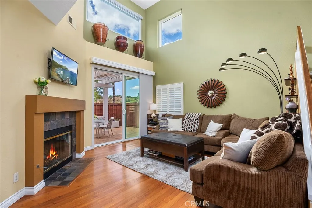 Welcome to the sought-after Sierra Verde community in Rancho Santa Margarita—where style, comfort, and lifestyle come together in one exceptional home. This beautifully upgraded 3-bedroom, 3-bathroom townhome offers a highly desirable and rare main-level bedroom with a full designer bathroom across the hallway—perfect for guests, multi-generational living, or a private home office. Thoughtfully upgraded with espresso cabinetry, granite countertops, and a custom tiled shower, it sets the tone for the quality found throughout. Step inside to an open, airy floor plan highlighted by soaring vaulted ceilings and elegant recessed lighting. The updated kitchen shines with whitewashed cabinetry, sleek granite countertops, and stainless steel appliances, Refrigerator included—all overlooking your private outdoor retreat. The inviting living room features engineered wood flooring, cozy fireplace and seamless access to a spacious patio complete with pavers, new wood fencing, and vibrant planters—creating the perfect indoor-outdoor California lifestyle. Upstairs, the luxurious primary suite is a true sanctuary with vaulted ceilings, a spa-inspired bathroom featuring dual espresso vanities, a beautifully tiled walk-in shower, extra storage, and a generous walk-in closet. A secondary upstairs bedroom also offers its own upgraded en-suite bathroom and walk-in closet, providing comfort and privacy for all. Additional highlights include a full two-car garage and a rare two-car driveway—offering exceptional parking and convenience. New Roof, all homes re-piped in 2014. Located on a picturesque tree-lined street, residents enjoy access to a private community pool, mini park, and nearby scenic hiking and biking trails. Golf lovers will appreciate being just minutes from Tijeras Creek Golf Club. As part of SAMLARC, you’ll experience resort-style living with access to multiple parks, four heated pools, the beautiful lagoon beach club, playgrounds, tennis, pickleball, basketball, volleyball courts, and miles of trails. This is more than a home—it’s a lifestyle. Don’t miss your opportunity to own a stunning piece of the Rancho Santa Margarita dream.