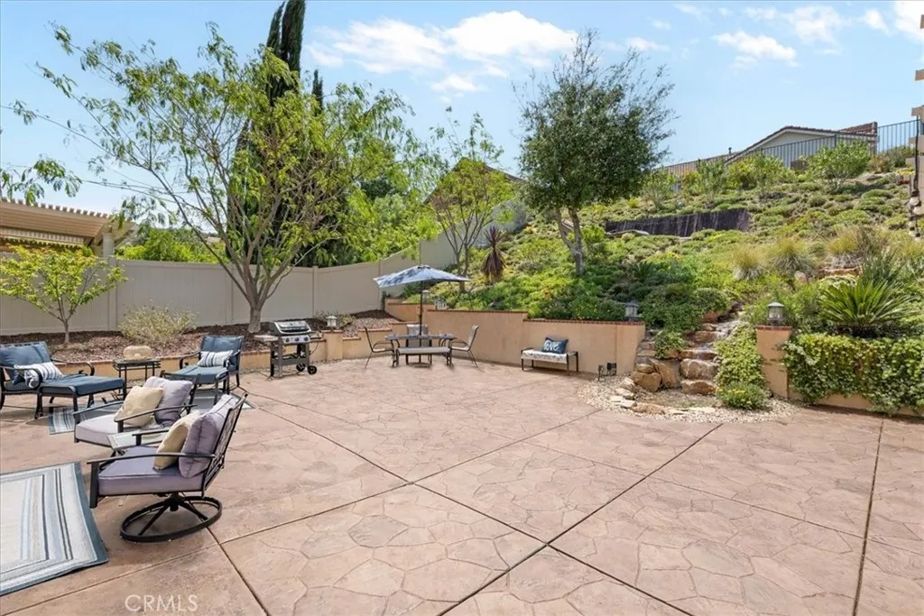 Single-story cul-de-sac home with a backyard designed for true indoor-outdoor living. Located in the gated 55+ community of Four Seasons Beaumont, this Laurel II model offers a bright, open layout with a natural connection to the outdoors and a peaceful waterfall you can see and hear from the main living area. The family room opens to the backyard through a large slider, bringing in natural light and creating an easy flow to the covered patio. The gorgeous built-ins, a cozy fireplace, and a window seat add warmth and give the space a comfortable place to sit and look out to the yard. The kitchen is set up for gathering, with an island, granite counters, a built-in stainless steel range and oven, and a pass-through to the family room that keeps everything connected while still giving you room to cook. Just off the entry, the den with doors and custom built-in bookshelves add functionality and detail to your office or TV room. The secondary bedroom is roomy and open, making it ideal for guests. The primary suite offers a comfortable retreat with a spacious layout, a soaking tub, separate shower, and a generous walk-in closet with built-in organizers—creating a space that works well for both everyday use and relaxing at the end of the day. A separate laundry room with additional storage adds to the everyday functionality of the home. Out back, the covered stucco patio extends the living space, with a separate pergola seating area further into the yard. Stamped concrete, a gentle slope with natural ground cover, and the waterfall feature create a calm, easy setting without a lot of upkeep. Four Seasons is a gated community with a 24-hour attendant and is known for its tree-lined streets, walking trails, and meticulous surroundings. Residents enjoy an indoor pool, two outdoor pools, pickleball courts, lighted tennis courts, two fitness centers, an on-site restaurant, a dog park, and a full calendar of activities that offers a strong sense of community.
