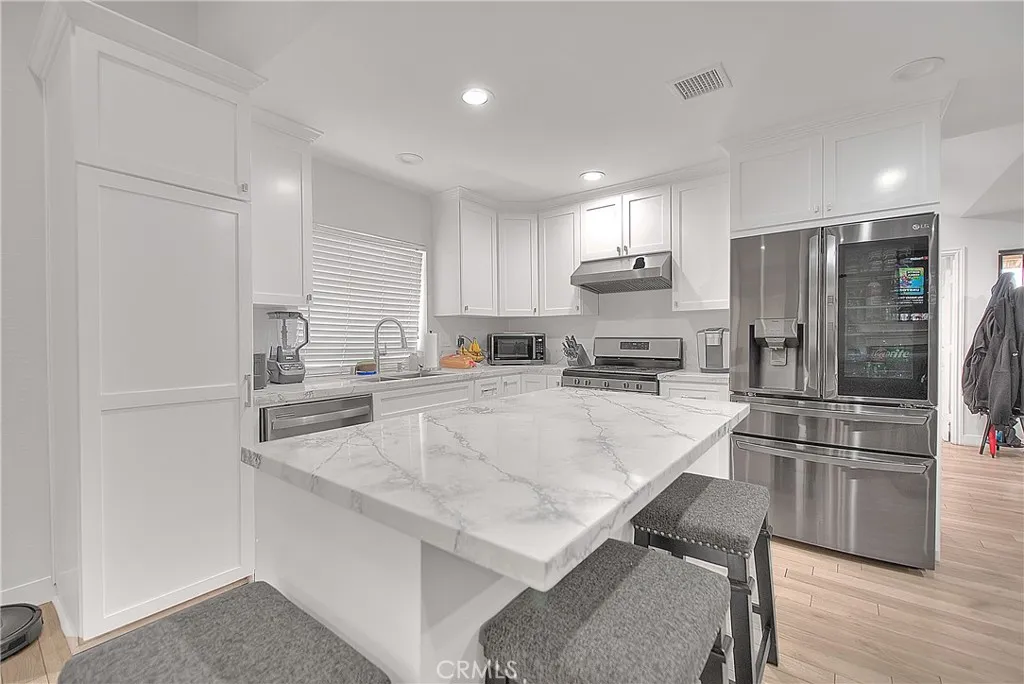 Welcome to this beautifully updated property in the highly desirable city of Upland, offering exceptional versatility and modern living with a newly built ADU. The front residence features 4 bedrooms and 2 bathrooms across approximately 1,754 sq ft, thoughtfully designed with comfort and style in mind. Enjoy an abundance of natural light and a functional open floor plan, complemented by water-resistant wood and tile flooring throughout. The spacious living room flows seamlessly into the dining area and gourmet kitchen, which showcases custom cabinetry, quartz countertops, a designer backsplash, and brand-new stainless steel appliances. The primary suite offers dual closets and a beautifully upgraded bathroom with a custom-tiled shower and glass enclosure. Additional upgrades include energy-efficient LED lighting, new windows, central HVAC, and a 3-car garage. The detached ADU, built in 2024, offers 1,000 sq ft of living space with 2 bedrooms and 2 full bathrooms. (Unit shows 3 bedrooms) This well-appointed unit mirrors the main home’s quality finishes, featuring an open-concept layout, abundant natural light, water-resistant flooring, a modern kitchen with quartz countertops and stainless steel appliances, and a spacious primary suite with a custom shower and glass enclosure. Each unit has its own gas meter, electric meter, and separate address, providing excellent flexibility for multi-generational living or rental income potential. Situated on a generous 11,645 sq ft lot with plenty of parking space, this property offers privacy and endless possibilities. Each unit has it's own address number. Move-in ready and designed for today’s lifestyle—don’t miss this incredible opportunity!