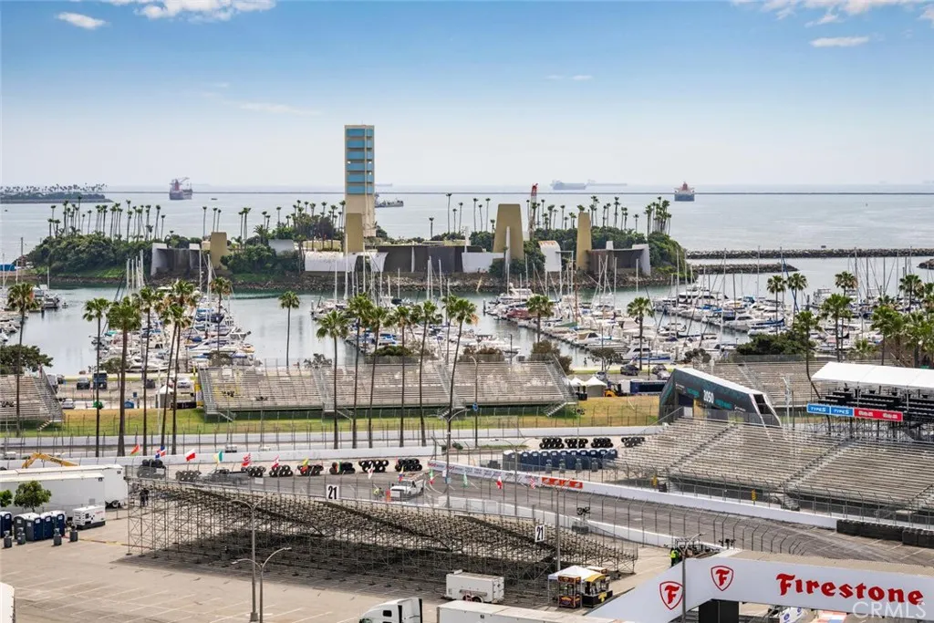 This fantastic ninth floor unit with an updated kitchen, amazing views of the ocean, Catalina Island, Queen Mary, the harbor, and sunsets waits for you. Unobstructed views greet your every day. High rise living, complete with a staffed front desk and 24 hour security, is the epitome of luxury. The amenities are many, and most, but not all, are listed below. The private balcony is the ideal getaway spot where you can daydream the hours away while enjoying the view. This downtown location is the epicenter of activity including the Long Beach Grand Prix. Ride your bike on the path, walk on the beach, explore Pine Ave, enjoy Shoreline Village and appreciate The Performing Arts Center with its numerous performances. I'm not sure there is a better view to be had of the LB Grand Prix. You can be in the living room, kitchen, or either bedroom and the views never stop. One unique downtown feature of this building is...LOTS of parking! You have two spaces for yourself but there are tons of visitor spots, so have a party! And if that 's not enough, the kitchen has been nicely updated and looks beautiful. The appliances are ALL quite new. The range top boasts a nice warmer element for your cooking pleasure. The flooring was installed last year. Even the heat pump was replaced, so no worries about heating and A/C for quite a while. Your laundry is tucked nicely away in a closet in the secondary bathroom. This unit is priced to sell, so come on by!