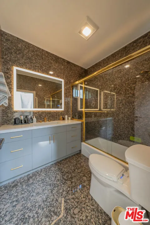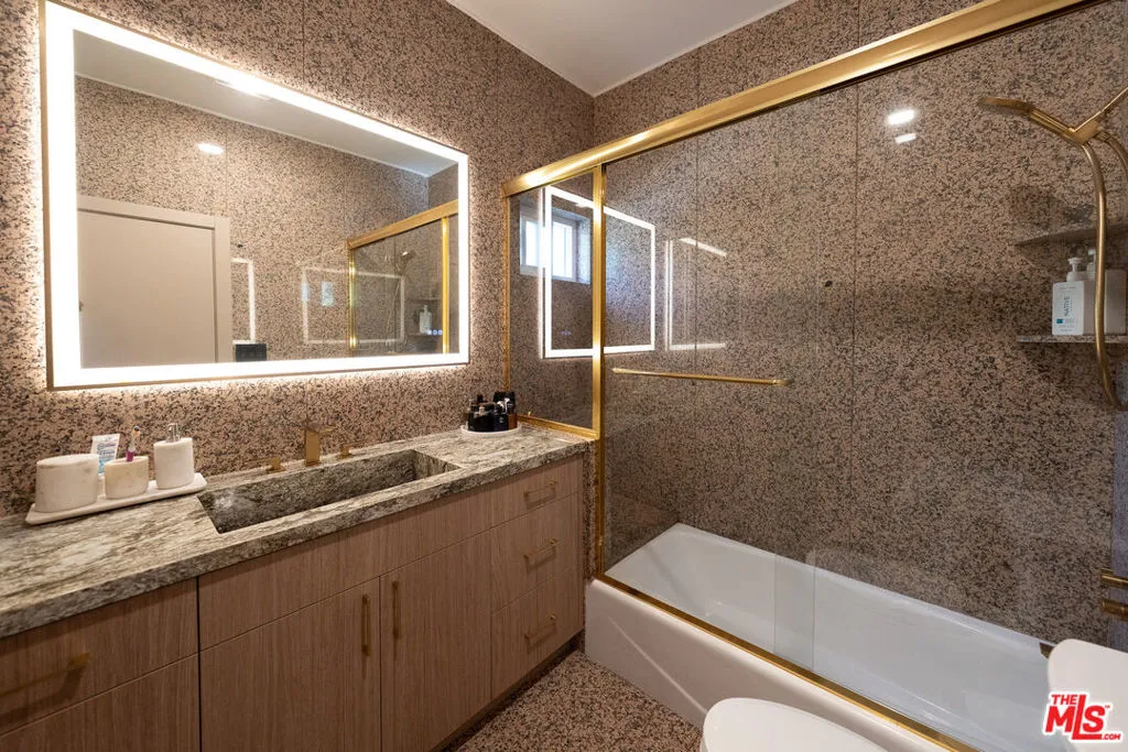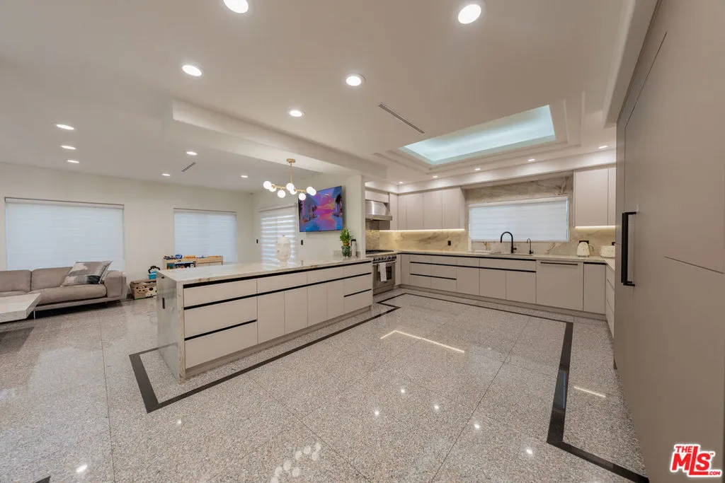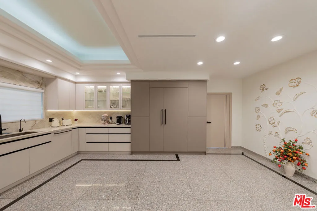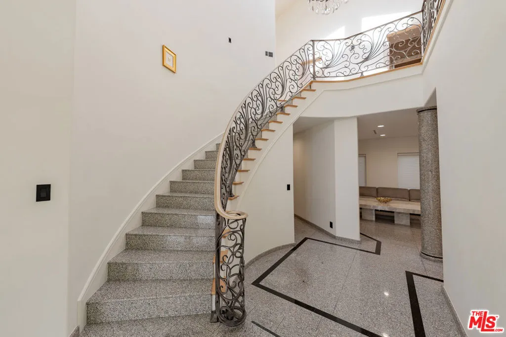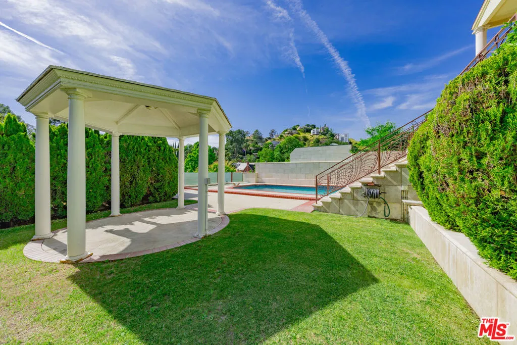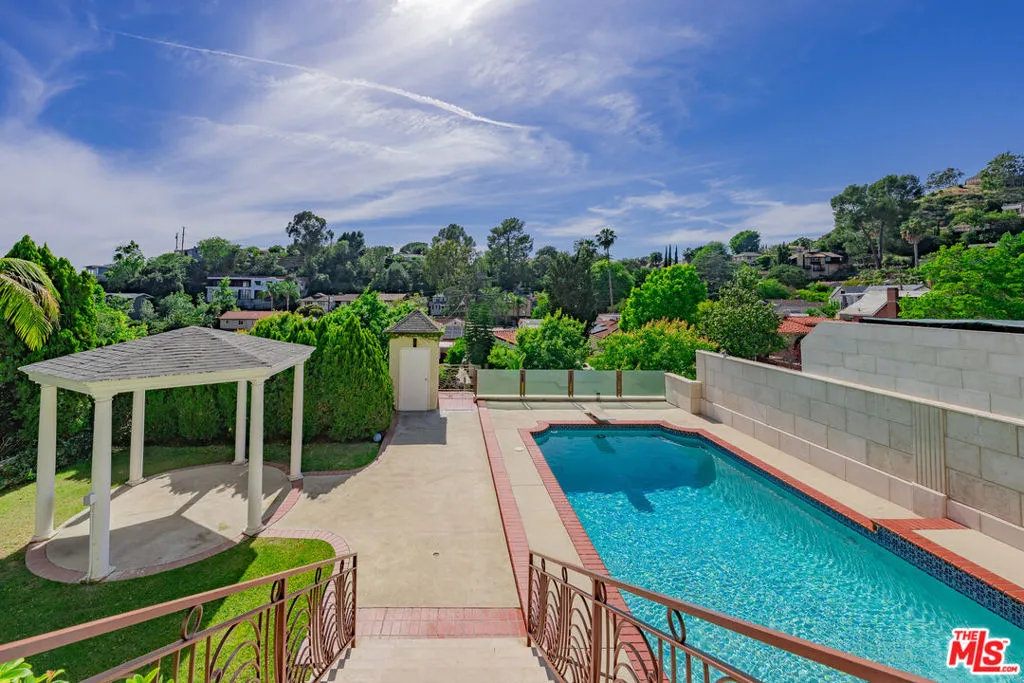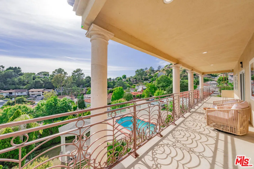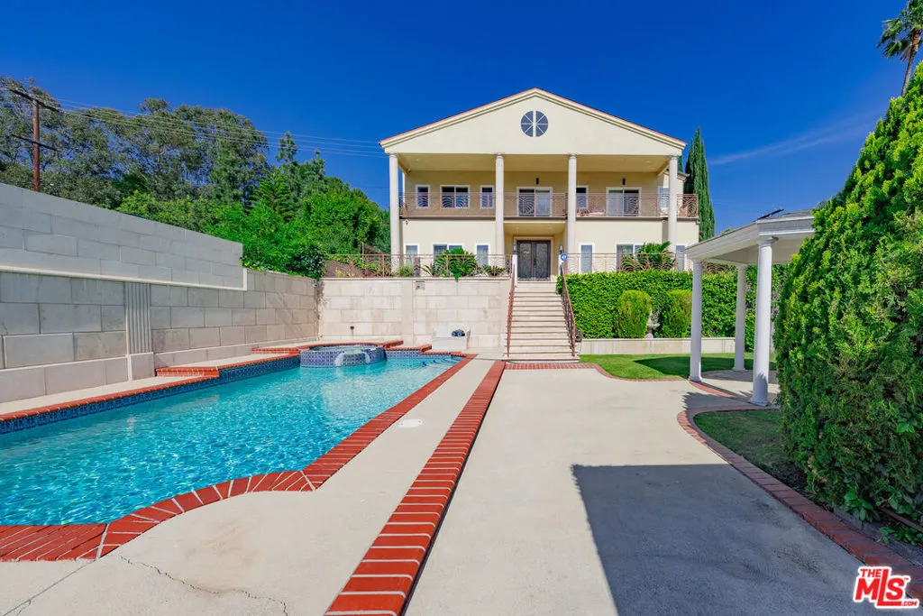 This 4-bedroom, 3.5-bathroom Southern Colonial-style estate in Glendale offers 3,696 square feet of refined living space. The residence is distinguished by a grand columned facade and a two-story foyer featuring a curved staircase and granite flooring. For convenience, a personal elevator by the two-car garage to the main front yard. The formal floor plan includes a dining room, a living area with a fireplace, and a custom wet bar designed for entertaining. The remodeled kitchen features Taj Mahal Quartzite waterfall counters and backsplashes, a high-end Thermador appliance suite, and minimalist, handle-less cabinetry. Each bathroom has been renovated with imported Italian stone, and quarts and custom-built vanities. Upstairs, the primary suite offers dual walk-in closets and a private balcony with gorgeous views of the surrounding hillsides and the Downtown Los Angeles buildings. The outdoor space is designed as a private retreat, featuring a pool, spa, pillared gazebo, and a built-in BBQ area. Multiple wrought-iron balconies and professional landscaping complete the exterior. One or more photos have been digitally altered for marketing purposes (AI Twilight Enhancement). Unaltered original photos are included in the listing for comparison.