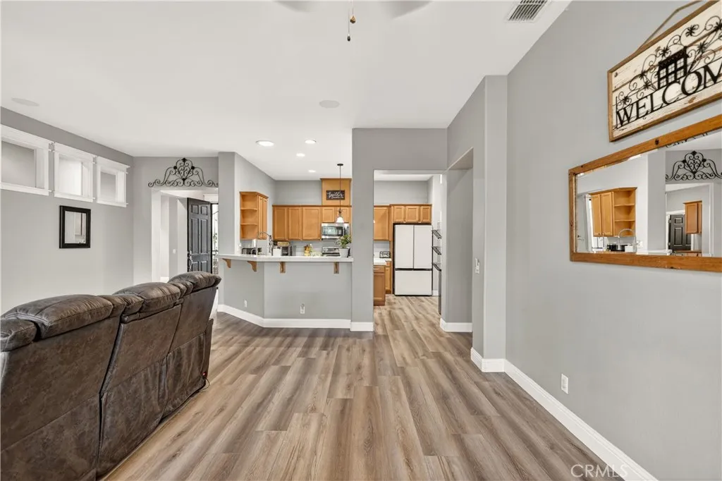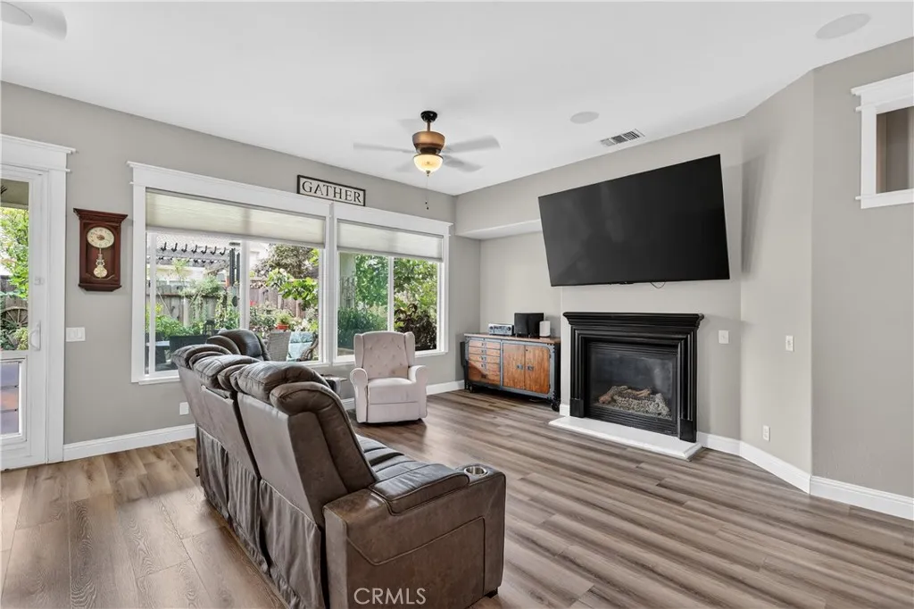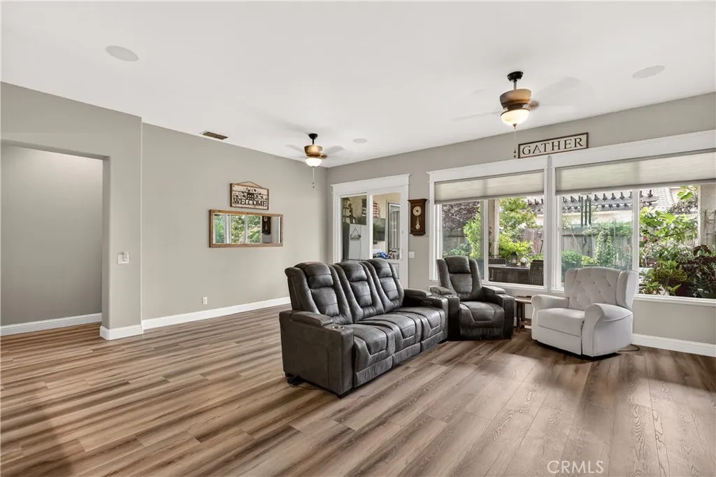 Spacious four bedroom, three bath home featuring a well designed floor plan and comfortable living spaces throughout. Recent updates include new luxury vinyl flooring, adding a fresh and modern touch. The private primary suite is thoughtfully separated from the guest bedrooms, offering added comfort and privacy. Indoor laundry room off the guest bedroom hallway and features a small dog door for your furry friend! The garage has been converted into additional living space and includes a permitted bathroom along with heating and air, making it ideal for extended family, a home office, or bonus room. This space can also be converted back to a garage if desired. Step outside to a cozy, park like backyard that is just perfect for relaxing! With so much to list, you'll have to tour for yourself! All located in the beautiful Stone Creek community and conveniently located near many amenities!