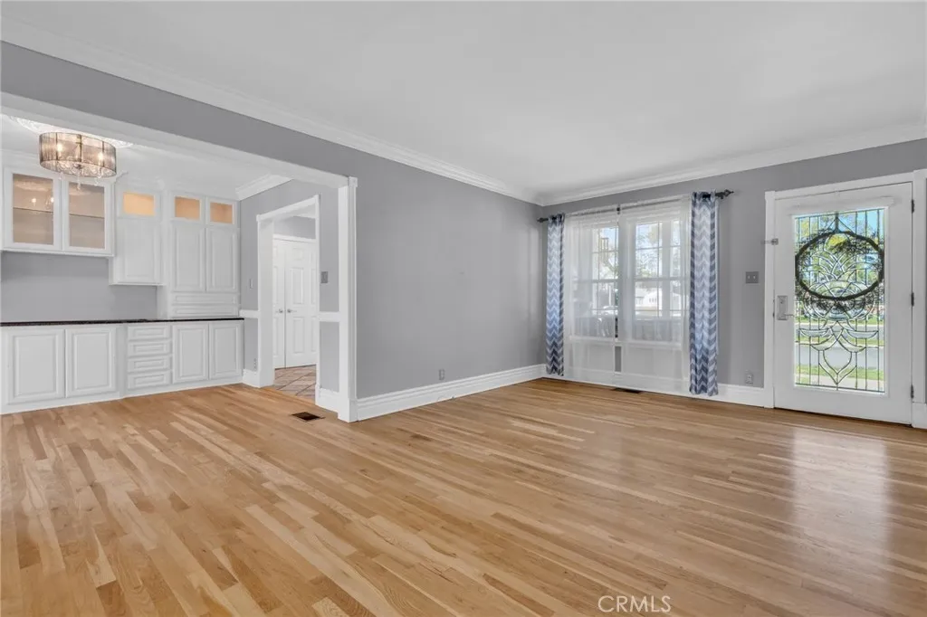 Beautifully maintained Lakewood Park home showcasing exceptional curb appeal and thoughtful upgrades throughout. This inviting 3-bedroom, 1-bath residence offers approximately 1,120 square feet of well-designed living space on a generous 5,315 sq. ft. lot. Inside, the home features a stylishly remodeled kitchen complete with crisp white cabinetry, granite countertops, custom tile backsplash, farmhouse sink, recessed lighting, ceramic tile flooring, and abundant storage. The interior is enhanced by newly refinished oak hardwood floors, updated light fixtures and ceiling fans, crown molding, dual-pane windows, and central A/C and heating for year-round comfort. The upgraded bathroom includes ceramic tile finishes, a pedestal sink, soaking tub, and glass-enclosed shower. Additional highlights include copper plumbing and a convenient indoor laundry area with washer/dryer hookups. The spacious living room flows seamlessly into a formal dining area and extends to a versatile bonus space—ideal for a home office or flex use—with direct access to a covered patio, creating an excellent setup for indoor-outdoor living and entertaining. Exterior features include fresh paint, a detached two-car garage, a secure vinyl gate, and custom-designed front and rear porches that add character and charm. Both front and back yards are equipped with timed irrigation systems, while mature lemon and plumeria trees provide a lush, fragrant outdoor setting. Ideally located near shopping, schools, parks, golf, and major freeways, this home offers both comfort and convenience. A fantastic leasing opportunity in a desirable Lakewood neighborhood—don’t miss it!