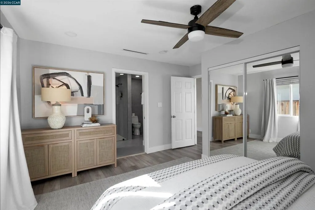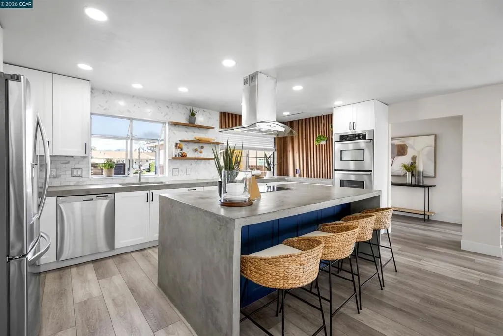 Experience the perfect blend of modern design and everyday comfort in this thoughtfully renovated home. Perfectly positioned at the quiet end of a cul-de-sac, the home welcomes you with a bright, cohesive interior featuring updated flooring and premium finishes throughout. The chef-inspired kitchen is a true showpiece, boasting industrial-chic concrete countertops, sleek cabinetry, open shelving, and an expansive social island designed for both daily life and grand-scale entertaining. Both bathrooms have been tastefully reimagined, including a spa-like primary suite with a custom, oversized tile shower. The interior flows seamlessly to a backyard oasis that defines the California indoor-outdoor lifestyle. Spend your evenings under the vaulted, wood-beamed covered patio, warmed by the outdoor fireplace while overlooking the sparkling pool and lush lawn. Beyond the aesthetic, this home offers incredible peace of mind and efficiency with owned solar, a brand-new HVAC system, and new ducting. Located just minutes from top-tier shopping, dining, and schools, this move-in-ready gem offers the perfect balance of style, sustainability, and location. Your private retreat awaits, schedule your private tour today!