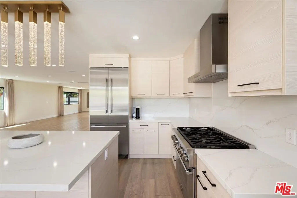 Fully renovated, down-to-the-studs, single-story home in a peaceful Granada Hills neighborhood. Designed with a modern, open-concept layout, this residence features high-end finishes, a chef's kitchen with Thermador appliances, and abundant custom storage throughout. The expansive, ultra-private backyard offers covered outdoor living areas, hillside views, and a swing set perfect for both entertaining and everyday family enjoyment. Covered carport plus parking for up to 4 vehicles, including EV charger. A rare turnkey lease combining comfort, style, and space in a highly desirable setting.