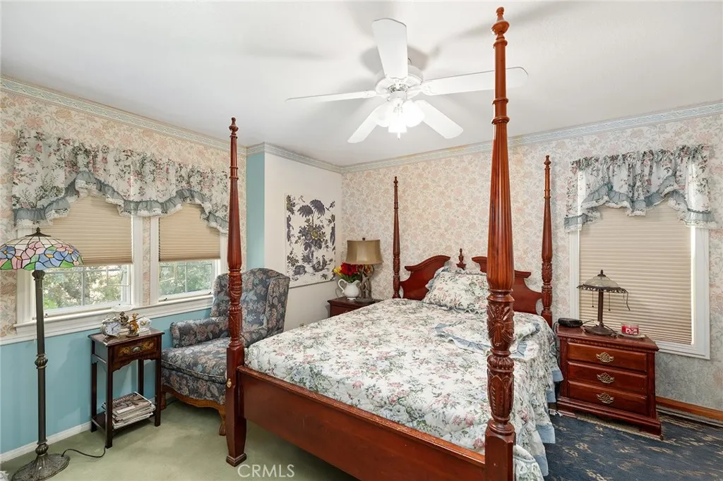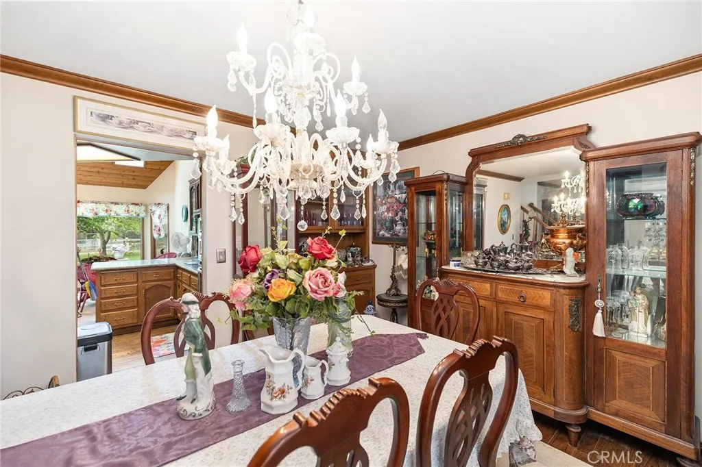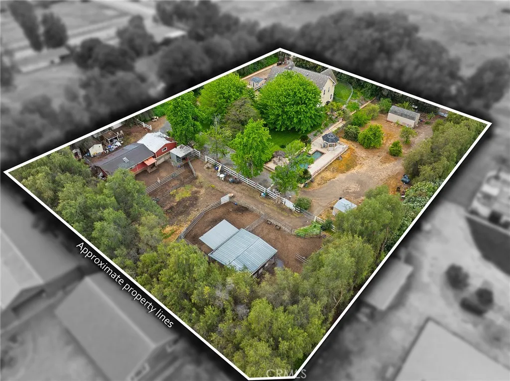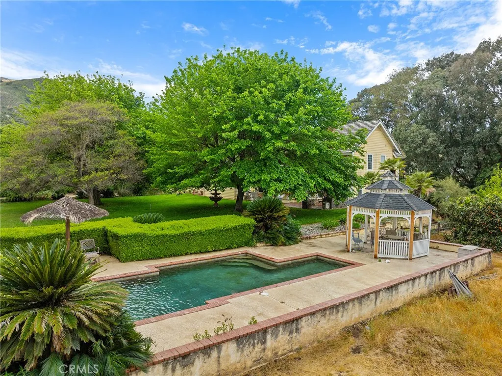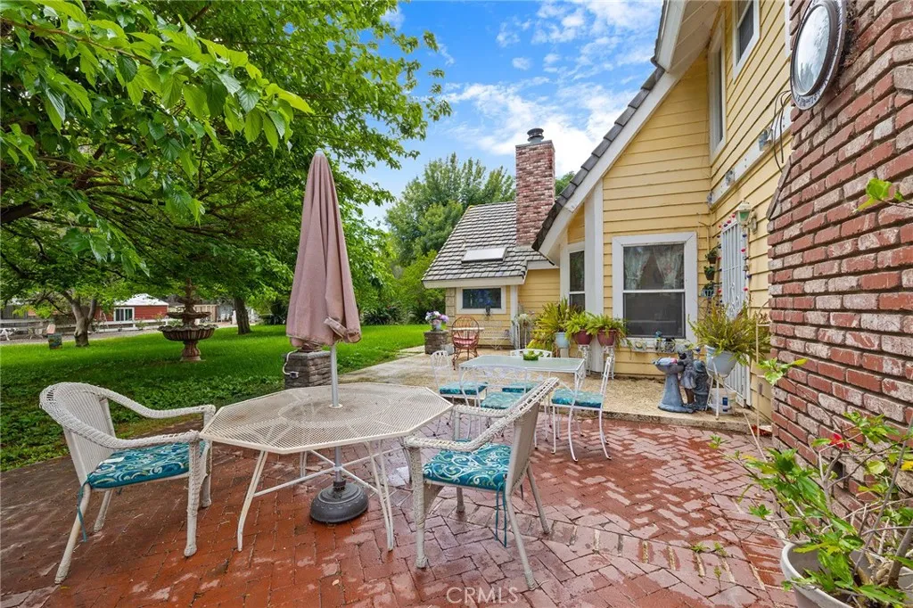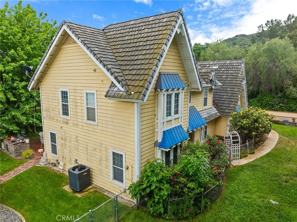 This storybook Victorian style home is situated on approximately 1.82 acres behind mature landscaping, offering privacy, charm, and space to enjoy the outdoors. This custom built estate welcomes you with two gated entries, adding to the sense of arrival and convenience. Inside, the home features a formal living room and two dining areas. The main floor includes a primary suite with a full bathroom, along with a half bathroom for guests. Upstairs offers three bedrooms, one bathroom, and a loft for additional living space. A spiral oak staircase adds character, while a large attic with staircase access provides valuable storage. Wood, marble, and carpeted flooring, along with skylights, create a warm and inviting interior. Two brick fireplaces, one with a Lopi pellet stove, add to the home’s comfortable feel. The kitchen includes granite countertops, oak cabinetry with stained glass accents, and a breakfast nook overlooking the backyard. Outside, the grounds are designed for both relaxation and function, with a saltwater pool featuring a granite pebble finish and waterfall, gazebo, and built-in BBQ create a comfortable space for relaxing or entertaining. Plush lawns and established shade trees, along with mature orchard trees including lemon, tangerine, grapefruit, pear, plum, and loquat, add to the setting. The property is fully fenced and offers room for horses, featuring two large pens with shelters and a turnout, multiple outbuildings, and a shop providing flexibility for animals, projects, or workspace. All this, just minutes from shopping, schools, and convenient freeway access, creating the opportunity for a private, flexible lifestyle with room to make it your own.