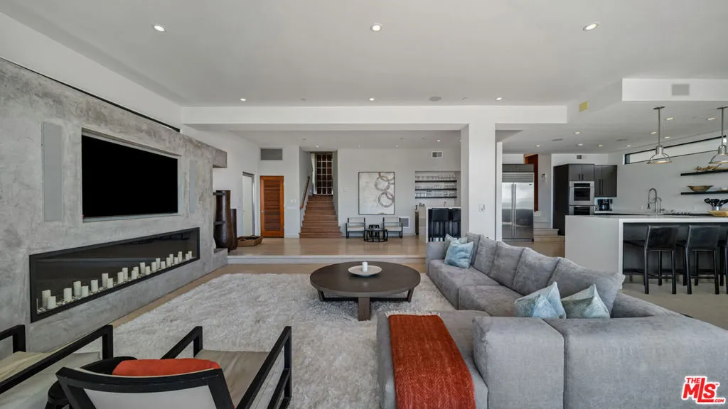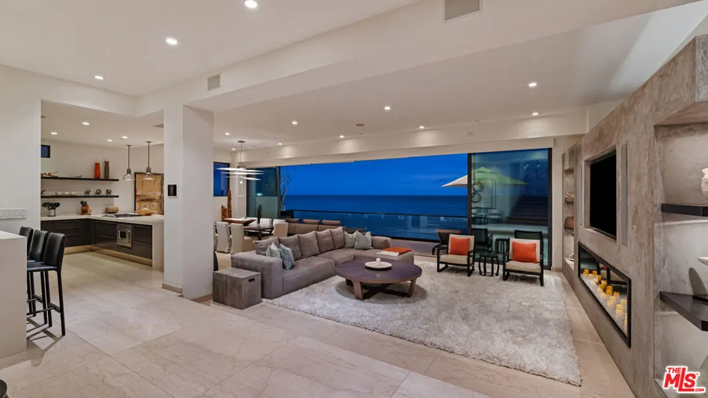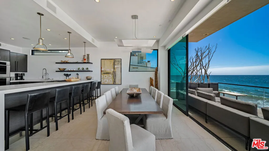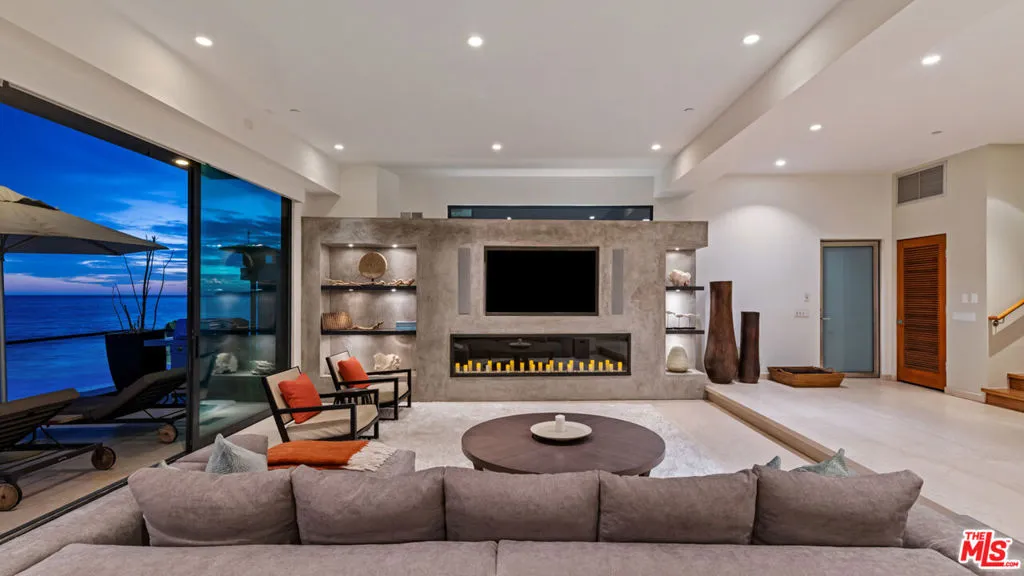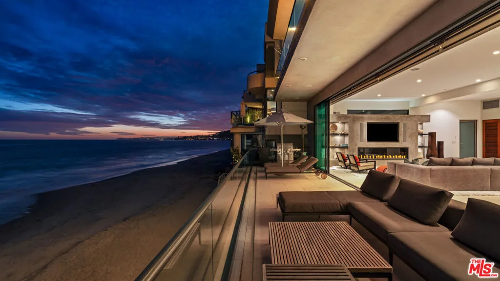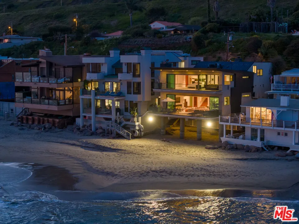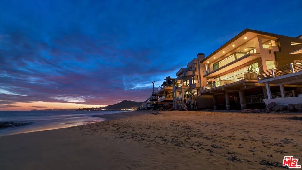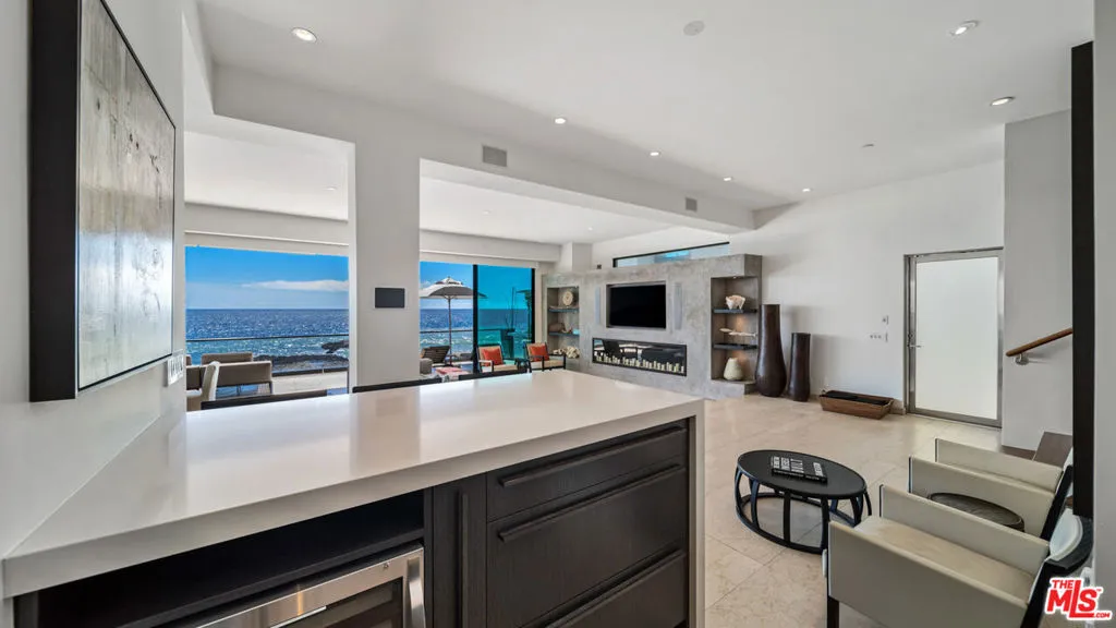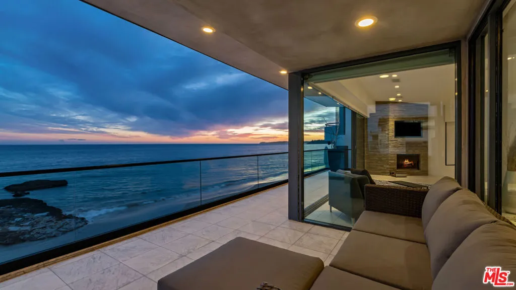 FLATROCK MALIBU ROAD: Located directly in front of the famous "Flatrock on Malibu Road" and on approximately 50 feet of sandy beach, this oceanfront residence offers endless coastline views from Point Dume to Palos Verdes. Malibu Road offers a location off Pacific Coast Highway while still being right in the center of Malibu near the best restaurants, shops and activities. Built in 2002, this home has a concrete caisson foundation and the finest materials and finishes. The scale of the main level is unmatched with high ceilings and open living areas offering the perfect setting for beachside entertaining. Touchscreen smart home automation system, automatic window shades, wet bar with wine fridge and many more thoughtful touches. The main level also offers a large living room, dining area and breakfast bar. The beach access to the sand below is secure and there is an outdoor shower and space to store your beach toys. Escape to the luxurious primary bedroom offering a fireplace, private balcony spanning the width of the property, custom built walk-in closet, and a large bathroom with infinity tub, double sinks and a steam shower. There are four additional bedroom suites each offering privacy, ample closets, marble and stone bathrooms and enough space for your guests. This is a one of a kind location on Malibu Road where you can enjoy the waves crashing against Flatrock as you enjoy everything you would want in a beachfront home.The property is also available for long term furnished lease at $50,000 per month or summer furnished lease at $100,000 per month (3 month minimum)