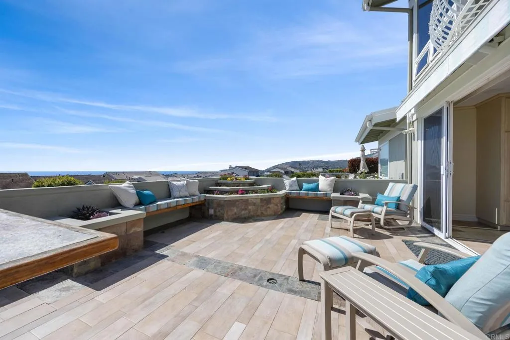 Perched above the Pacific in the exclusive community of Niguel Shores in Dana Point, this home is more than a residence—it’s a front-row seat to the rhythm of the ocean, with incredible protected views from both the main level and upstairs, including stunning vistas all the way to Catalina Island. Wake to soft coastal light spilling through your windows, the scent of salt air drifting in as the morning marine layer lifts. Evenings unfold in golden hues, where sunsets melt into the horizon and time seems to slow, if only for a moment. Thoughtfully designed for both quiet retreat and effortless entertaining, the home invites you to gather, connect, and unwind. Seamless indoor-outdoor living creates a natural flow, where doors open wide to welcome in ocean breezes and the distant sound of waves. Each space feels intentional, balancing comfort with a sense of understated coastal elegance. An in-home elevator allows effortless movement between levels, and culinary enthusiasts will delight in both a beautifully appointed main kitchen and a separate prep kitchen, designed for seamless entertaining and everyday convenience. Tucked within the guard-gated community of Niguel Shores with 24-hour security, this home also offers access to an array of world-class amenities: a clubhouse, sparkling pool, relaxing spa and sauna, well-maintained tennis courts, and a private beach with its own parking lot, just a short walk from your door. Located steps from the Ritz-Carlton, Dana Point and moments from oceanfront bluffs and scenic coastal paths, this is a lifestyle defined by barefoot mornings, spontaneous sunset walks, and the simple luxury of living by the sea. This isn’t just a place to live—it’s where everyday moments become something extraordinary.
