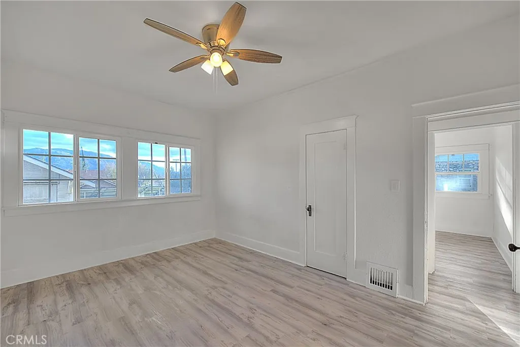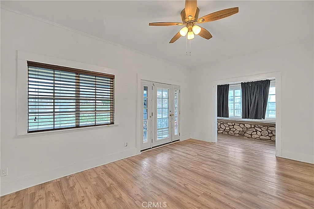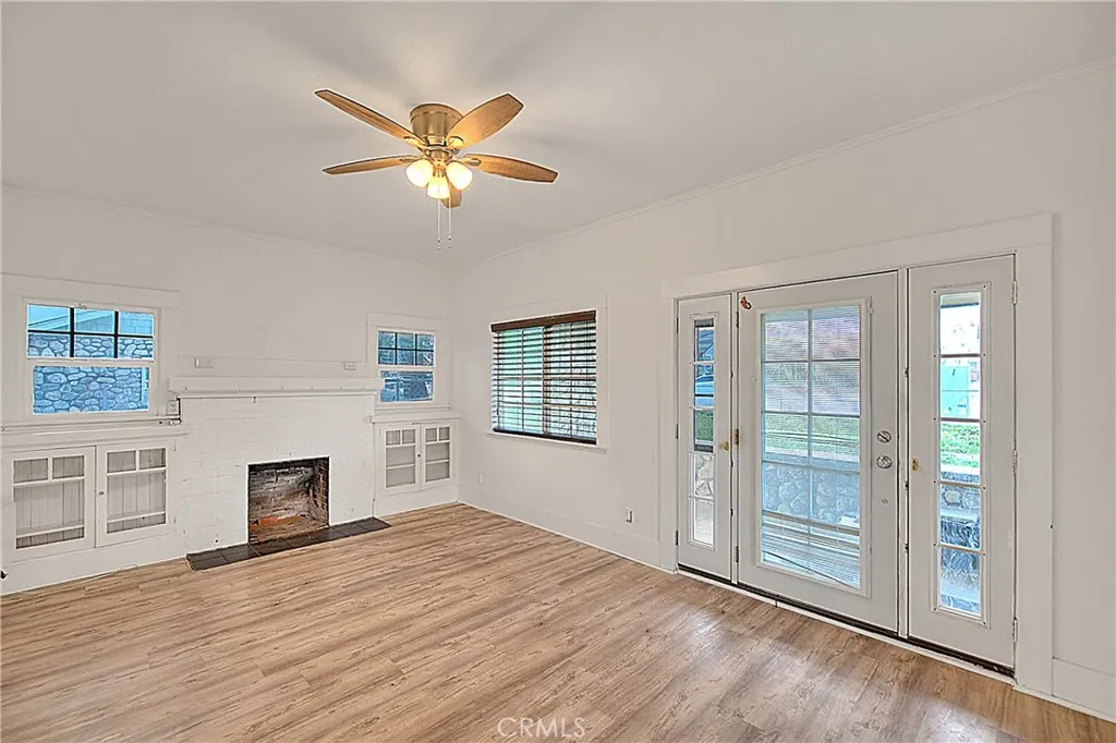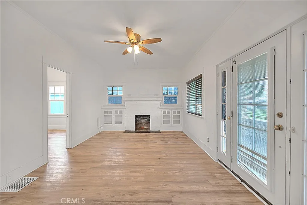 Charming older home with great bones and thoughtful upgrades throughout. This property features upgraded laminate flooring throughout the home, a fully remodeled bathroom, and a cozy living room with a fireplace and built-in cabinets. An additional room offers flexibility perfect as a dining area, sitting room, or extra living space. The kitchen could use some updating, but the cabinets are in good condition, giving you a solid foundation to make it your own. Downstairs, you’ll find a good-sized basement with a new water heater. The garage is a standout feature with laminate flooring, electrical, an A/C unit, and barn doors making it ideal for a workshop, studio, or potential future ADU (buyer to verify). The solar panels are conveniently located toward the back of the property, and the home sits on a large lot with plenty of space to expand or create your vision. A great opportunity with endless possibilities.