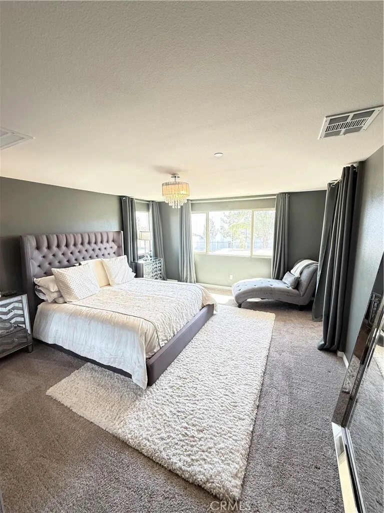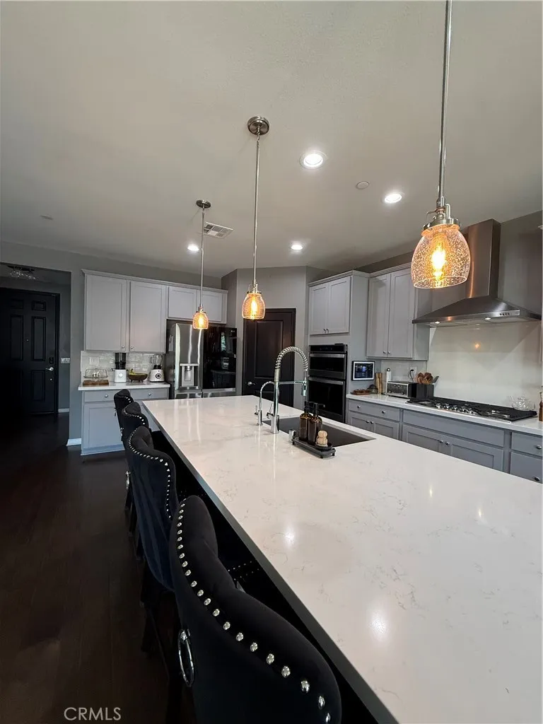 Embraced by tranquil mountain views, this stunning five-bedroom, three-bath home offers the perfect blend of comfort and style. From the moment you walk in, custom stairs, striking lighting, and rich hardwood flooring create an inviting feel throughout. A beautiful custom TV niche with a heater insert adds warmth and charm, making the living space perfect for cozy evenings at home. The chef-inspired kitchen is designed to impress, featuring abundant quartz counter space, a grand island, and beautiful cabinetry that make it ideal for cooking, entertaining, and gathering with family and friends. Upstairs, the spacious loft offers endless possibilities as a gym, theater room, or bonus living area. The primary suite offers a relaxing retreat with a walk-in closet and a luxurious Jacuzzi tub. Additional highlights include a two-car garage with an electric car charger, a water softener system, solar panels, and plenty of storage space throughout the home.Step outside to your own private retreat with a heated pool, beach entry, two covered patios, stamped brick concrete, and a bike trail behind the property. Conveniently located near shopping, freeways, and Victoria Gardens, this home truly offers a lifestyle of comfort, beauty, and convenience. All buyers, agents, brokers MUST verify all information for accuracy and are strongly advised to complete ALL due diligence. Elevate Real Estate Agency makes no representations or warranties, express or implied. This information is not a substitute for inspections provided by licensed professionals. Pease note, the MLS information is provided for advertising purposes only and is deemed reliable but not guaranteed.