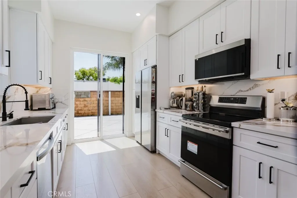 Newly built and thoughtfully designed, this 3-bedroom, 3-bath ADU in desirable Valley Glen offers approximately 1,200 sq ft of modern living space across two levels. The bright open floor plan is enhanced by high ceilings and recessed lighting, creating an airy and inviting atmosphere throughout. Contemporary finishes and stainless steel appliances elevate the kitchen, which flows seamlessly into the living and dining areas—perfect for both everyday living and entertaining. All bedrooms are well-sized, offering comfort and privacy, while the in-unit stackable washer and dryer add everyday convenience. This energy-efficient home is equipped with solar panels to help reduce utility costs. Enjoy three dedicated driveway parking spaces and a low-maintenance setting. Ideally located near shopping, dining, and with easy freeway access, this home offers the perfect blend of style, function, and convenience. A fantastic lease opportunity you won't want to miss!