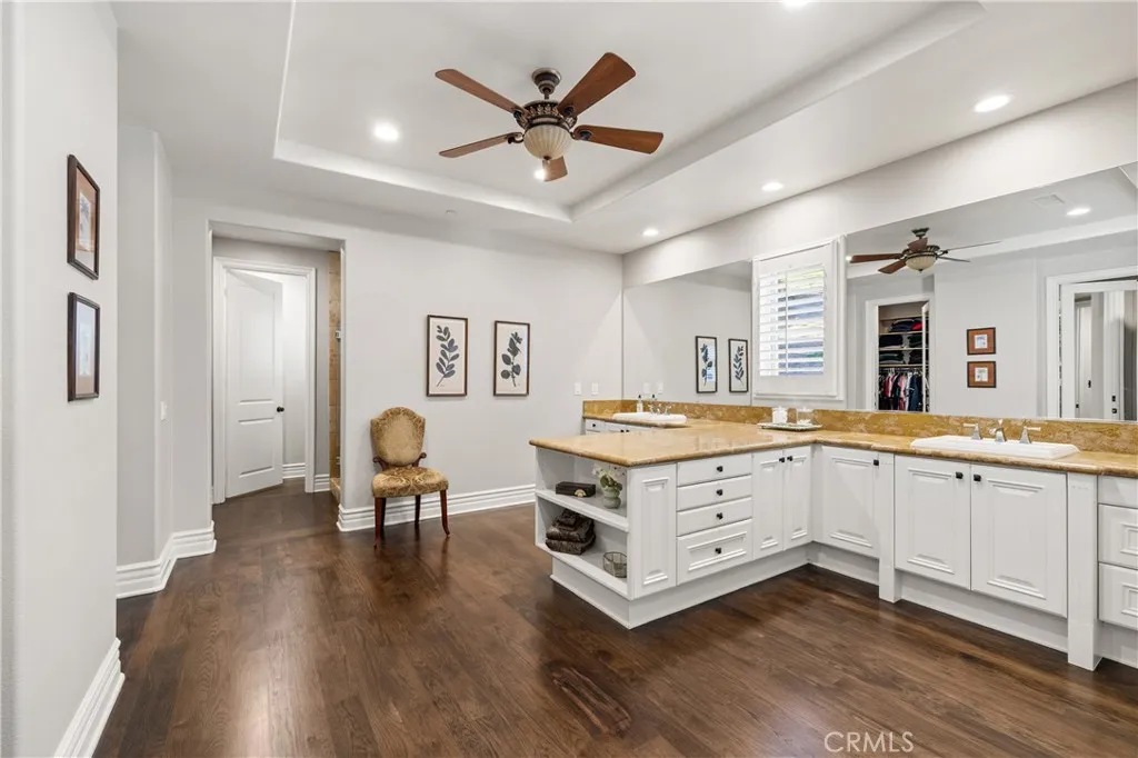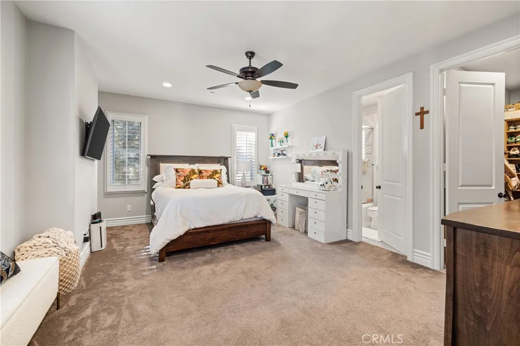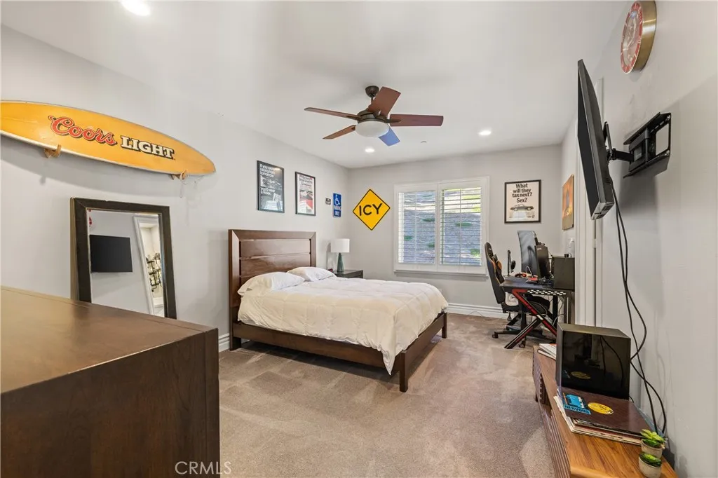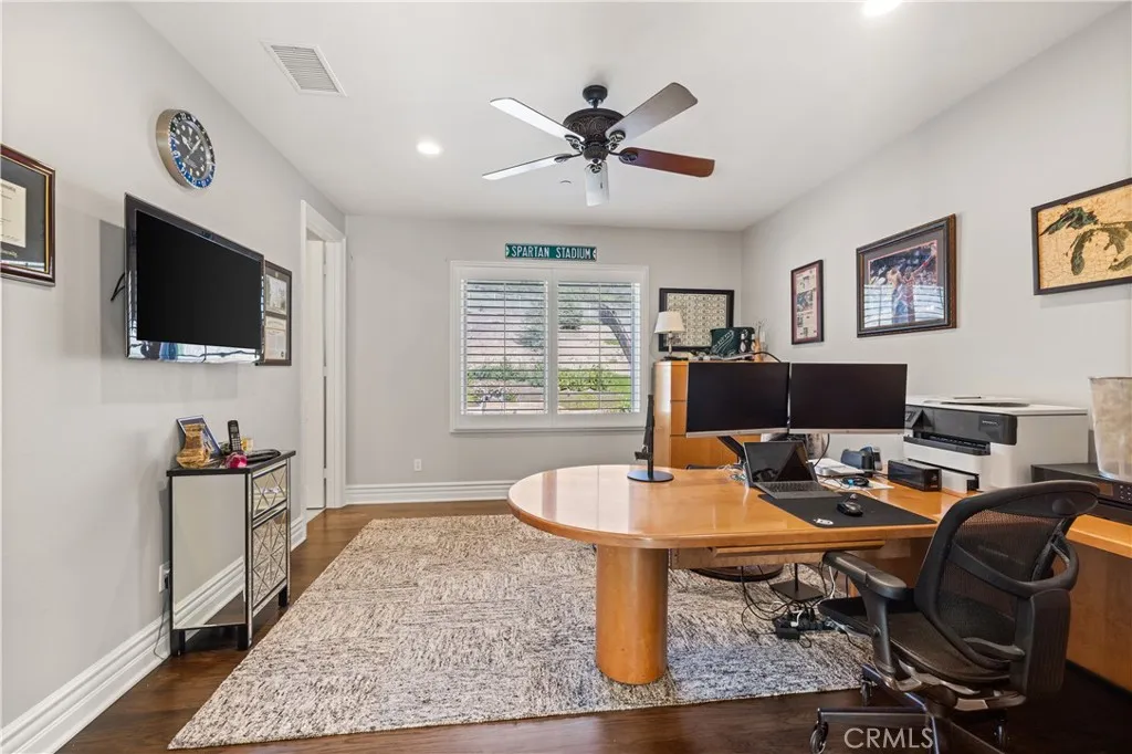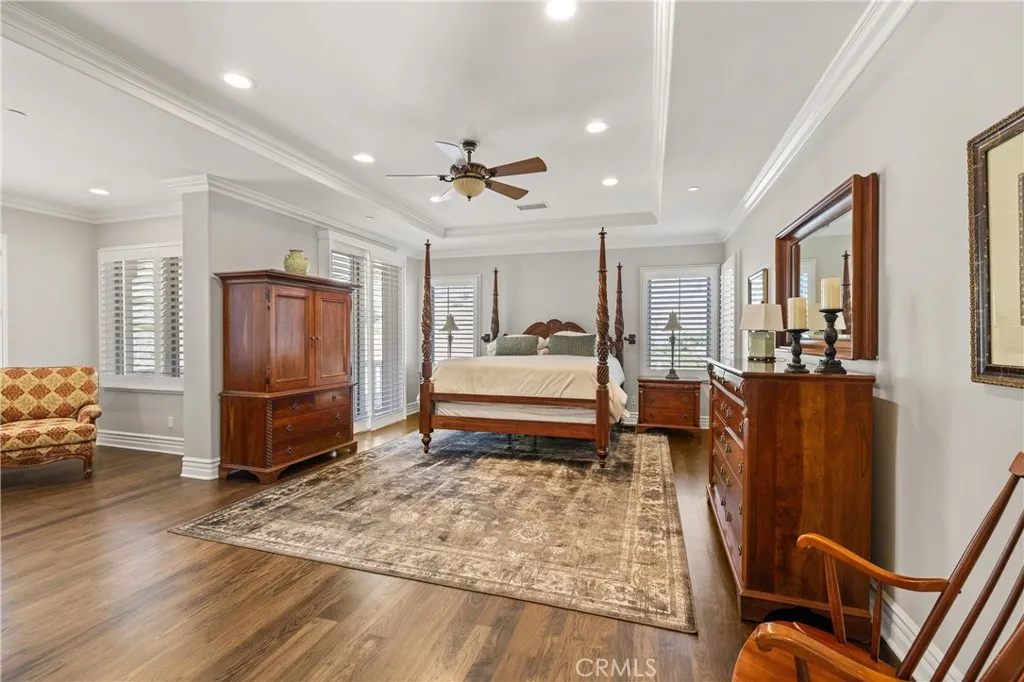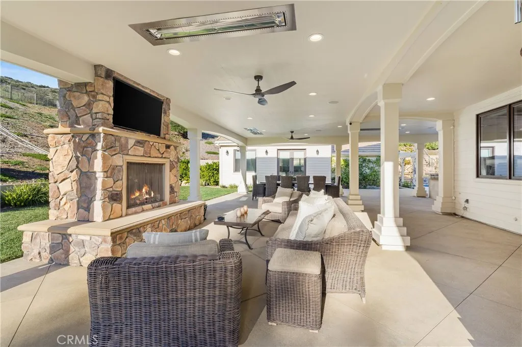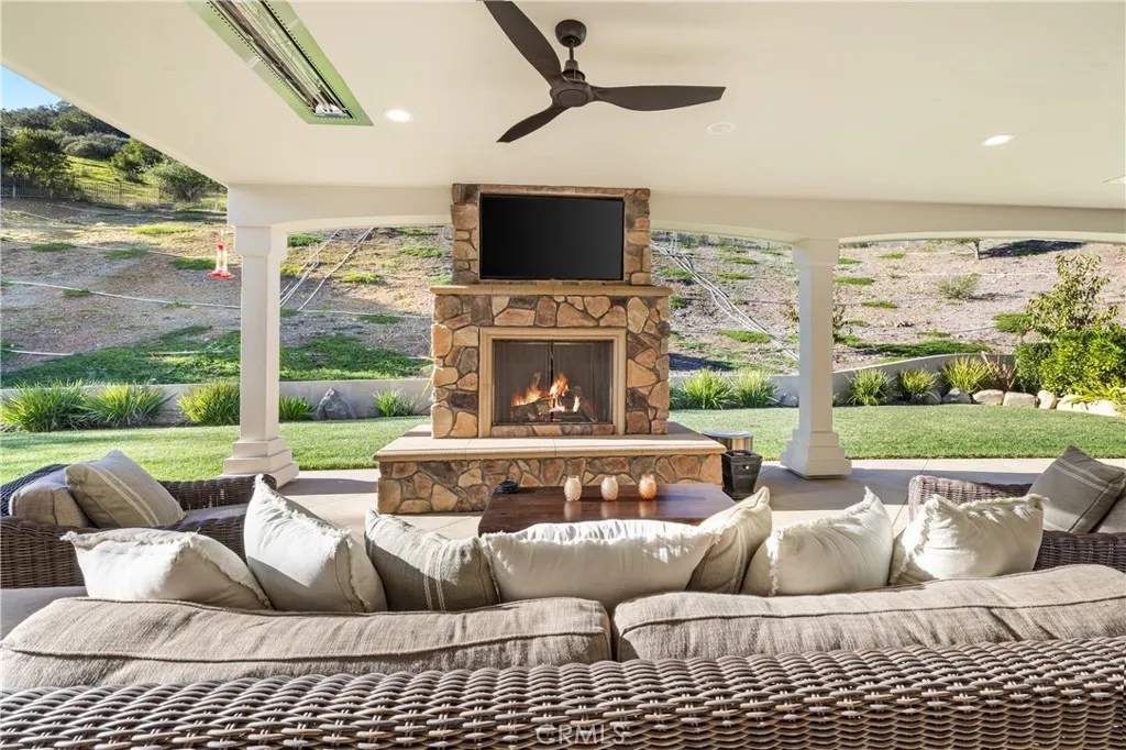 Nestled on one of the largest lots in Westlake Village, at 4.76 acres in the prestigious gated community of Hidden Valley Estates this property offers the ultimate in privacy and luxury. Located in the most private location in the neighborhood down a long driveway and surrounded by open space. Interior highlights include a beautiful grand entry, hardwood floors in most of the home, and custom window treatments throughout. There is a large family room with a fireplace that opens to a gourmet remodeled kitchen with a Viking 6-burner gas range and double oven, Subzero refrigerator, Thermador dishwasher, a butler's pantry with a wine refrigerator and a large walk-in pantry. Also, located on the first level is a downstairs en-suite bedroom, spacious laundry room, library/office w/ a fireplace and built-in bookshelves with a ladder, formal living room w/ a fireplace and a view of the courtyard with a glistening fountain & an impressive formal dining room. Upstairs is the luxurious primary en-suite complete with a fireplace, sitting area, walk-in closets and a balcony to enjoy the serene mountain views. There are 3 more spacious en-suite bedrooms, 2 of which were recently expanded, complete the upstairs. Outside is the perfect entertaining area with a spacious covered patio w/ a fireplace, a built-in barbeque and Green Egg, a sink & ice maker, a sparkling pool w/ a fun waterslide, waterfall, and spa. In addition, there is a recently added guest house and a 3000 bottle subterranean wine cellar. There is still more yard to enjoy with lots of open grassy area and hillside, there is room for a sports court, vineyard, orchard, the possibilities are endless. All this plus a 4-car garage, owned solar panels, and a whole house generator. This home is conveniently located close to restaurants, shopping, award-winning schools, and Sherwood, yet it feels like a peaceful & tranquil retreat. Truly, a one-of-a-kind property.