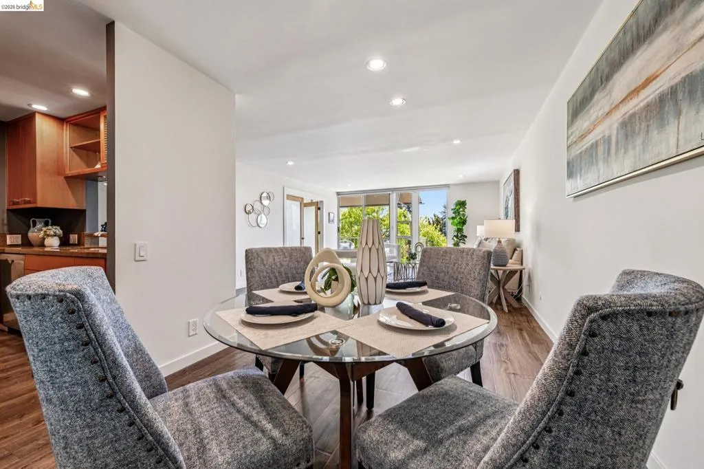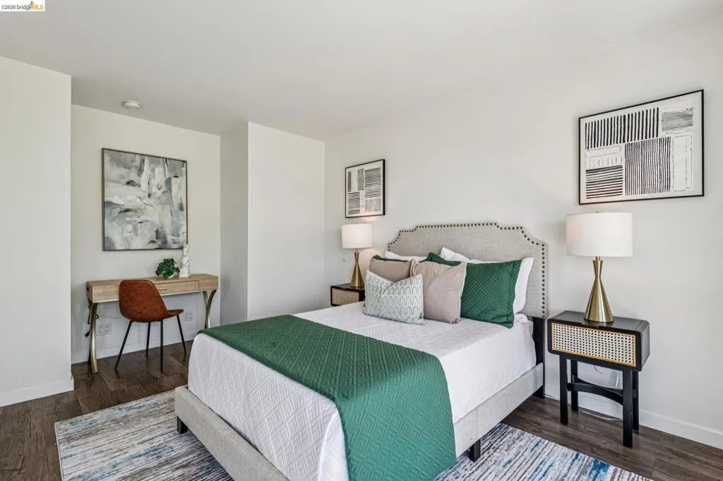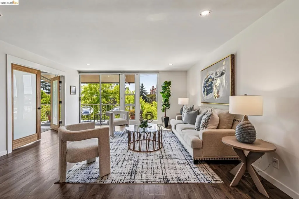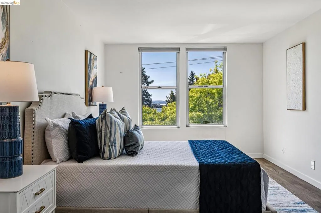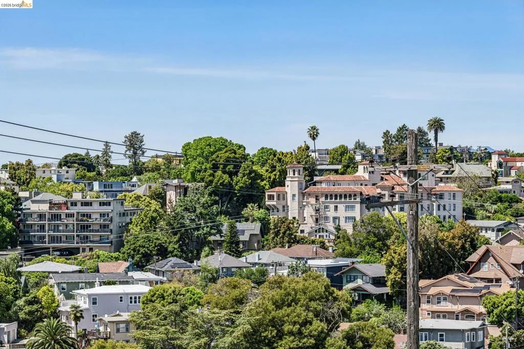 Close to everything and above it all, this bright, sunny top-floor condo is your tranquil retreat in the heart of one of Oakland's most vibrant and exciting neighborhoods. Move right in and enjoy contemporary finishes like granite countertops, wood cabinets, sleek modern flooring with radiant heat, and thoughtful upgrades like the motorized awning, which can either give you shade on your balcony or let the sun shine in. The spacious primary has a full ensuite and two big closets. The second bedroom has custom doors and could serve as an elegant home office. There is a private storage room right across the hall, indoor gated parking, sauna rooms, and a pool. Just steps from Lake Merritt, the Farmer's Market, and all the shopping and restaurants of Grand and Lakeshore. 96 Walkscore! Don’t miss this urban gem.