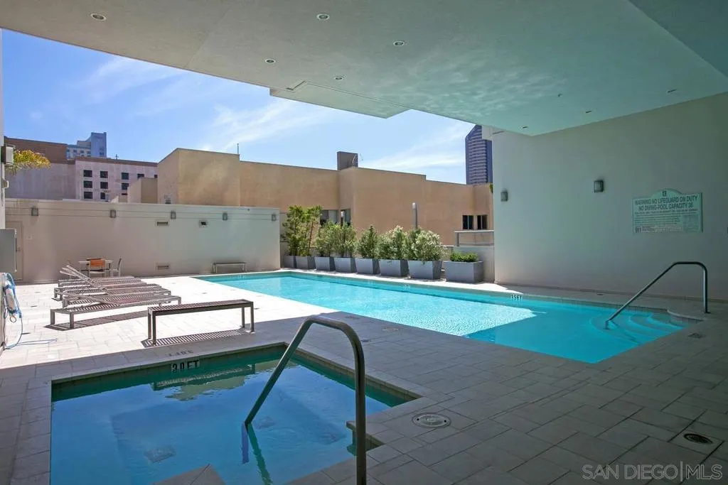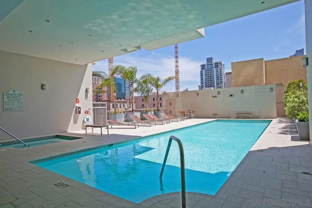 Modern, sophisticated, and dynamic! This studio is tastefully and expertly laid out. Complete with a separate dining nook by the full-sized kitchen as well as a comfortable queen bed that effortlessly pulls down from a well disguised shelf above the couch, take your space from sleeping to living in a snap. This unit is within the highly desired Alta building in the heart of the Gaslamp Quarter! Located close to Fifth Avenue, Gaslamp’s main thoroughfare, endless thrilling dining, drinking and socializing possibilities abound. Check out nearby rooftop sushi bar Lumi for tasty bites and stunning sunset views, or chomp into a juicy steak at Huntress on the ground floor of the same building. Additionally, you are just a few blocks away from Petco Park, San Diego Harbor, and the Coronado Island Ferry to the beach, and a few miles from Balboa Park and the San Diego Zoo. Amenities in this building include onsite management, secure underground parking, a fully equipped fitness center, 70-foot lap pool, spa, sundeck and a clubroom with a kitchen, wet bar, billiards and large LED TV.