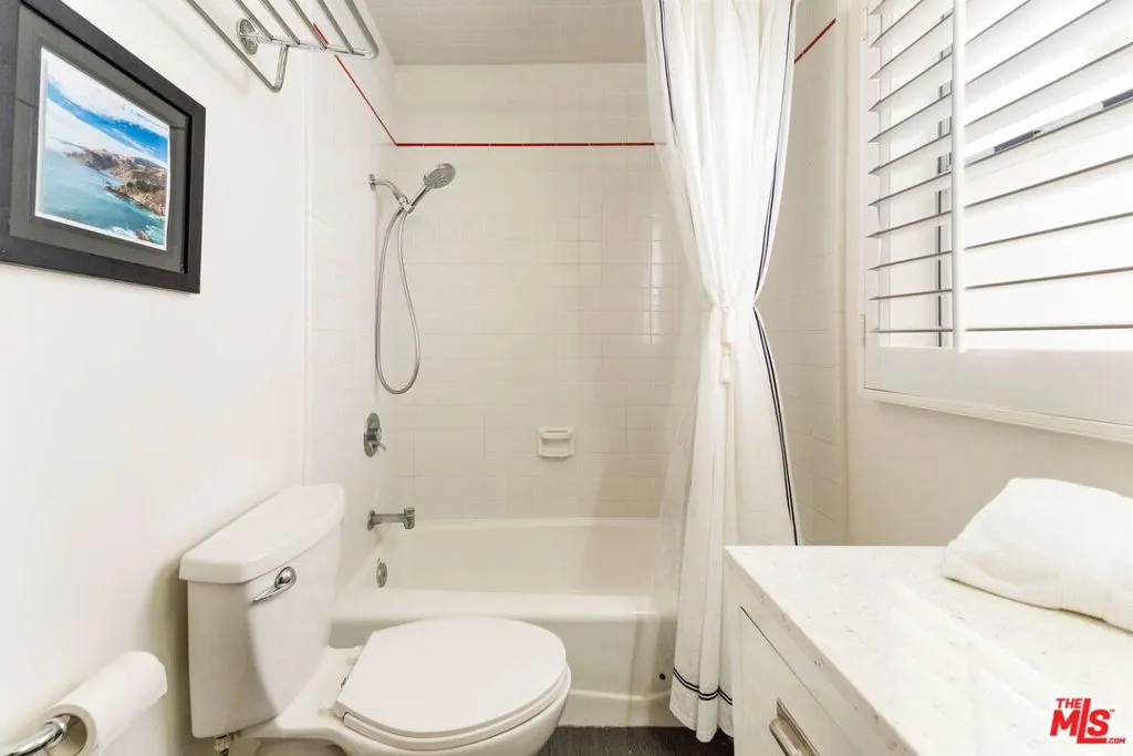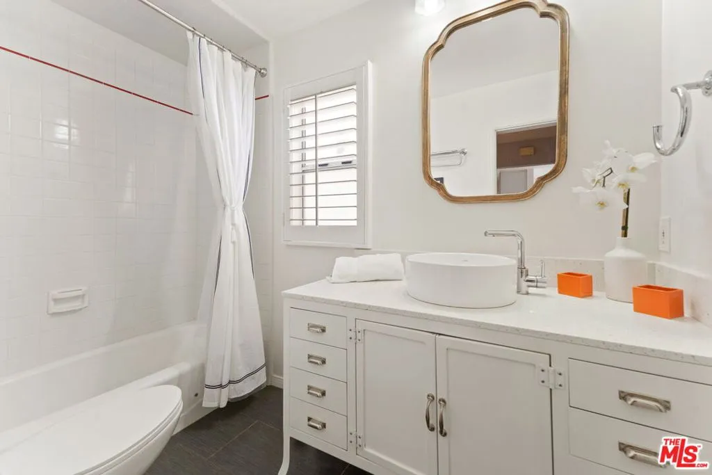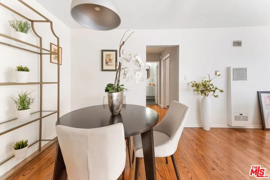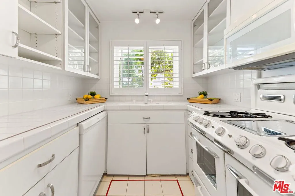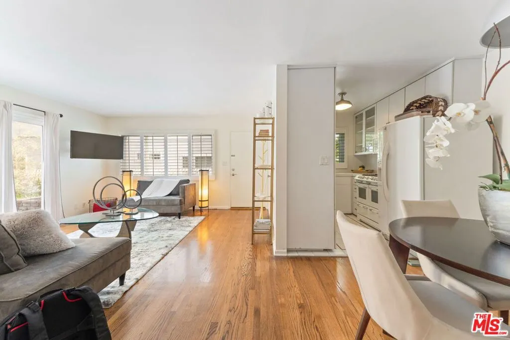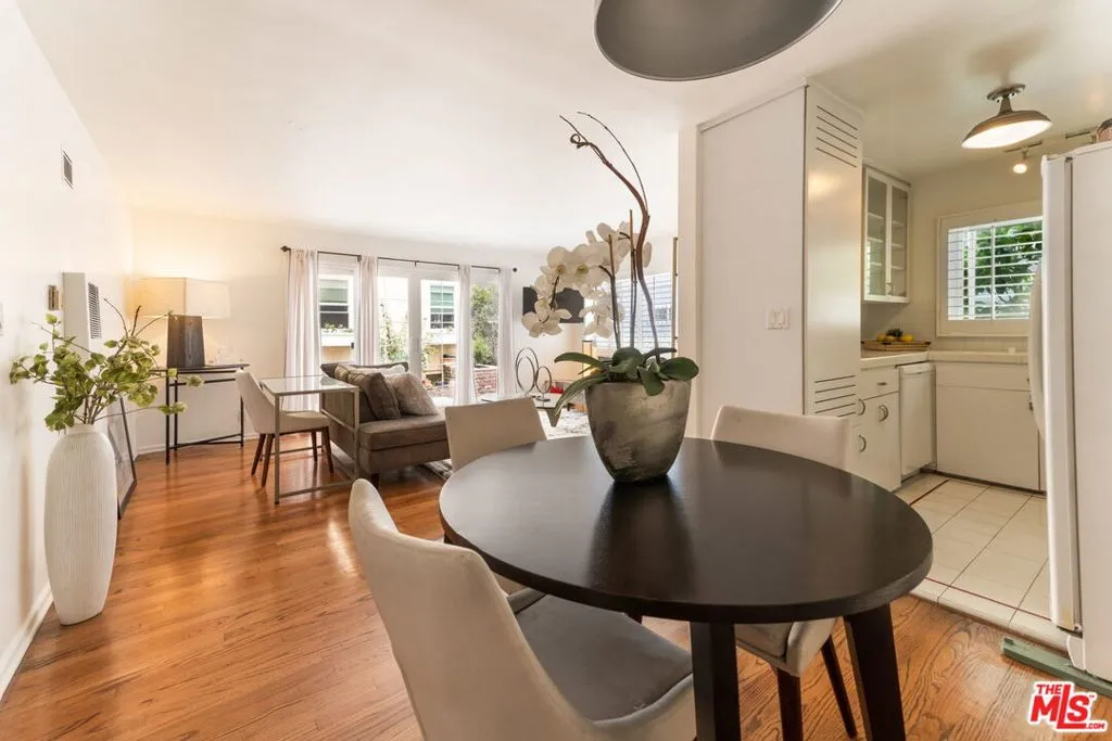 Light & Bright 1 bedroom condo with large patio off living room through double sliding glass doors which extends the living area to this unit. The kitchen has all the necessary appliance- O'Keefe & Merritt double oven stove, dishwasher, refrigerator & microwave. Off living area is extra storage/closet and area for office. Bedroom has lots of light but also has wooden shutters when needed to keep room peacefully dim. There is an extra private large storage room which goes with unit for bicycles, and other personal items. Community laundry room shared with 3 other units only. Off alley is 1 car parking area. Unit is located close to Wilshire where you will find Whole Foods, Target, restaurants, shopping and transportation. Easy to show.