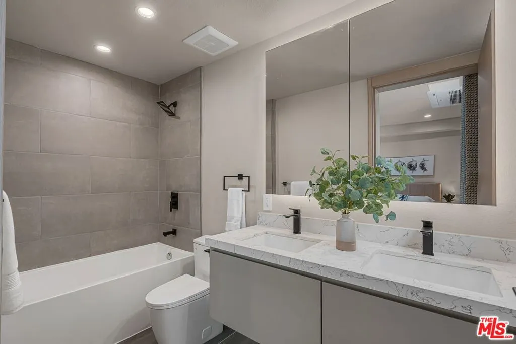 ****New Improved Pricing****This Beautifully Crafted Modern New Build at Plymouth Heights offers approximately 1,960 sq ft of refined, light-filled living in a private corner location. The three-level layout includes 3 generous bedrooms - each appointed with custom built-in closets and 3 1/2 baths, highlighted by a serene primary suite with jacuzzi tub. Custom warm earth-tone flooring and accents extend throughout the home, complementing the open living area that flows to a private patio and separate balcony. The kitchen features premium finishes with stainless steel refrigerator, stove and microwave. Complete with washer and dryer tucked into a dedicated laundry space. Designed with comfort in mind, this home includes sound-insulated construction, direct two-car garage access, EV and solar readiness, and available smart-home upgrades. Enjoy exceptional convenience in the City of Champions near the 405, 105, 110, and 5 freeways and world-class venues. Be the first to live in these homes, competitively priced to sell quickly.