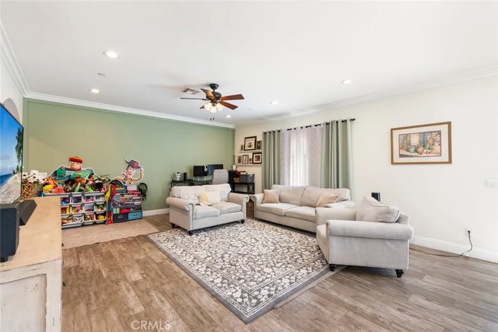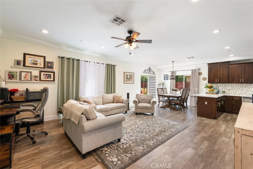 The details in this home truly standout! The wide isle entry boasts a great welcoming space. Beyond that, the home provides an exceptional open floor-plan and the beauty of natural light from large windows completes nearly every room. Framed in luxury crown molding throughout the entire home, adds the greatest eye-catching finishes. The oversize kitchen provides plenty of counter-space, cabinets and a walk-in pantry completes this area. Unique high ceilings really stand out as well. All 3 bedrooms are upstairs. It's impossible to miss the Primary Suite bedroom.. beyond generous in size and complete with a spacious bathroom and walk-in tiled shower. Don't lose sight of the hosting ability that this home provides!! A beautiful landscaped front-yard and a large back-yard that is prepped for your future enhancements to your liking. A desirable location close to shops, schools, eateries, and freeway access. A ideal opportunity you don't want to miss! Come see it all for yourself!