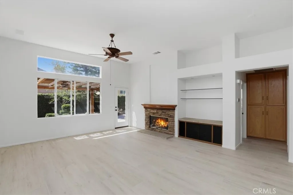 Tucked away on a quiet cul-de-sac in a highly desirable Eastvale community, this spacious single-story home offers a well-designed floor plan. The 4-bedroom, 2.5-bath home features a spacious and functional open layout ideal for both comfortable daily living and effortless entertaining. The interior includes expansive living and family rooms with high ceilings, a well-appointed kitchen with ample custom built in cabinetry, double oven, above range microwave, granite countertops, recessed lighting, and lots of counter space with an open flow that creates a bright, welcoming atmosphere throughout. Generously sized bedrooms provide flexibility for guests or a home office, while the primary suite serves as a private retreat complete with a cozy fireplace, an ensuite bath, walk in closet, jetted tub, stand in shower with custom tiled walls, double sink vanity, all providing a vast amount of space. Situated on a generous sized lot, the home offers a private backyard perfect for outdoor gatherings or relaxation, built in BBQ area, covered patio with ceiling fan, and lush green landscape. The attached multi-car garage provides ample parking and storage all with fresh paint and added epoxied floors. All paid large Solar panel system. Located within the Corona–Norco Unified School District, and conveniently close to parks, shopping, dining, and major commuter routes including the 91 and 15 freeways, this property blends space, comfort, and location in a sought-after suburban setting. This home is a must see!