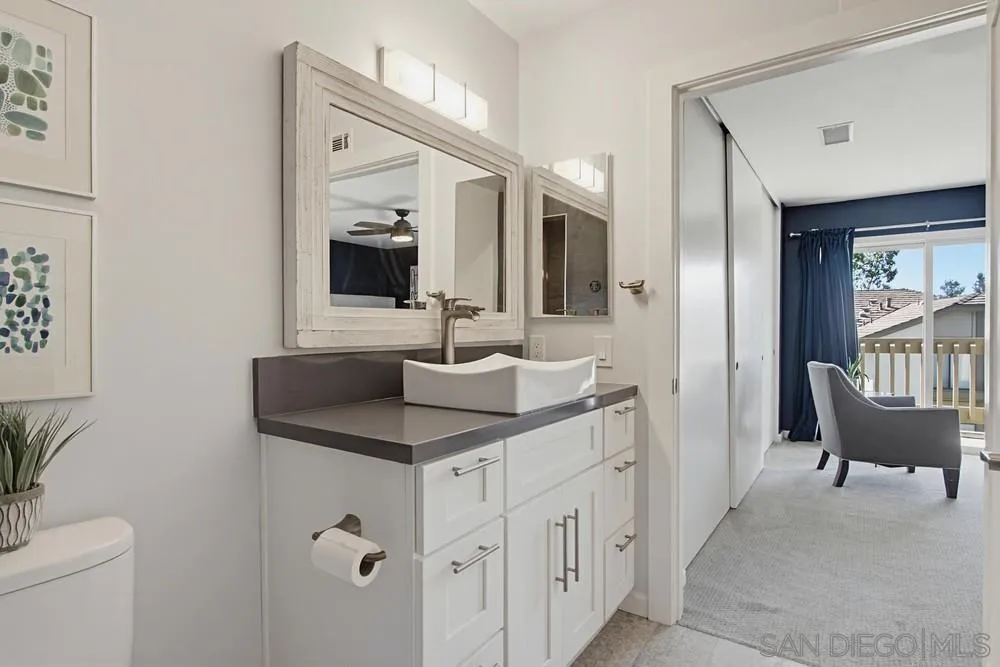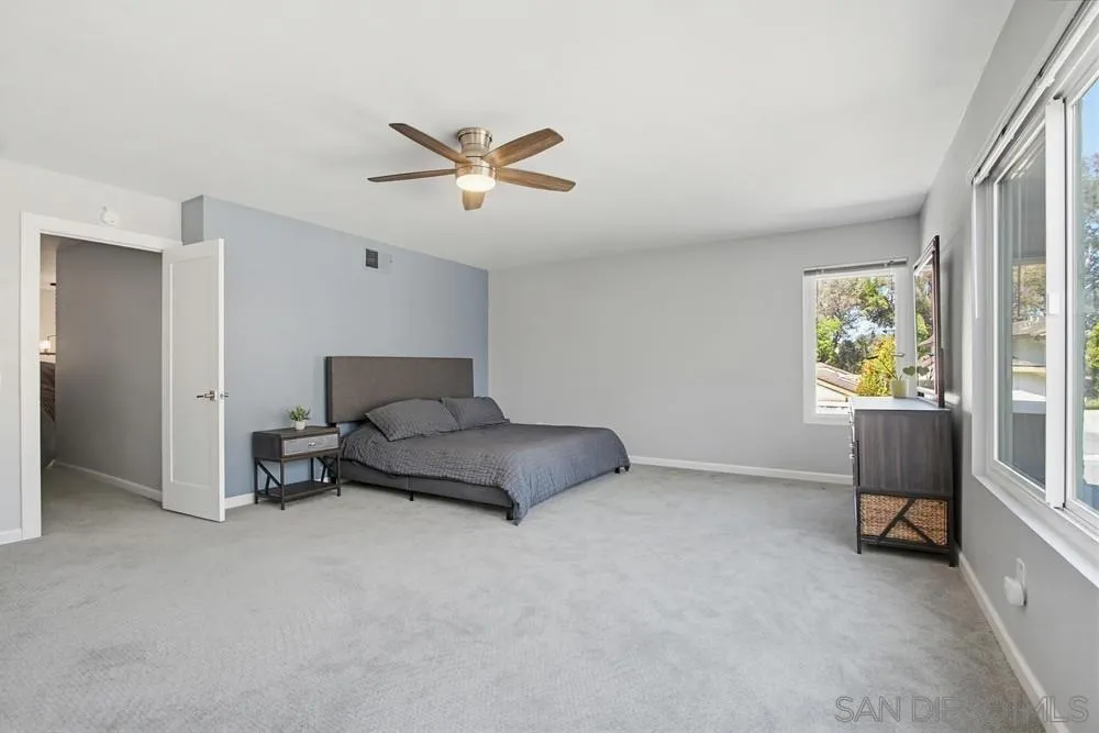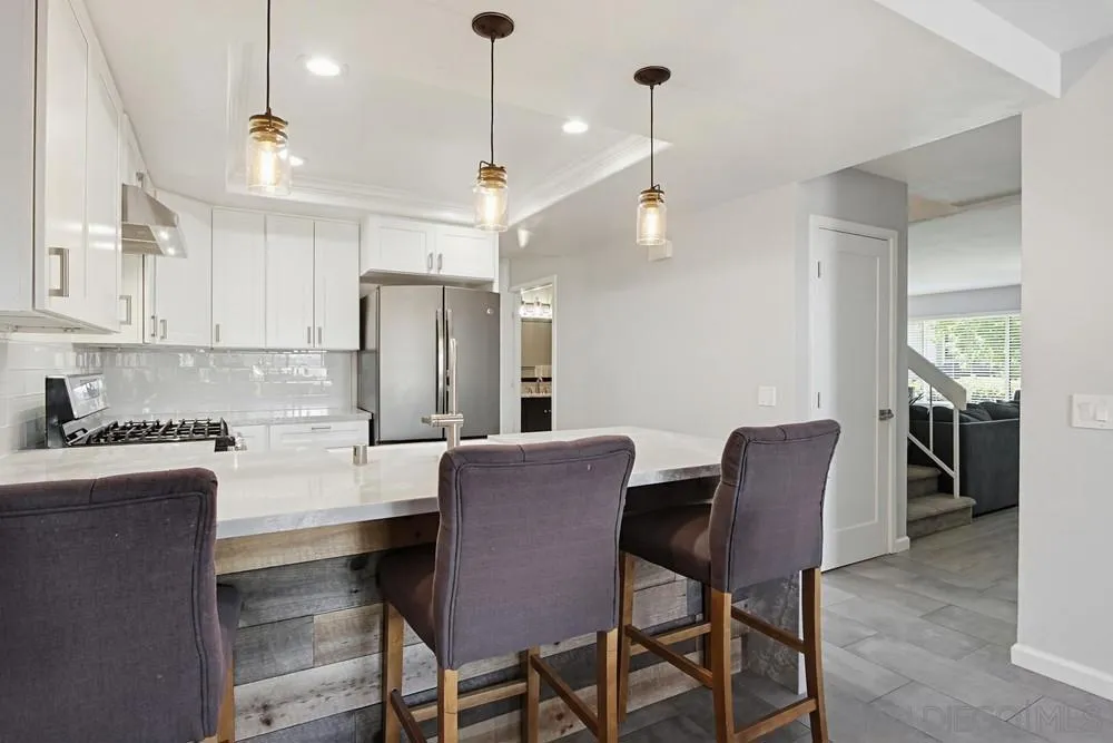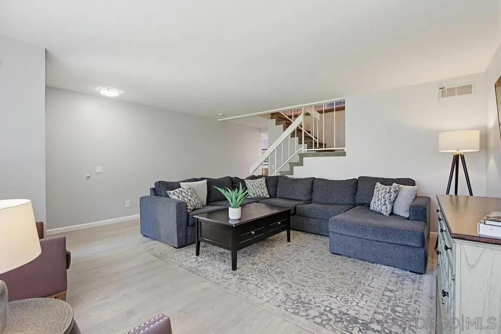 Discover one of the largest townhome floor plans in Tierrasanta. This turnkey 4 bedroom, 2.5 bath home offers 2,110 sq ft and is the lowest price per square foot in all of 92124. Flexible floor plan includes an oversized bedroom ideal for use as a bonus room, additional living space, or home office. The updated kitchen features quartz countertops, stainless steel appliances, recessed lighting, white shaker cabinetry, and bar seating. Living area includes luxury vinyl plank flooring and large windows providing natural light. Bathrooms have been fully updated with modern finishes. Additional upgrades include dual pane windows and HVAC system replaced within the last few years. The primary suite offers private balcony access and an en-suite bathroom. Enclosed patio off the kitchen creates indoor outdoor flow with space for seating, dining, or entertaining. The home offers a two car attached garage plus nearby guest and street parking. Located in the Villa Monterey community with amenities including 3 pools, tennis courts, basketball, clubhouse, walking trails, and RV parking. Close to Mission Trails Regional Park, Villa Monserate Park, shopping, dining, highly rated schools, and easy freeway access.