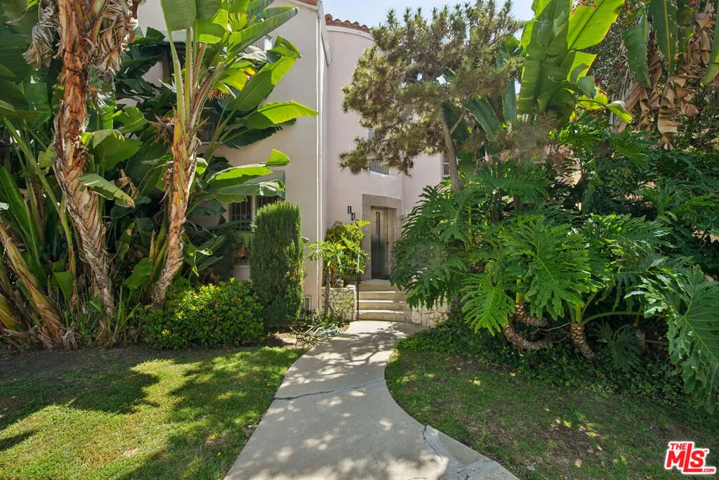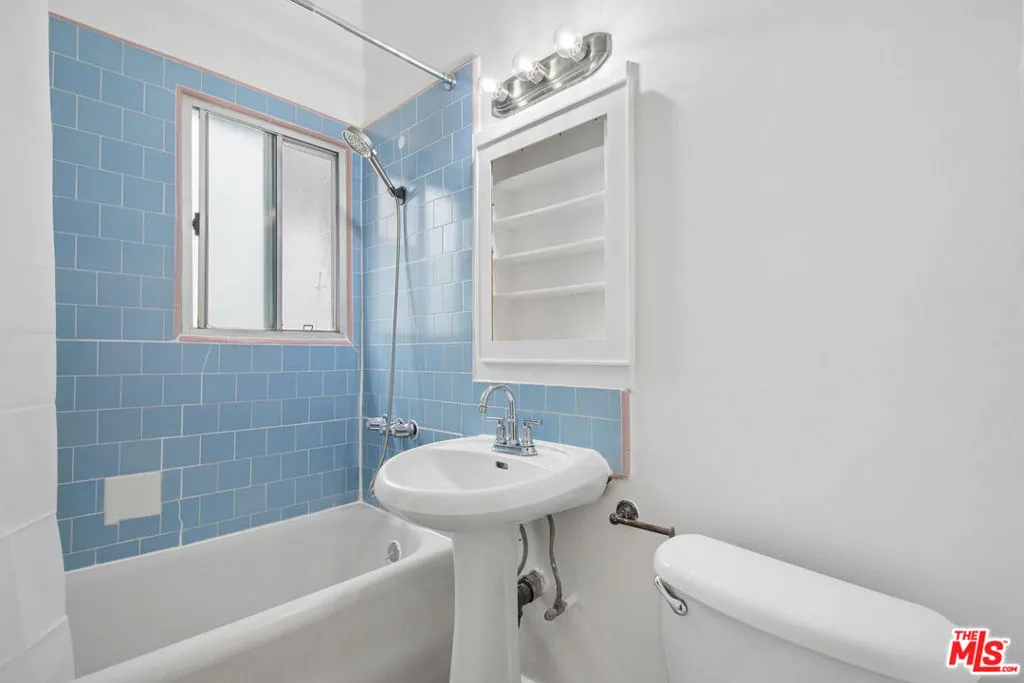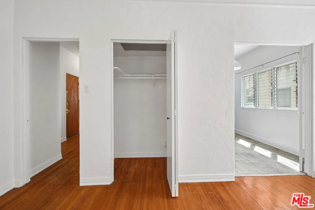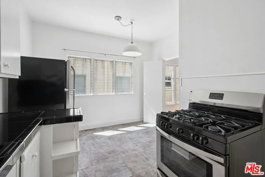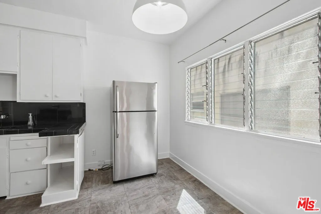 Spacious top-floor 1-bedroom, 1-bath unit in prime Beverly Hills featuring hardwood floors throughout, a large living room with abundant natural light, and wall A/C units. The kitchen includes white cabinetry, gas range, stainless steel refrigerator, and a separate dining area. Generously sized bedroom with mirrored closet doors and ceiling fan. Classic tile bathroom with full tub. On-site laundry. Pets allowed. Tenant pays gas, electric, and trash. Water included. Permit street parking available. Conveniently located near Rodeo Drive, Beverly Drive, Wilshire Blvd, shopping, dining, parks, and grocery stores. Square footage is approximate and not verified.