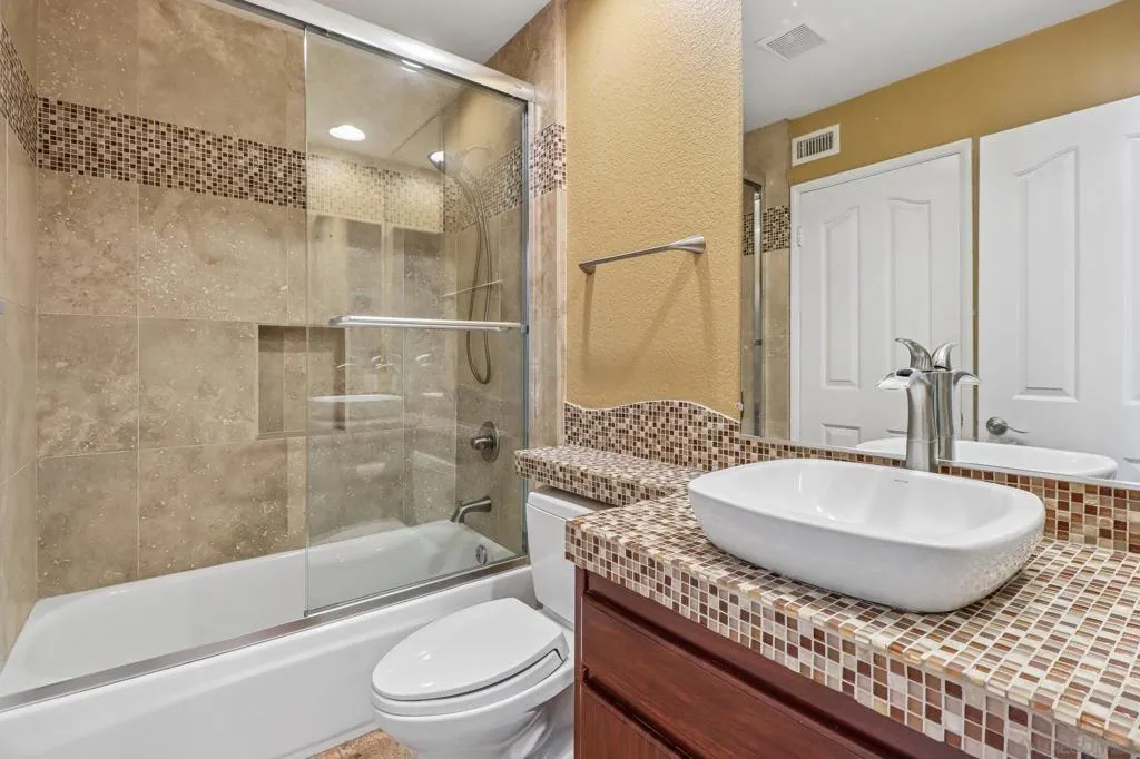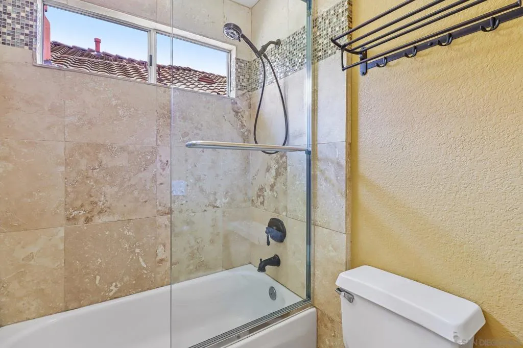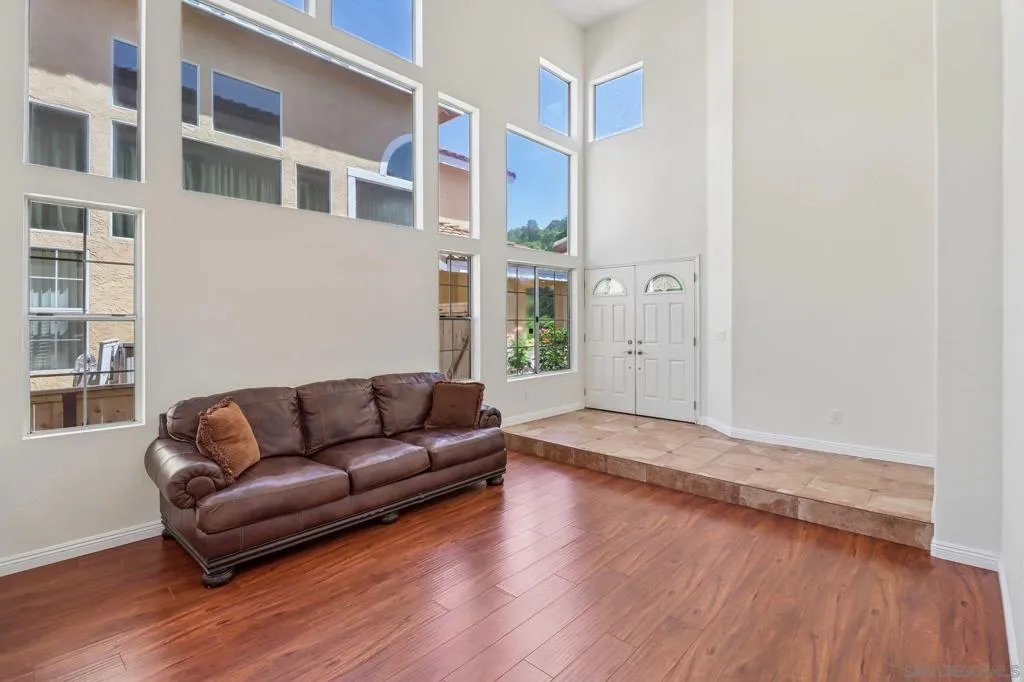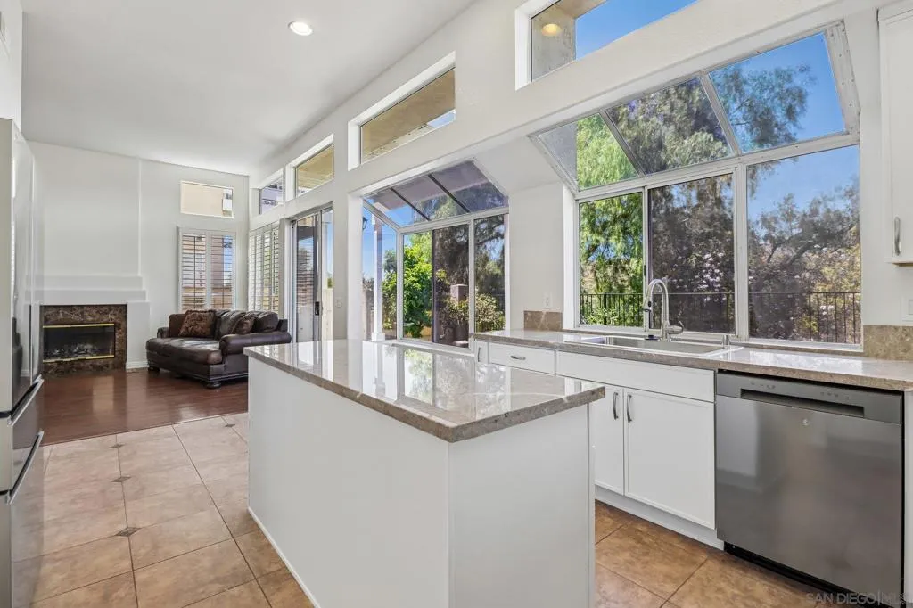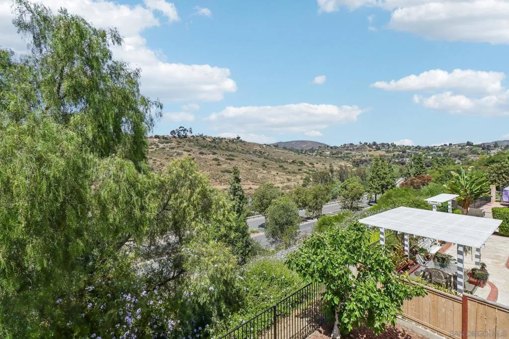 Tucked away on a street, 9432 Hito Ct offers privacy, natural light, and thoughtful upgrades in this spacious 5-bedroom, 3-bathroom San Diego home with 2,725 sq ft. Backing to open space with no neighbor directly behind or across the street, the property enjoys a rare sense of openness with panoramic hillside and mountain views. Inside, the open floor plan is filled with natural light from skylights and large windows, creating a bright, airy feel. The upgraded kitchen features custom Italian marble countertops from Northern Italy, soft-close cabinetry, a new stove, and a large walk-in pantry. Engineered wood flooring, fresh neutral paint, shutters throughout, and a cozy gas fireplace add warmth and style. The primary suite offers dual closets, a private balcony with views, and a spa-style bath with soaking tub, walk-in shower, and marble counters. Additional highlights include built-in storage, updated vanities with under-cabinet lighting, and an art niche at the entry. Enjoy a low-maintenance backyard with mature fruit trees (apple, Meyer lemon, & fig) and a patio beneath a new balcony, plus new fencing. Additional features include zoned A/C, a 3-car garage, and HOA amenities with pool, tennis courts, and green space. Ideally located near shopping, dining, and major commuter routes, this home offers a rare combination of views, privacy, and move-in ready comfort in San Diego.