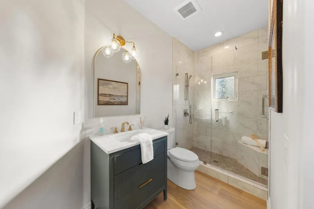 Beautifully upgraded Fire Mountain home with over $200,000 in improvements, offering enhanced privacy and seamless indoor-outdoor living. With no neighbors on either side, the property enjoys a rare sense of openness while maintaining a traditional neighborhood setting. The thoughtfully updated interior features new flooring throughout, complemented by fresh interior and exterior paint, modern lighting, and a new water heater. The refreshed kitchen blends style and function with quartz countertops and newer appliances, including an oven, refrigerator, and wine fridge—ideal for both everyday living and entertaining. Upstairs, the primary suite offers a relaxing retreat with a peek-a-boo ocean view, adding a touch of coastal charm. Step outside to your private backyard oasis, complete with a saltwater pool, spa, built-in BBQ, and outdoor fireplace—perfect for hosting or unwinding. A detached, finished structure provides flexible space for a home office, gym, or creative workspace. Additional highlights include a whole-house water filtration and descale system, a spacious lot with potential for RV or boat parking, or the opportunity to add an ADU.