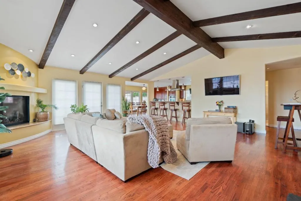 This is a 4 bedroom, 2 1/2 bth well designed home from the studs to the high beam ceiling, is situated in beautiful Seaside on the Monterey Peninsula.The residence spanning 2302 sq ft offering a comfortable and inviting atmosphere. The kitchen is a Chef's dream equipped with solid granite countertops, gas stove,oven,microwave,new dishwasher, new refrigerator, and garbage disposal, perfect for culinary creations. With hardwood flooring throughout the home exudes warmth and elegance.Cozy up by the fireplace,BBQ area for entertaining, enjoy the stone patios formal fountain,tile roof with outdoor bar and sink, tv. There is also a permitted additional room downstairs next to the garage with private bathroom, could be an office.Approved plans for a ADU and expansive parking approximately multiple cars or RV, Boat,Trailer. Sit quietly and enjoy the palm trees and decorated ambiance of this perfect paradise and casita for memorable parties with family and friends. Enjoy the Monterey Peninsula lifestyle and luxury world class Pebble Beach Golf courses amazing dining, beaches, Ft Ord trails and biking, beaches with incredible breathtaking sunsets.College students can thrive at CSUMB Monterey Bay.
