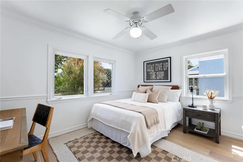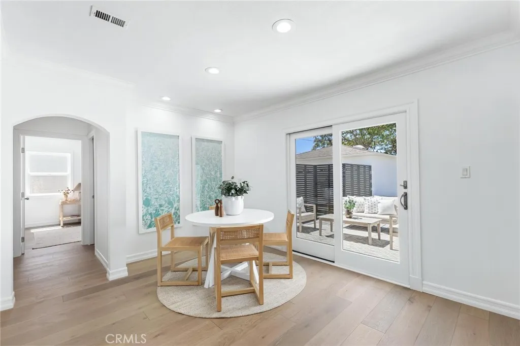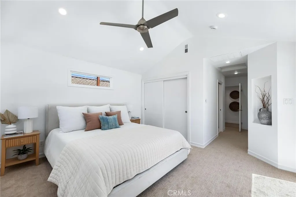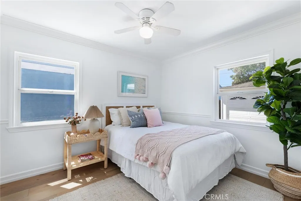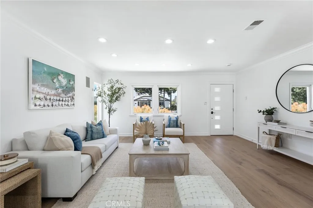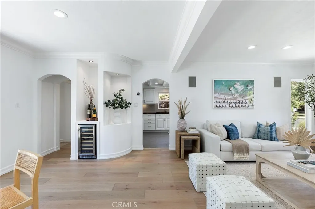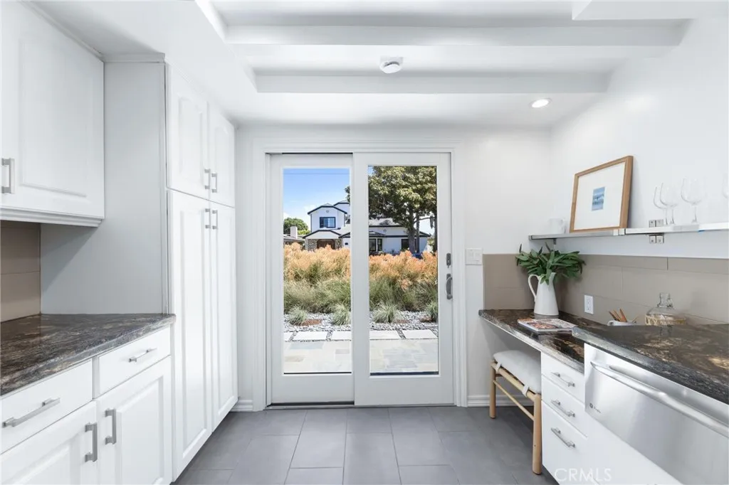 Set within the quiet residential TRW Tract of Redondo Beach, 3219 Gibson Place blends light-filled interiors, a functional layout, and generous outdoor space with a natural sense of flow throughout. The main living space is defined by a front wall of oversized windows, flooding the home with natural light and enhancing the open-concept design. Recessed lighting is integrated throughout, while a dining nook sits just adjacent, framed by sliding glass doors that open directly to the backyard deck, creating an effortless connection between interior and exterior living. A built-in wine fridge adds a refined touch for entertaining. The kitchen is both functional and inviting, featuring stainless steel appliances including an LG refrigerator, Bosch dishwasher, and a newly installed Thermador range. Sliding glass doors extend the space outward to a front patio, ideal for outdoor dining and morning coffee. Privately positioned at the rear of the home, the primary suite is thoughtfully set apart down its own hallway, creating a true sense of retreat. The space is filled with natural light and features vaulted ceilings, large dual closets with sliding doors, and direct access to the backyard through glass sliders. The en-suite bathroom is well-appointed with a dual vanity, large glass shower, and a skylight that brings in soft natural light. Down a separate hallway, two additional bedrooms offer flexibility for family, guests, or a home office. Each features built-in closet storage and abundant natural light, complemented by a full bathroom nearby. A separately enclosed laundry room is tucked along the hallway, offering added convenience and organization. Outdoors, the large backyard setting is designed for both relaxation and entertaining. A spacious deck provides space for lounging, while an additional stone patio with pergola creates a secondary outdoor space ideal for dining. A generous grassy lawn, mature landscaping, outdoor fountain, and a storage shed complete the space. At the front of the home, a tiered deck and patio create a welcoming arrival, offering a private, sun-filled setting framed by mature, privacy-enhancing landscaping. A long driveway leads to the detached two-car garage, with additional access along the side yard into the home. An ideal balance of space, privacy, and flow, 3219 Gibson Place captures the ease of coastal California living in the heart of Redondo Beach.