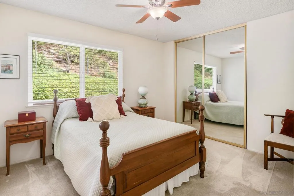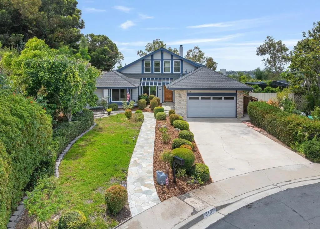 Truly unique Del Cerro opportunity tucked away at the end of a quiet cul-de-sac on an expansive 0.79-acre lot. A long, private driveway leads to this secluded home, complete with a charming pathway to the front door, creating a peaceful and tucked-away setting. The living room features soaring ceilings and a gas fireplace, overlooking a serene and tranquil backyard. A spacious kitchen opens seamlessly to the family room, while the formal dining room offers French doors that lead to the patio—perfect for indoor-outdoor living. The main level includes four bedrooms, with a private primary suite located on the second floor. The oversized backyard provides ample space for entertaining, relaxing, and play, while multiple decks capture beautiful westerly views. With endless possibilities, this property is ready to be customized to fit your vision. Located within the Hearst Elementary, Lewis Middle, and Patrick Henry High School boundaries. A great value and a must-see!