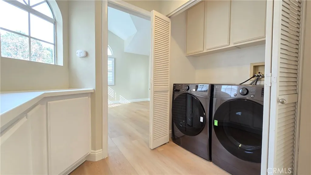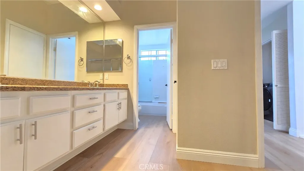Welcome to Las Palmas in the desirable Westpark community, where this upgraded 2-bedroom, 2.5-bath townhome features a practical dual-suite floor plan with each upstairs bedroom offering its own private ensuite. The light-filled interior showcases vaulted ceilings, recessed lighting, and a cozy gas fireplace, while a sliding glass door leads to a spacious private patio perfect for relaxing or entertaining. A brand-new skylight enhances the home with abundant natural light, new laminate flooring, complemented by upgraded wood shutters throughout. Recent updates include a new refrigerator, washer and dryer, over-the-range microwave, fresh interior paint, updated exterior lighting, and new landscaping, making this home truly move-in ready. Residents enjoy access to two community pools and spas, along with Westpark’s outstanding amenities, including parks, tree-lined walking paths, sports courts, playgrounds, picnic areas, and nearby shopping, all conveniently located near UCI with easy freeway access and just minutes from John Wayne Airport.