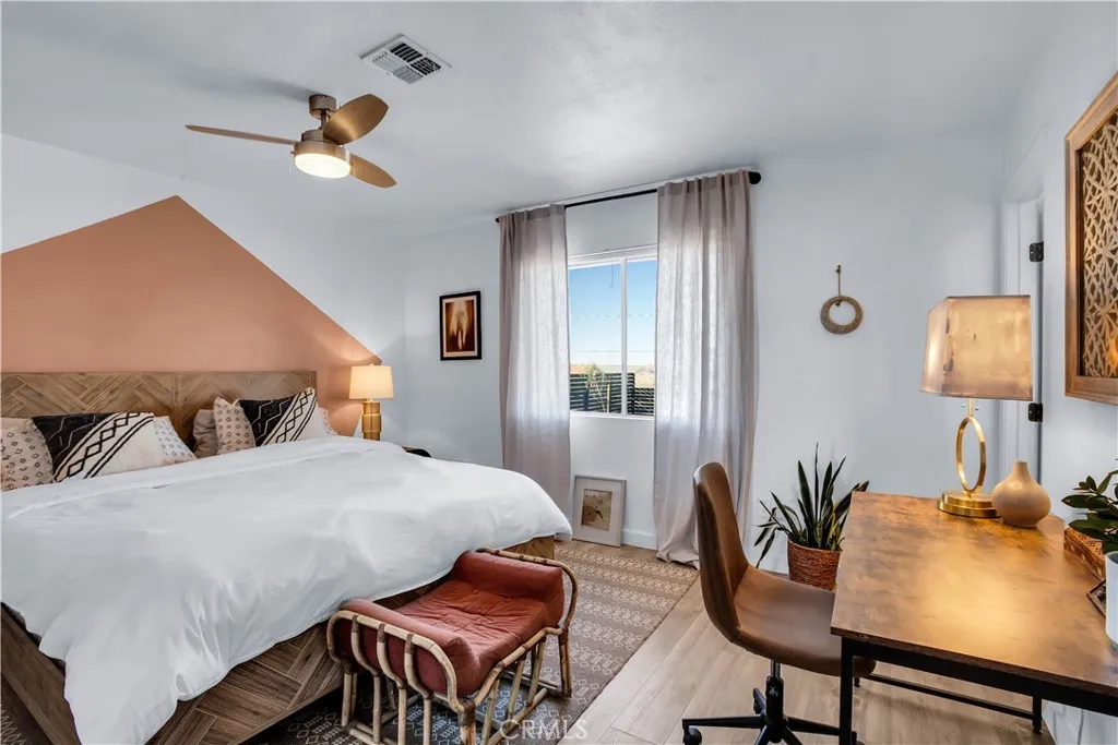 Escape to this beautifully situated 3-bedroom, 1.5-bathroom retreat nestled in the prestigious Upper Friendly Hills neighborhood. Set on a sprawling, fenced 0.41-acre lot, this home offers the perfect blend of modern comfort and rugged desert charm. The interior features an open-concept layout that invites natural light, while the convenience of an attached garage and gated entry provide both security and seamless access to your desert gear. Whether you are looking for a creative studio, a serene primary residence, or a high-potential weekend getaway, the expansive backyard serves as a private theater for world-class stargazing and breathtaking mountain vistas. Experience the ultimate Joshua Tree lifestyle with unparalleled proximity to the West Entrance of the National Park and the vibrant local culture of the Village. You are just minutes away from eclectic dining at the Joshua Tree Saloon and Crossroads Cafe, yet close enough to Yucca Valley for convenient shopping at major retailers. Families will appreciate the proximity to the highly-rated Friendly Hills Elementary, while travelers benefit from easy access to Highway 62 for smooth trips to Palm Springs or Los Angeles. This property isn't just a home; it’s a front-row seat to the magic of the high desert.