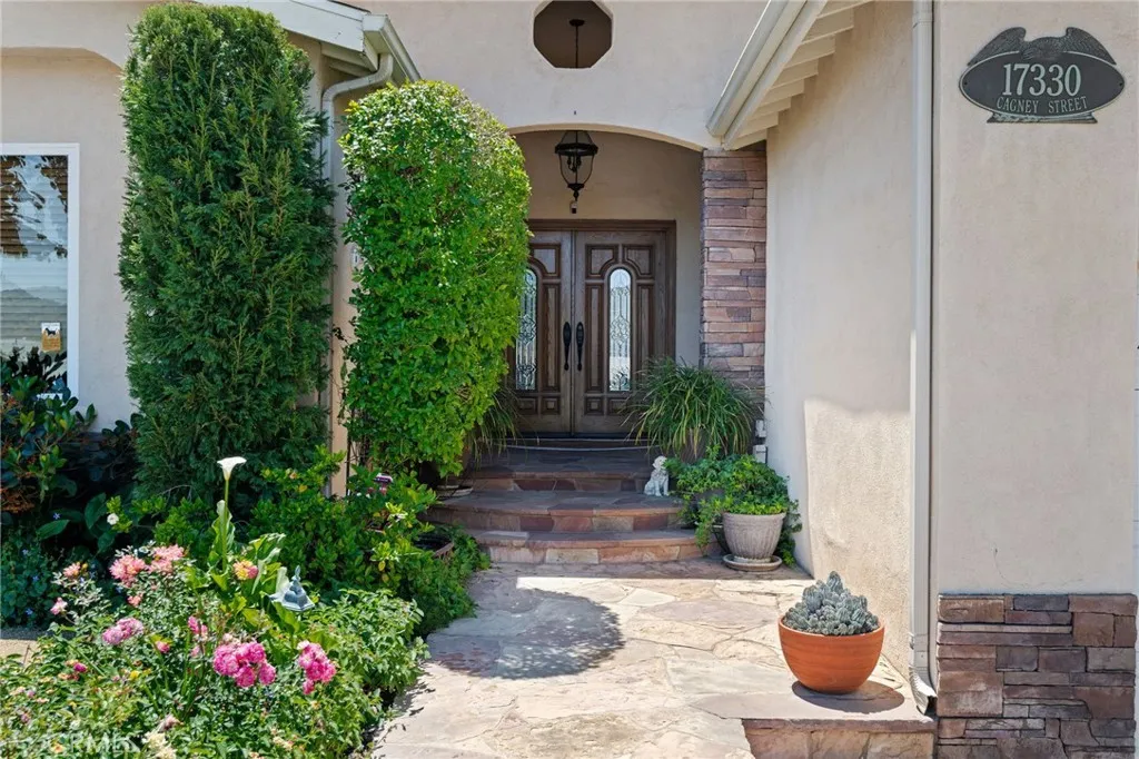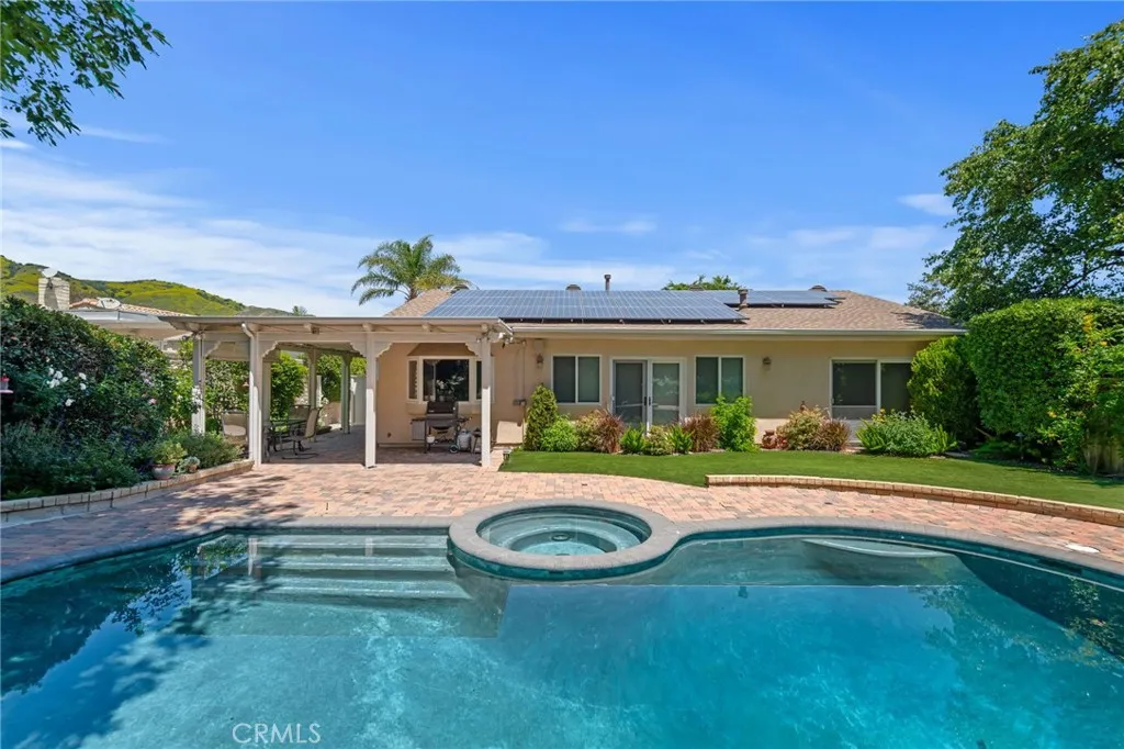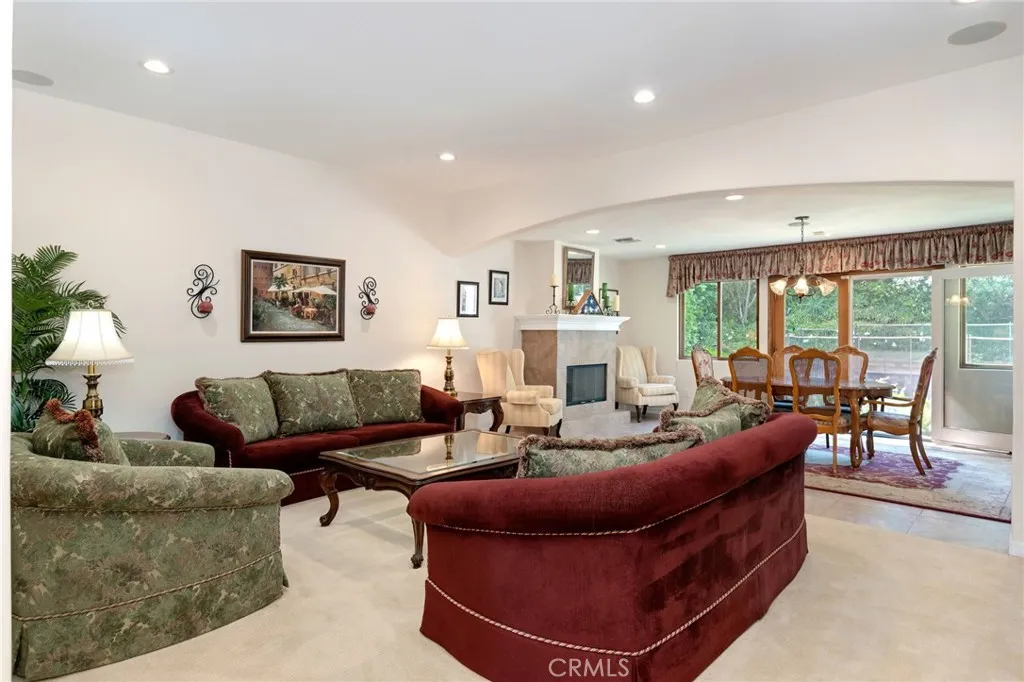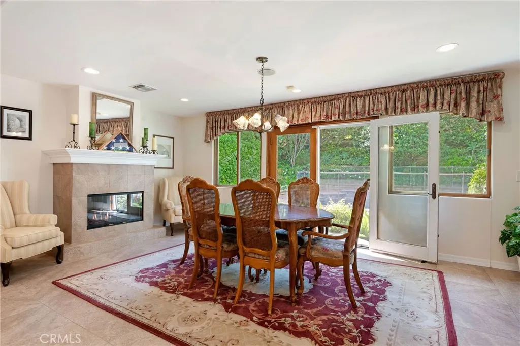 Situated in a prime Granada Hills location with gorgeous mountain views, this impeccably maintained single-story home offers a fantastic opportunity to enjoy comfort, space, and timeless features. The home boasts true pride of ownership. Inside and out the property has been thoughtfully cared for. Inside, volume ceilings with recessed lights create an open and airy feel, highlighted by a large elegant step-down living room. A spacious separate family room—also featuring its own fireplace—provides additional room for relaxing or entertaining. The kitchen is generously sized and appointed with bullnose granite countertops, a breakfast nook, offering both functionality and classic style. The formal dining room with tiled fireplace and french doors is ideal for gatherings and special occasions. The expanded primary suite serves as a private retreat, complete with a sitting area, a well-appointed bathroom featuring dual amenities including double sinks and a separate shower and soaking tub. Secondary bedrooms are generously sized, serviced by the full hallway bathroom includes double sinks and a shower/tub. Step outside to enjoy the backyard, where the pool and spa have been recently re-plastered, providing a refreshed setting for outdoor living and entertaining. Landscaping in the front and rear has been curated using drought resistant turf, DG, mature trees and pavers to compliment the residence. Adding convenience to the home is and in-door laundry room, child safety barrier pool fence and paid off solar panels. With its highly desirable layout, solid condition, and sought-after location, this home presents an exceptional opportunity to create decades of good memories.