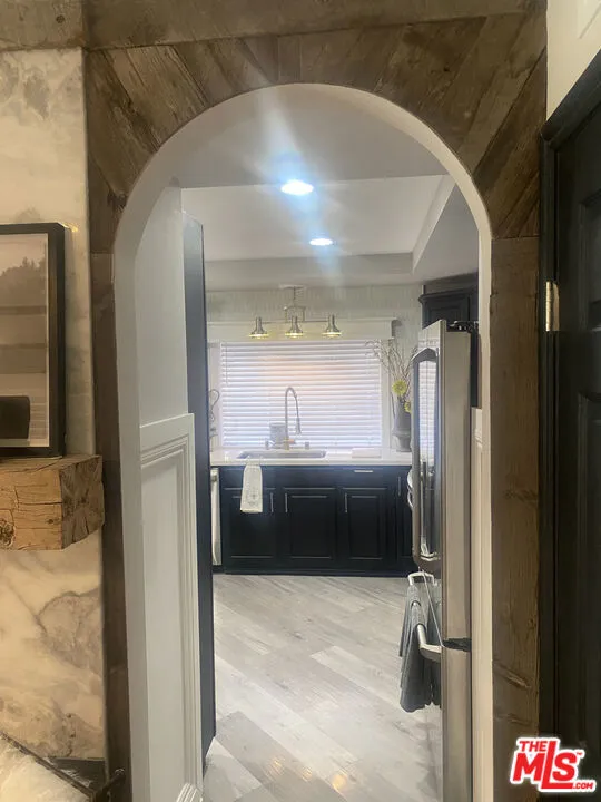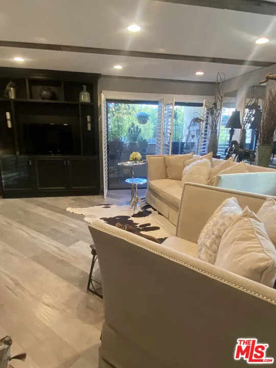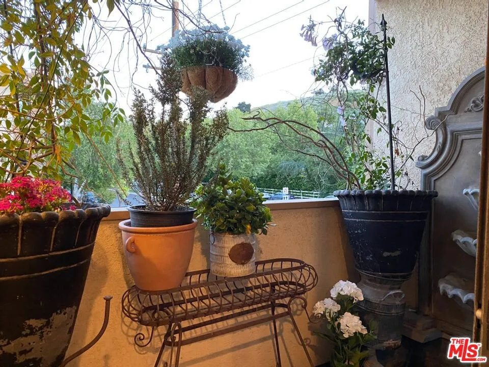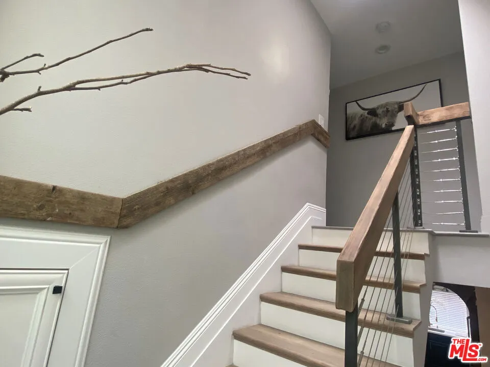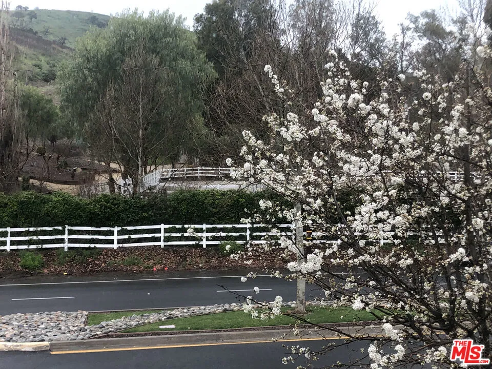A Rare Opportunity: Beautiful TURN-KEY Curated Contemporary Ranch Style, End-Unit, with Hillside and Pasture Views. Situated across from white-fenced private equestrian estate, this complete renovation, sits above street level, offering privacy with no shared walls (air-gap build), AND opportunities for horse views. Driven by a passion for design and local natural beauty and equestrian influence, this home is the result of inspired renovation, and well thought out selection and planning. By integrating/collecting materials like snow-faded reclaimed wood, the design brings the outdoors in. The quality of life is elevated by custom built-ins throughout, maximizing usage and everyday comfort. Entryway: 10-foot ceiling with reclaimed beams and a rustic iron chandelier create a warm welcome. Powder Room: Features a stone-top wooden vanity, floor-to-ceiling stone and marble, and new lighting. Stairways: Wood treads continue up to bedrooms, accented by cable and wood railings. Entering the living room at the top of the wood treads steps, a modern tempered glass safety panel opens the view. Main Living Area: Living Room: Blends modern design with warmth, showcasing a floor-to-ceiling marble and stone fireplace with a vintage beam mantle. Features commercial-grade, multi-tone wood laminate flooring installed on a diagonal in most spaces. Entertainment & Bar: Custom-built entertainment center and a separate wine bar offer both beauty and function. Lighting & Tech: New Lutron dimmer switches can create the perfect ambiance and lighting .Enjoy a tranquil, enclosed courtyard-style patio, offering a private oasis for container gardening or relaxation, with a beautiful breeze. Wall Detail: Semi-open concept living/dining walls feature six- 6ft beveled mirror panels surrounded by wainscoting to reflect light and maintain connection between rooms. Kitchen & Dining: Newly built-in 1/2 kitchen extension for maximized utility. New wood cabinetry with large soft-close drawer, a dedicated pantry, coffee station, and abundant storage. Newly created Dining Bar: Showcasing a solid, custom curved countertop, this conversational focal point serves as an ideal landing for food prep and socializing, with a view of the TV area while seated. Surfaces: Premium white with grey accents/quartzite, white marble backsplash tile/wall covering, and custom cornice trim. Coordinated Finishes: Stainless steel ranch sink with a matte gold sprayer faucet and matching accents for a cohesive mixed-metal look. Stairs up to Bedrooms feature reclaimed wood trim/hand sanded plaster wall, 20 ft ceilings and a skylight. Platform: Relax with coffee or a book ,where beautiful am light shines through a large custom trim window. The top floor: custom-built large linen cabinet with a soft-close drawer. Primary Suite: Cathedral vaulted ceilings, recessed lighting, art-deco crystal chandelier, and ranch shutters. Includes an 8ft tall wall closet with shoe accessory/shelving. Primary Ensuite: Deep soaker tub/shower, new marble-top vanity, and matte gold fixtures. Guest Bedrooms: Two additional bedrooms with chandeliers, mirrored closets, and attractive window coverings. Guest Bathroom: Features a walk-in shower with a custom niche and high-end materials consistent with the primary ensuite. Stairs to garage are tile to take the wear, and have a splash of spanish accent tile, to tie in the rustic entry. Garage & Safety: Attached 2-Car Garage: Electric door, outside key pad, lots of storage, shoe area/storage and bench, laundry hookups. Peace of Mind: Built-in security storage, Blink camera doorbell, and double-pane windows for noise reduction. Community: Access to a peaceful pool, spa, and clubhouse. Location: Minutes from local markets and hiking trails. Malibu's beaches and Pepperdine University are a scenic drive through the canyon. Education: Highly-regarded Las Virgenes School District. HOA- wifi, water use, maintained grounds, and structure maintenance/EQ insurance.