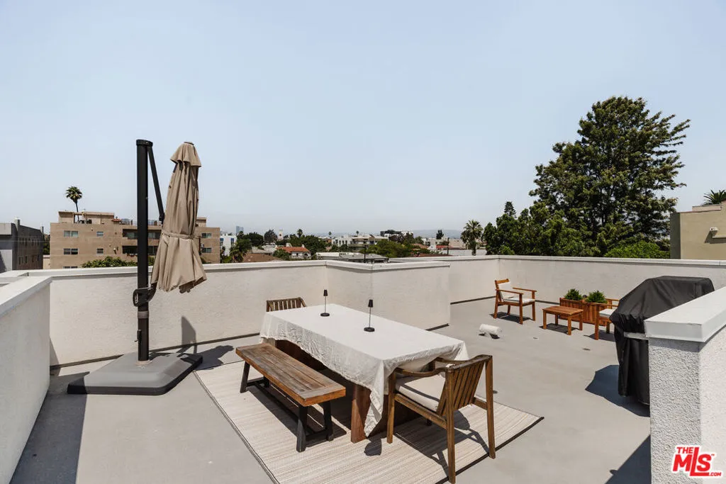 Light-filled and stylish, this 3-bedroom, 3-bath townhome with a rooftop deck offers contemporary comfort in the heart of Pico Robertson. Situated as an end unit with neighbors only on one side, the open-plan home offers 1,484-square-foot interiors featuring modern finishes, airy living spaces filled with natural light, and seamless flow throughout. At the heart of the home is the great room with balcony access -- ideal for savoring morning coffee or unwinding in the evening. Appointed for entertaining, a generous living room and dining area are open to the spacious kitchen. The kitchen is both functional and inviting, complete with a skylight, built-in stainless steel appliances, a long seated peninsula, ample pantry storage, and custom cabinetry. Each of the three bedrooms have generous closet space, including the sunlit primary suite with a walk-in closet and spa-style ensuite bathroom featuring dual vanities and a glass-enclosed shower with a bench seat. The versatile third bedroom, with its own private balcony, offers flexibility as a home office, gym, or media lounge. Additional conveniences include an in-unit washer/dryer and an attached two-car garage with direct access into the home. The crown jewel is the expansive private rooftop deck -- boasting sweeping city and mountain views with plenty of room to lounge, grill, or dine al fresco under the stars. Supremely positioned in Pico Robertson, this home places you moments from neighborhood favorites Pizzeria Sei and Factor's Famous Deli and all of the conveniences of Beverly Hills, plus easy access to the rest of Los Angeles via the 10 Freeway.