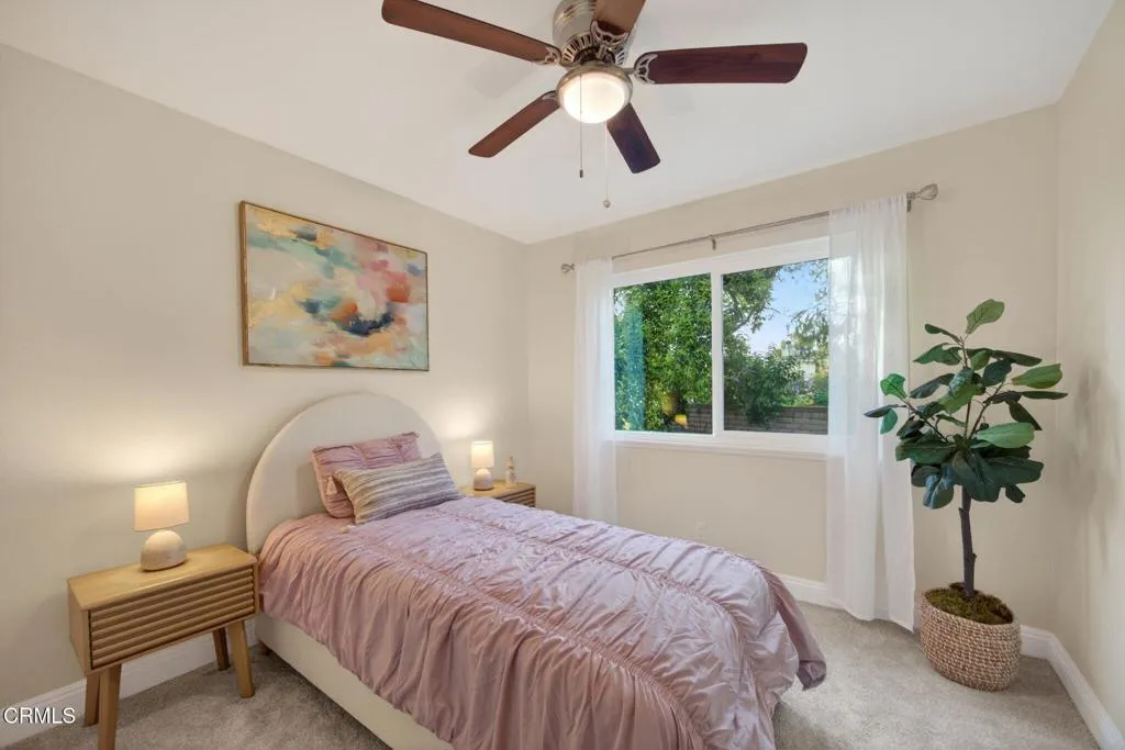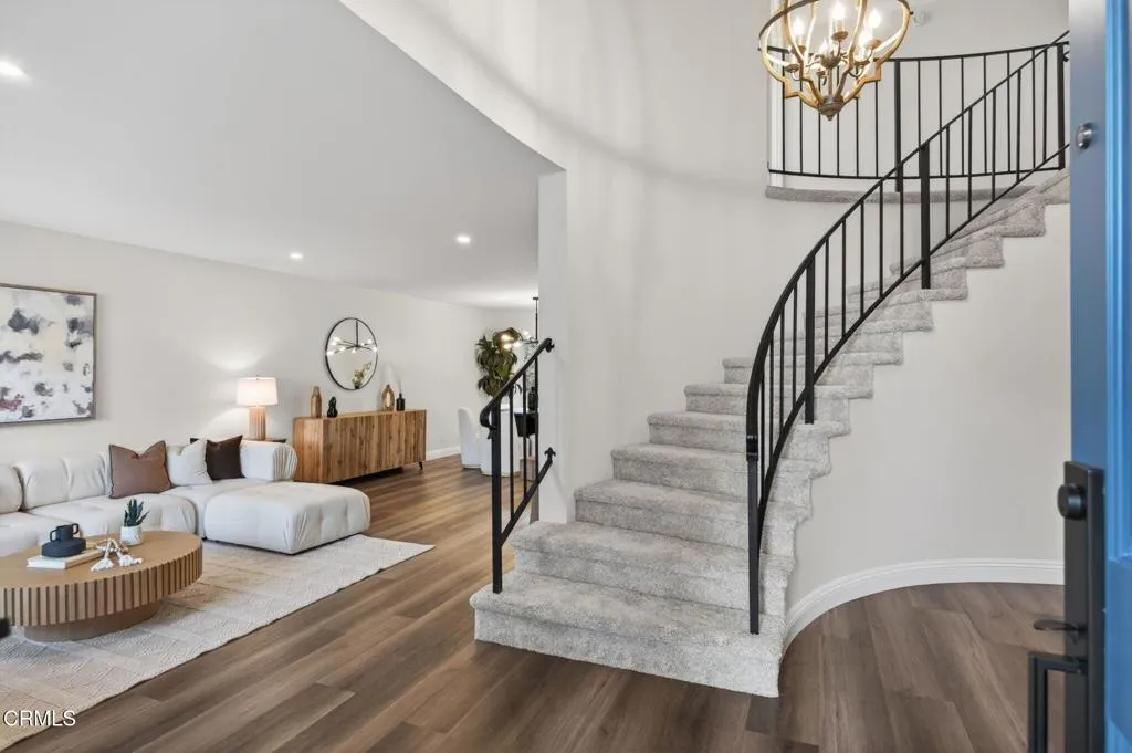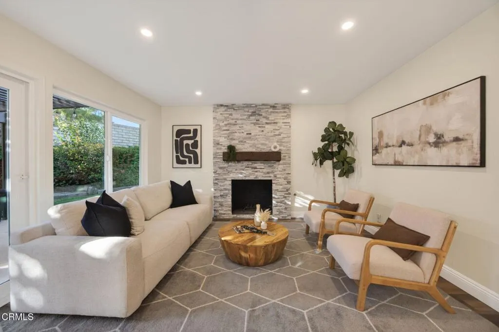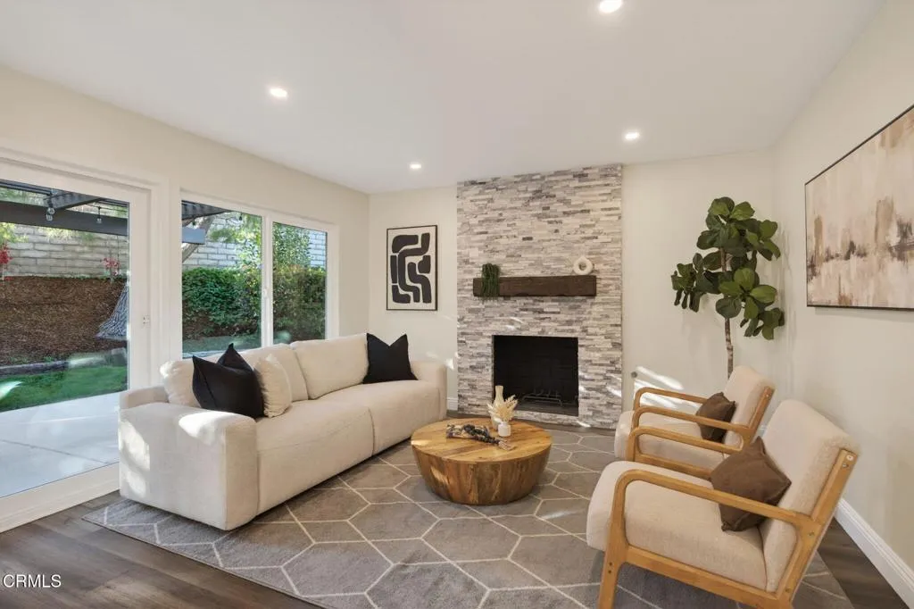 Welcome to 3267 Gem Circle, a beautifully updated home nestled on a quiet cul-de-sac in one of Simi Valley's most sought-after neighborhoods! Offering 5 bedrooms, 2.5 bathrooms, and over 2,300 sq. ft. of living space, this home has been thoughtfully crafted throughout and is truly move-in ready! The main level of the home has separate living/family room areas, a bedroom & half bath, and an open concept kitchen. The kitchen is absolutely gorgeous and features Shaker style cabinets, granite countertops, Herringbone style tile backsplash, double ovens, and large center island with breakfast bar! Head upstairs and you'll find the 4 additional bedrooms, including a very spacious primary suite! It comes complete with a MASSIVE walk-in closet as well as your very private balcony - the perfect spot for morning coffee or an evening unwind! All 3 of the home's bathrooms were previously updated and the primary bath has dual sinks, Carrera marble countertops, and a custom tiled shower. Additional highlights of the home include BRAND NEW carpet, central heat & AC, dual pane windows & sliders, designer light fixtures, stacked stone fireplace, luxury vinyl plank floors, and fresh paint throughout! The interior of the home flows seamlessly in to the beautifully landscaped & private backyard, designed for both relaxing and entertaining. Enjoy a covered patio, firepit area, and mature trees (including a producing orange tree)...all in an expansive & serene setting! The front courtyard adds wonderful curb appeal and a warm welcome for guests. The oversized 3-car garage (with EV plug) and a large concrete driveway (redone in 2024) provide ample parking. The location is ideal with shopping, parks, freeway access, hiking trails, and top rated schools all nearby. No Mello Roos or HOA! This one won't last long so don't miss the opportunity to make it yours!