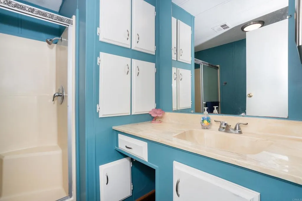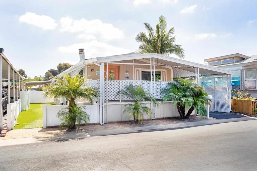 Fantastic 2 bedroom 2 bath manufactured home with a WOW outdoor space! The front porch entrance brings you into the living room with a vaulted ceiling & fireplace. The kitchen has stainless steel appliances, a breakfast nook & wood laminate flooring. Light & bright dining room with a built-in hutch. Laundry room with nice storage. Washer & Dryer are included too. Dual pane windows. Great outdoor space surrounded by newer white vinyl fencing. Central Air. Tough Shed. Space rent is $503.80. Guest parking is right across the street - so convenient! The community is west of the 5 freeway. Close to shopping & the beach too!