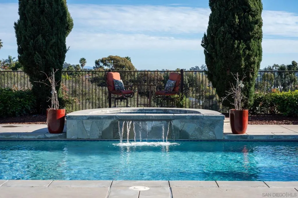 Rare Hilltop Compound in The Ranch at Carlsbad Featuring Two Fully Independent Homes! Opportunities like this rarely come to market in The Ranch at Carlsbad. This private single-level estate offers two fully independent residences plus a separate pool and game pavilion, creating a flexible layout ideal for multi-generational living, extended family, guests, or private work-from-home space. The approximately 3,800 sq ft main residence features three bedrooms and spacious living areas designed for comfortable everyday living and entertaining. The 1,400 sq ft second residence includes two bedrooms, a full kitchen with high-end appliances, laundry, independent climate control, and a private street entrance. Wider doorways throughout the second residence provide enhanced accessibility. At the center of the property is a 900 sq ft game and pool pavilion with its own entrance, bathroom, bar-style kitchenette, and independent climate control, allowing the space to function as an entertainment pavilion, third guest suite, or additional living quarters. The hacienda-style architecture creates exceptional privacy around the pool, California Room, and outdoor entertaining areas, while the south-facing hilltop orientation captures beautiful natural light and scenic sunrise and sunset views. Additional highlights include a custom 1,000-bottle temperature-controlled wine cellar and tasting room. Located in The Ranch at Carlsbad, residents enjoy scenic walking trails and walking distance to top-rated schoolsincluding Olivenhain Pioneer Elementary, Diegueño Middle School, and La Costa