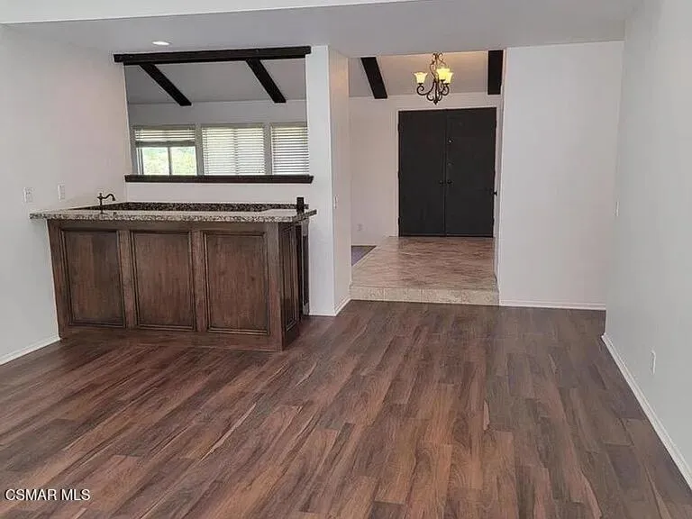 Welcome to this beautifully updated single-story home in a prime Agoura Hills location. Offering 4 bedrooms and 2 bathrooms, this residence features a desirable open and functional floor plan with quality upgrades throughout. Upon entry, you are greeted by a travertine stone foyer that leads into an inviting living room with vaulted, open-beamed ceilings and seamless flow into the formal dining area.The home showcases wood-like solid flooring and recessed LED lighting throughout. The updated kitchen is open and well-appointed with stainless steel appliances, including a dishwasher, microwave, and gas range, along with granite countertops and a charming bay window overlooking the backyard. The kitchen opens to a spacious and light-filled family room complete with a wet bar--ideal for both everyday living and entertaining.The primary suite offers two closets, a double vanity, and a private en-suite bathroom. Both bathrooms have been tastefully remodeled with modern finishes. Additional highlights include a two-car attached garage with ample storage, as well as a washer, dryer, and secondary refrigerator.Ideally located within the highly sought-after Las Virgenes Unified School District and just moments from shopping, dining, parks, and scenic hiking trails, this home offers the perfect blend of comfort, style, and convenience.