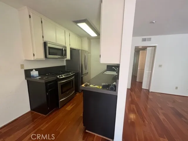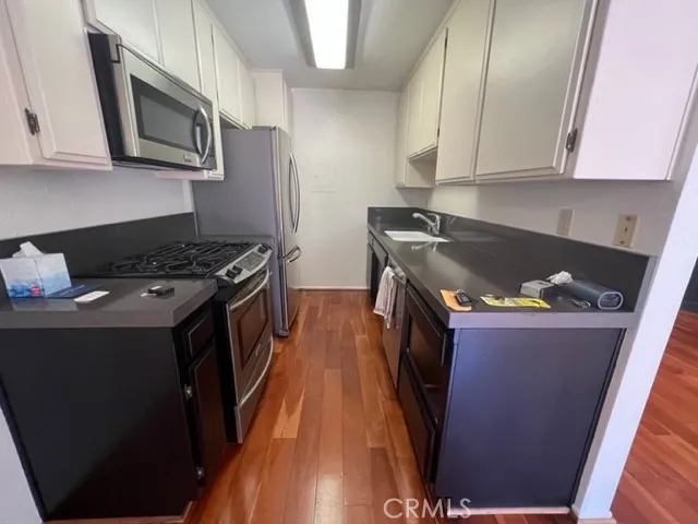 Surprisingly spacious 2-bedroom 2 bathroom condo in a safe and secure fully gated complex, close to the beach! This home features wood floors throughout, and carpet in the bedrooms. The kitchen comes with a fridge, gas oven range, built-in microwave, along with a WASHER AND DRYER INCLUDED in the hallway, and two parking spots with storage in a gated underground parking structure below. Fireplace in the living room. This is perfect for a young couple focusing on their career or starting a new family (using the 2nd bedroom for an office or for the kid's room). This is a very small apartment gated complex. Unit is ground level labeled #16 next to the front door, very easy to find once you enter into the building's courtyard. Two parking spots with storage in a gated underground parking structure below.