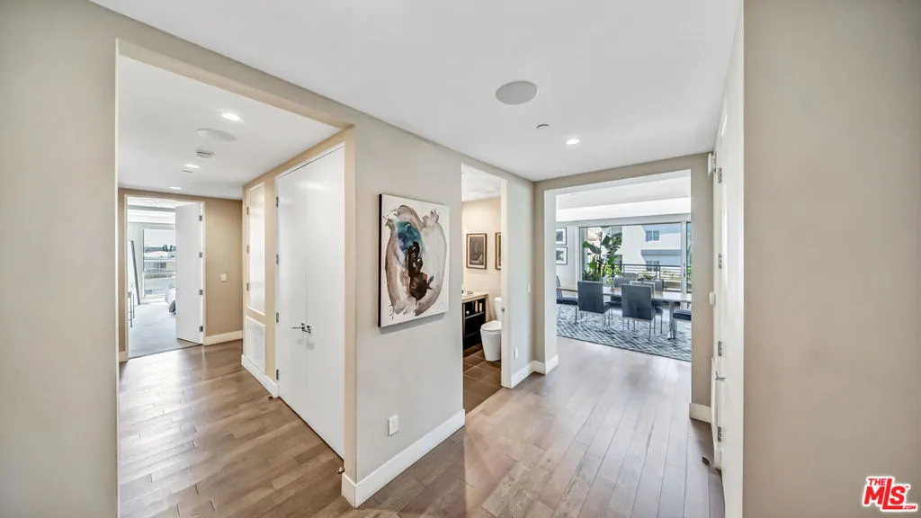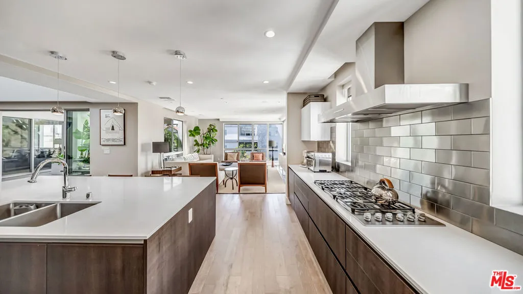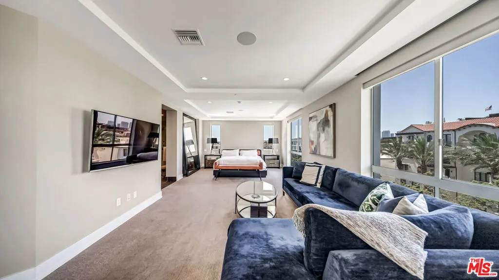 Welcome to elevated luxury living in the heart of Beverly Hills. This expansive top-floor Penthouse offers 3 bedrooms and 4 bathrooms, plus a den, bathed in natural light and finished with exquisite custom hardwood floors throughout. Designed for a modern, sophisticated lifestyle, the open concept floor plan seamlessly blends living, dining, and entertaining spaces. A stunning chef's kitchen anchors the home, featuring an oversized island, breakfast bar, Miele appliances, and a generous walk-in pantry. Floor-to-ceiling windows frame breathtaking, panoramic views, creating a dramatic yet inviting backdrop for both everyday living and unforgettable entertaining. The luxurious primary suite is a true private retreat, offering a serene escape with a spa-inspired en-suite bath complete with a soaking tub, separate shower, and an expansive designer walk-in closet. As a rare top-floor Penthouse, the residence is crowned by a private rooftop deck with a Jacuzzi, where sweeping city views set the stage for sunset evenings and elevated outdoor living.Enjoy the ultimate in convenience and security with direct elevator access, three side-by-side parking spaces, and a dedicated storage unit. Residents also benefit from exclusive amenities including a state-of-the-art fitness center, business center, and 24/7 doorman and concierge service. Ideally located just moments from Rodeo Drive's world class shopping and Beverly Hills' finest dining, this is a rare opportunity to experience the pinnacle of luxury penthouse living where every detail is thoughtfully curated for comfort, style, and sophistication.
