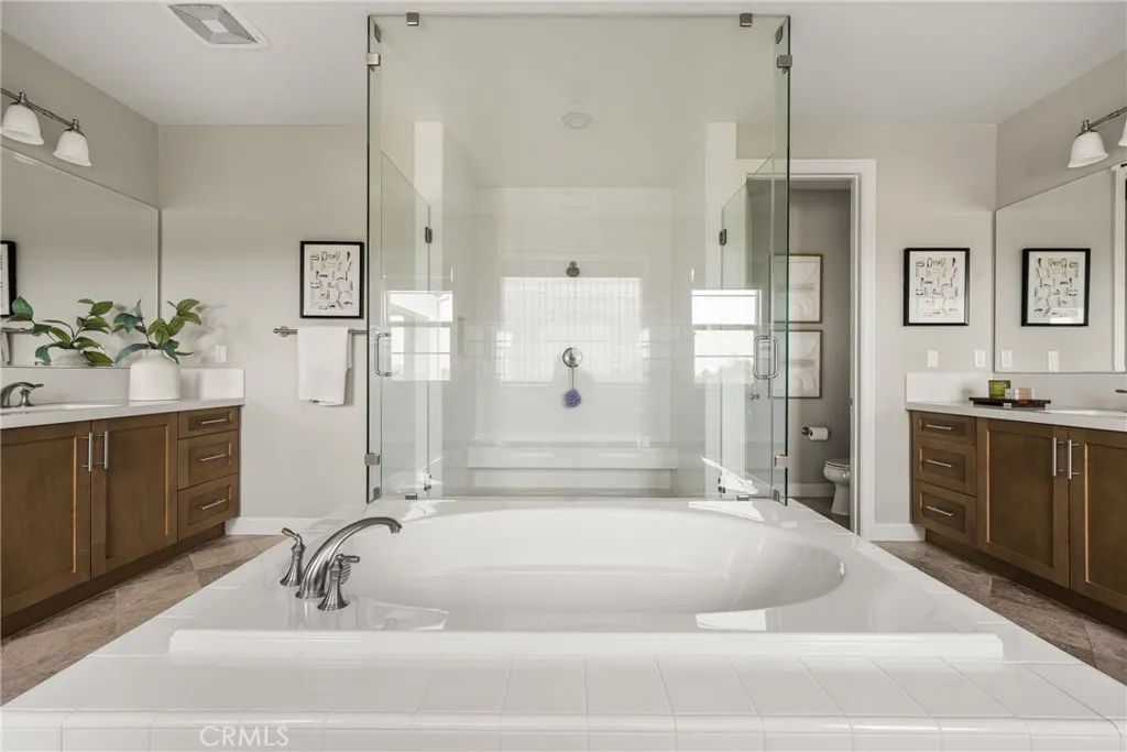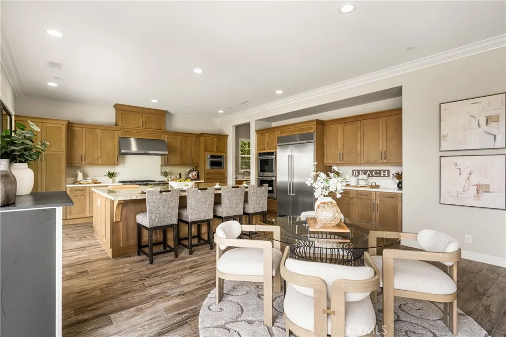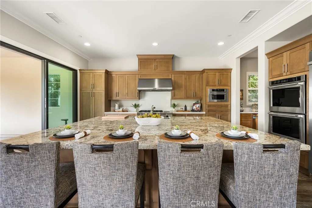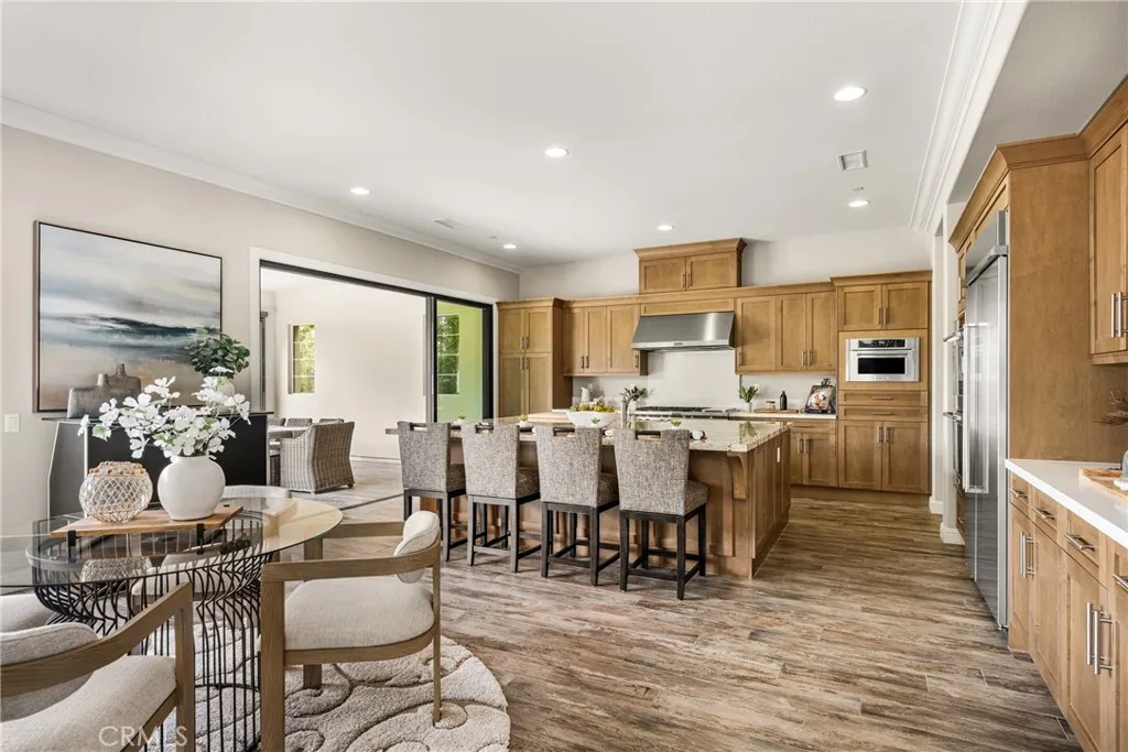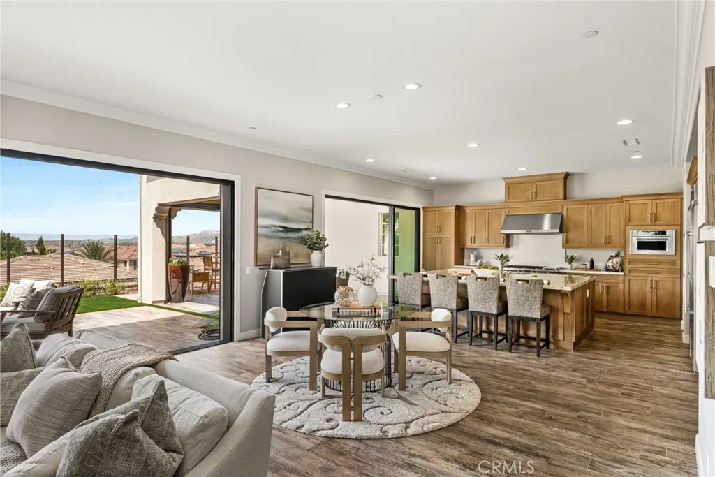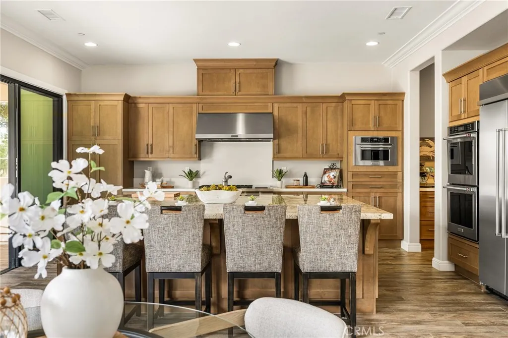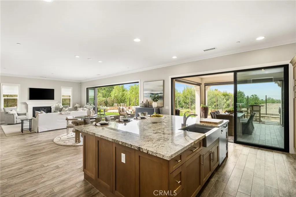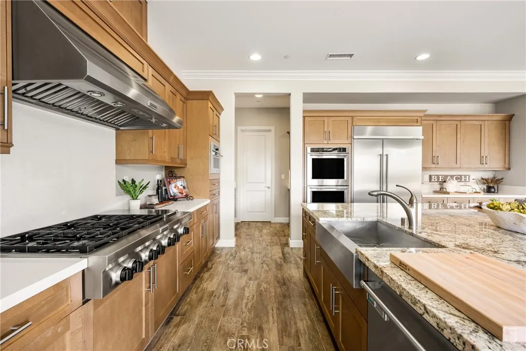 Wow! Panoramic city light views, rolling hills, and breathtaking sunsets come together with a rare oversized lot and elevated indoor-outdoor living that define this stunning Toll Brothers masterpiece in Baker Ranch’s sought-after Summit tract. Tucked on a quiet cul-de-sac with exceptional curb appeal, this 2016-built Del Rey plan sits on a premium wider 7,172 SqFt lot featuring an extra-deep driveway, inviting courtyard entry & expansive wrap-around yard offering privacy & impressive scale. A dramatic two-story foyer and sweeping curved staircase set the tone, while disappearing walls of glass open the home completely to the outdoors, filling every space with natural light. Italian ceramic tile flows throughout the main level and extends to the backyard for a seamless indoor-outdoor feel, while automated shade screens in the great room and California room enhance year-round comfort and livability. At the heart of the home, the chef’s kitchen showcases an oversized island, built-in refrigerator, double ovens, and a 6-burner KitchenAid range with griddle, complemented by a convenient prep kitchen with sink, second dishwasher, and abundant storage adding exceptional function for everyday living & effortless entertaining. A fully customized workshop, originally a tandem third-car garage space, features built-in cabinetry, a utility sink, and generous workspace for hobbies or projects. The desirable main-level bedroom suite offers serene courtyard views & flexibility for guests, while a separate powder room is ideal for visitors. Upstairs, a spacious loft anchors the secondary bedrooms each with a dedicated bath, including one with a private front balcony. The lavish primary suite boasts a huge spa-like bath & custom walk-in closet, while stacked glass doors open to the showpiece: an expansive covered deck with frameless glass railings and unobstructed panoramic views. Enjoy romantic sunsets, Disneyland fireworks, and even downtown LA vistas on clear days. The resort-style backyard is designed for entertaining, with an alluring California room, Lynx BBQ, fire pit, putting green, low-maintenance artificial turf, and sweeping sunset views backing to Promenade Park. Residents enjoy premier Baker Ranch amenities including pools, spas, parks, tennis courts, playgrounds, dog parks & miles of scenic trails. Just minutes to Irvine Spectrum, John Wayne Airport & OC beaches for endless shopping, dining & fun. Don’t miss this exceptional home…schedule your showing today!