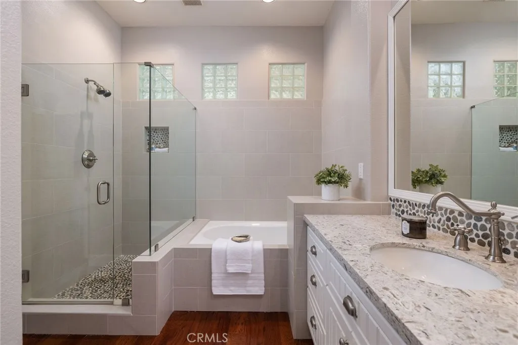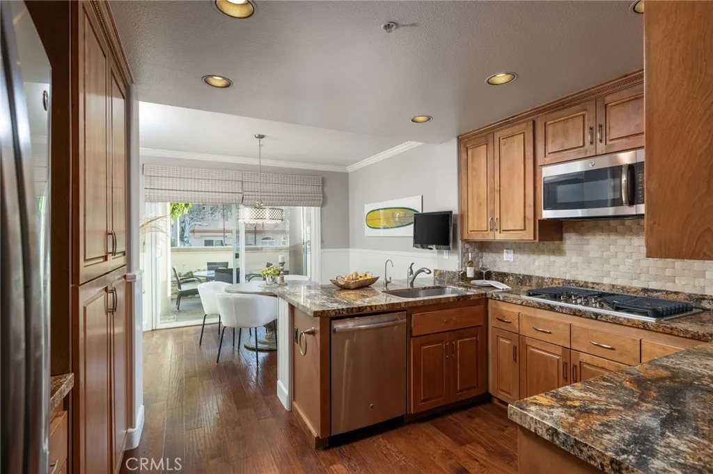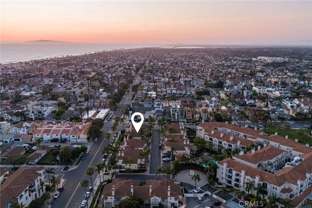 Downtown Huntington Beach at your doorstep! Tucked behind the gates of Pierside Estates, this 3-bed, 2.5-bath townhome pairs a peaceful setting with true walkability to the sand, the pier, and the restaurants and cafes lining Main Street and PCH. Pull into your attached 2-car garage and you’re home. Inside, the vibe is relaxed and coastal, with an easy flow between sun-filled interiors and private outdoor spaces that make beachside living feel effortless. The formal foyer opens to a two-story living room with a modern gas fireplace and hardwood floors that run through both levels. The kitchen and dining area flow together with granite countertops, a breakfast bar, stainless appliances, and plenty of storage. Sliding doors off the living and dining rooms lead out to a sunny, secluded patio with its own outdoor fireplace, an easy spot to relax after a day at the beach or a long dinner with friends. The main floor also has a private home office, a powder bath, and a laundry room that opens right into the garage. Upstairs, the primary suite is a proper retreat, with a private balcony, vaulted ceilings, a walk-in closet, and a primary bath with frameless glass shower, soaking tub, and double sink vanity. Down the hall, you’ll find built-in storage and a full bath serving two more bedrooms, both with ceiling fans and great natural light. Life at Pierside Estates comes with 24/7 gated access, a sauna, pool and spa, plus an easy stroll to Triangle Park, the HB Pier, the 4th of July Parade, the airshow, and everything else that makes Surf City iconic. With the ocean breeze close by and the energy of Main Street just down the block, this is beach living at its best.