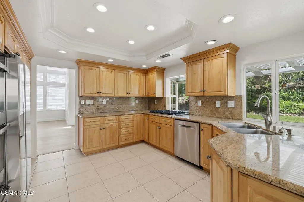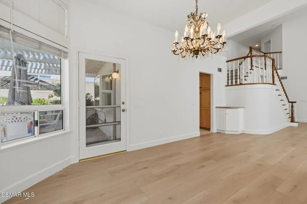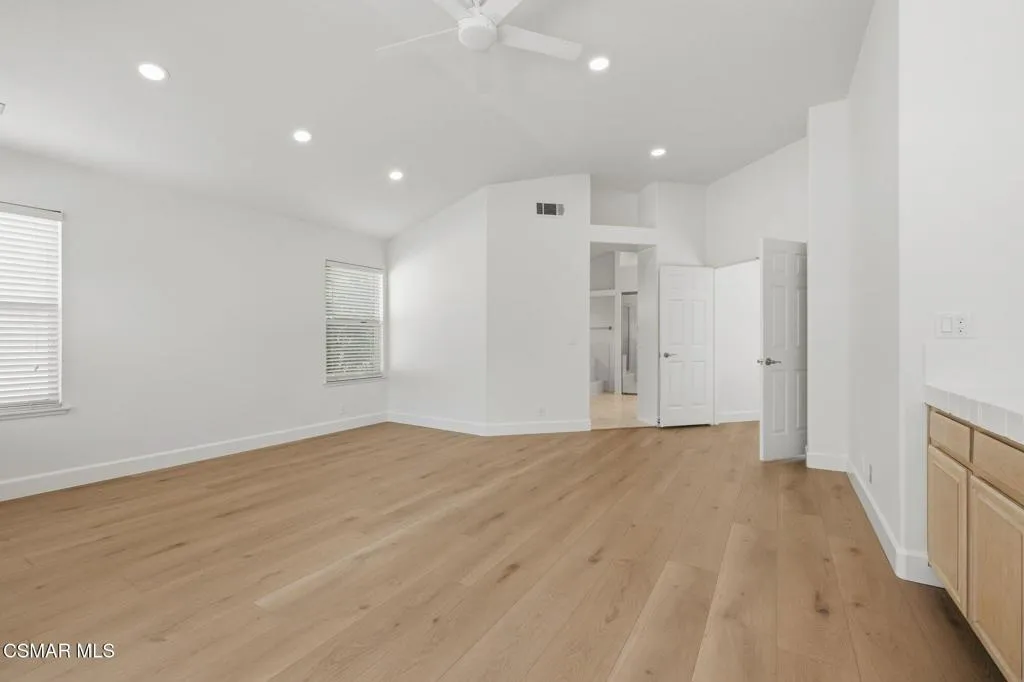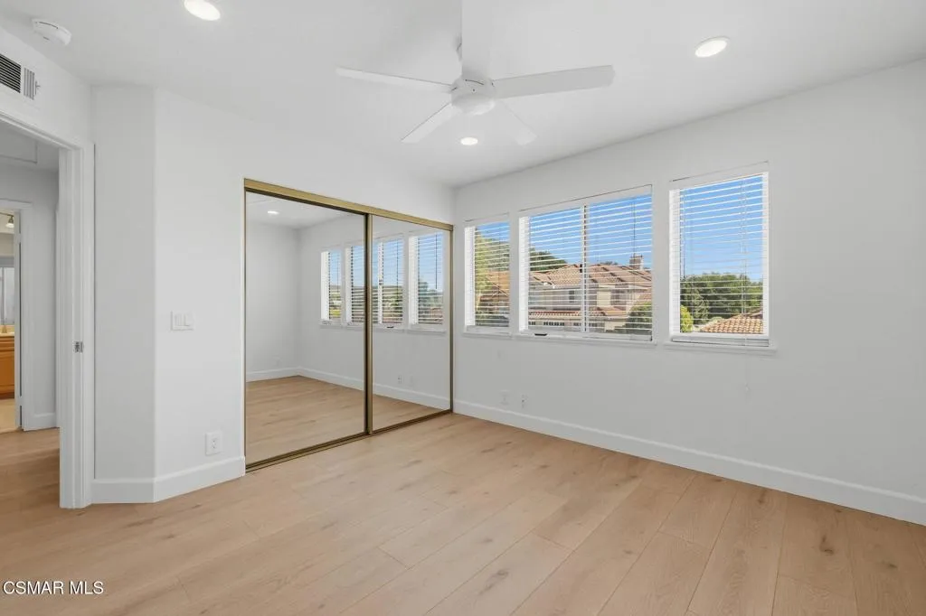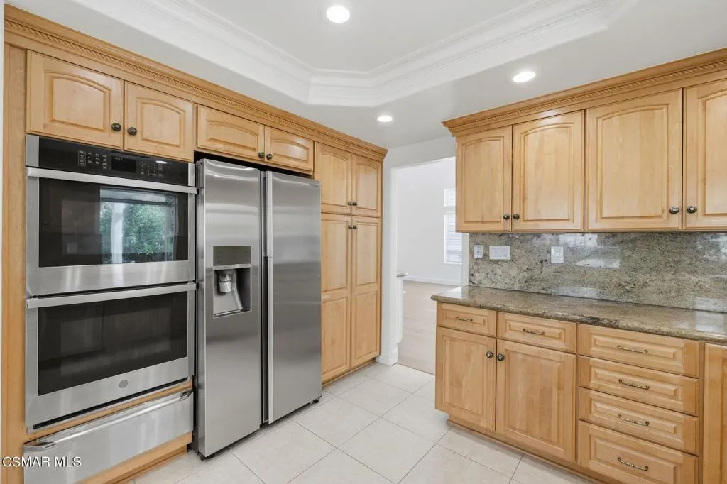 Located in the highly sought-after High Meadows community of Wood Ranch, this exceptional and rarely offered lease opportunity is available for immediate occupancy. Ideally positioned on a quiet cul-de-sac street, this expansive residence offers generous living spaces, beautiful natural light, and tasteful modern updates throughout.The entry welcomes you with soaring ceilings, a sweeping staircase, and an impressive sense of openness. Freshly painted interiors in a designer palette are complemented by newly installed LED recessed lighting, ceiling fans, and faux wood blinds throughout. New luxury European oak-style vinyl plank flooring extends through the main living areas, as well as the upstairs hall and bedrooms, creating a natural warmth and elevating the space.The well-designed floor plan offers both functionality and flexibility, featuring a desirable downstairs bedroom and full bathroom, ideal for guests, extended living, or a private office. Light-filled living areas seamlessly connect and include a fireplace located in the family room just off the kitchen, adding warmth and comfort while creating an inviting environment for everyday living and entertaining. The kitchen features granite countertops and a suite of stainless steel appliances, including a Viking 6-burner cooktop, dual ovens, and a Bosch dishwasher, offering both functionality and elevated design. A separate large laundry room adds everyday convenience.Upstairs, the expansive primary suite serves as a true retreat, complete with vaulted ceilings, recessed lighting, a newly installed ceiling fan, wet bar, and a centrally positioned see-through fireplace that connects the primary bedroom and the adjoining bonus room. The suite includes an oversized den that flows into a separate adjoining space, with the bonus room offering ideal flexibility for a private office, gym, media room, or additional lounge area. The primary bathroom features a generously sized soaking tub, step-in shower, dual sinks with maple cabinetry, a large walk-in closet, and a private water closet.Three additional upstairs bedrooms are spacious and well-appointed, each featuring updated flooring, new paint, recessed lighting, and ceiling fans. The secondary full bathroom is thoughtfully designed, offering a private tub and shower area along with a separate vanity and sink space for added functionality.Step outside to an expansive landscaped backyard offering a private outdoor retreat, complete with mature fruit trees, generous lawn space, and an attached covered wood pergola over a concrete patio, ideal for entertaining, gardening, or simply enjoying the California sunshine. The property also enjoys beautiful mountain views, enhancing the peaceful setting.Additional highlights include a three-car garage with automatic door openers, ample storage and parking, along with HOA and gardener services included, providing added convenience and value.Set within the scenic Wood Ranch community, residents enjoy access to nearby greenbelts, hiking trails, parks, and close proximity to Wood Ranch Golf Club, along with shopping and dining. Convenient access to the 23 and 118 freeways enhances everyday living. Located near highly desirable Wood Ranch Elementary, Sinaloa Middle School, and Royal High School.Offering space, style, and an exceptional setting, this is a rare opportunity to lease a beautifully updated home in one of the area's most desirable communities.